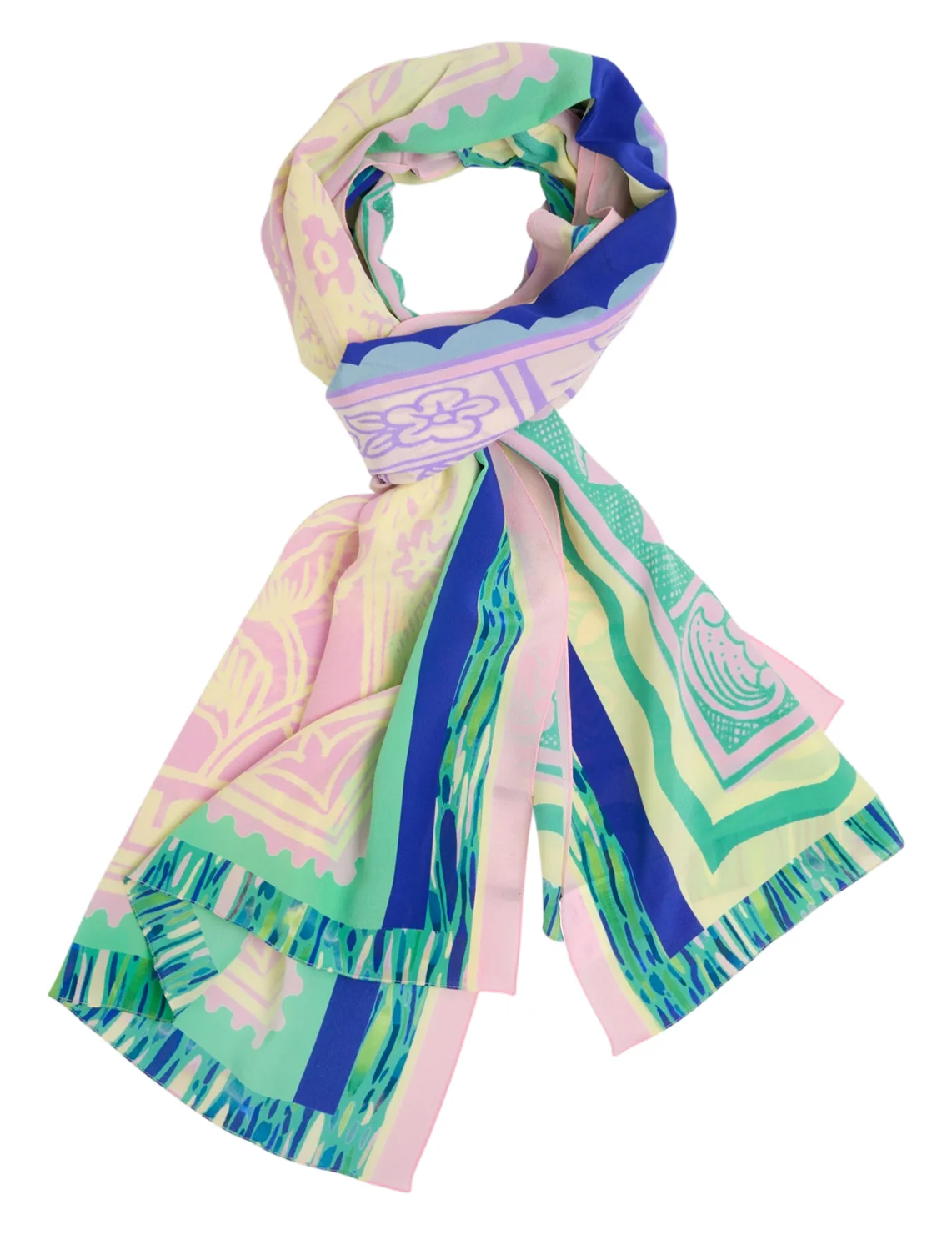 - Тонкий шелковый шарф с цветочным принтом – придает изящность и заряжает весенним настроением. Такой аксессуар можно носить как на шее, так и в волосах и даже на сумке.