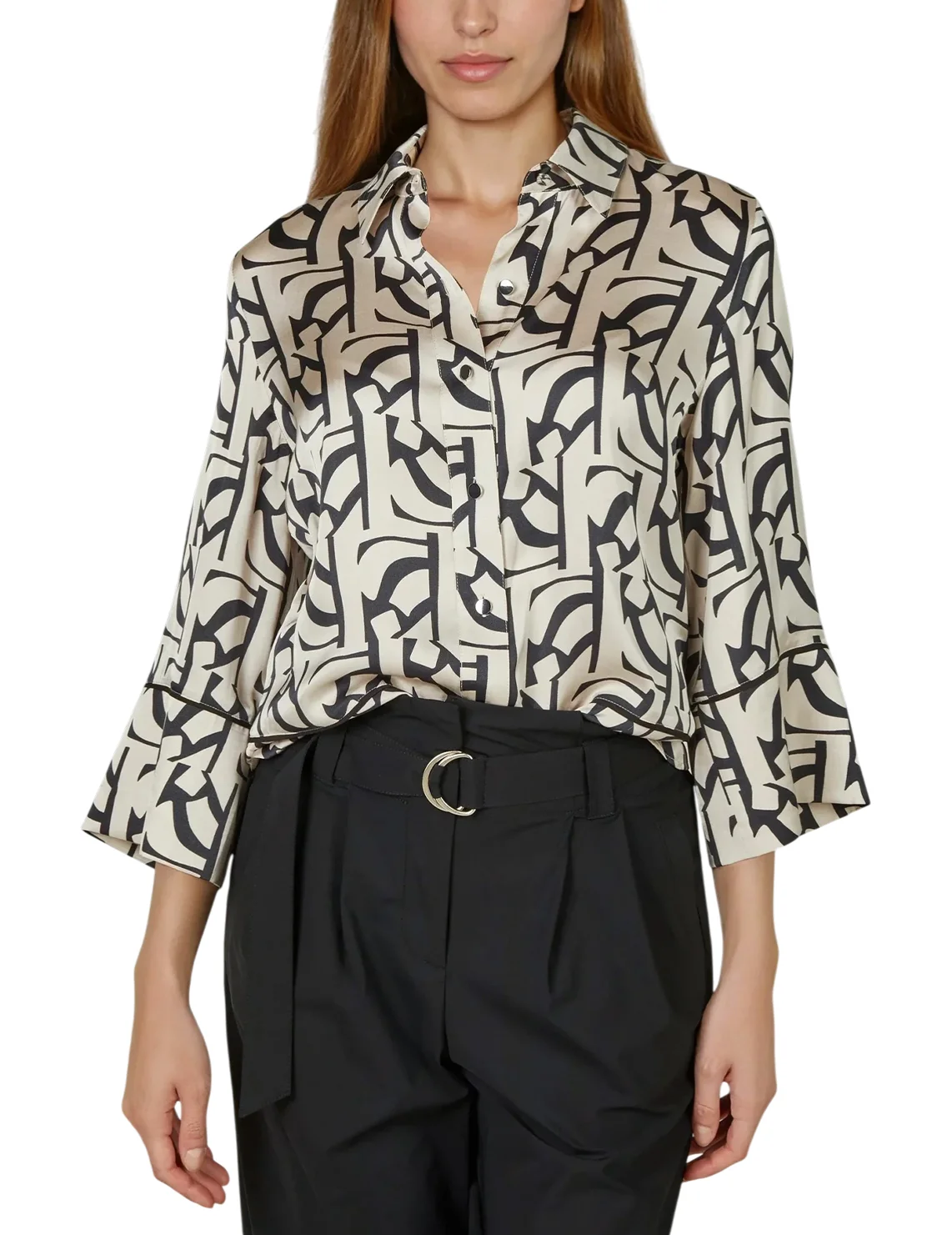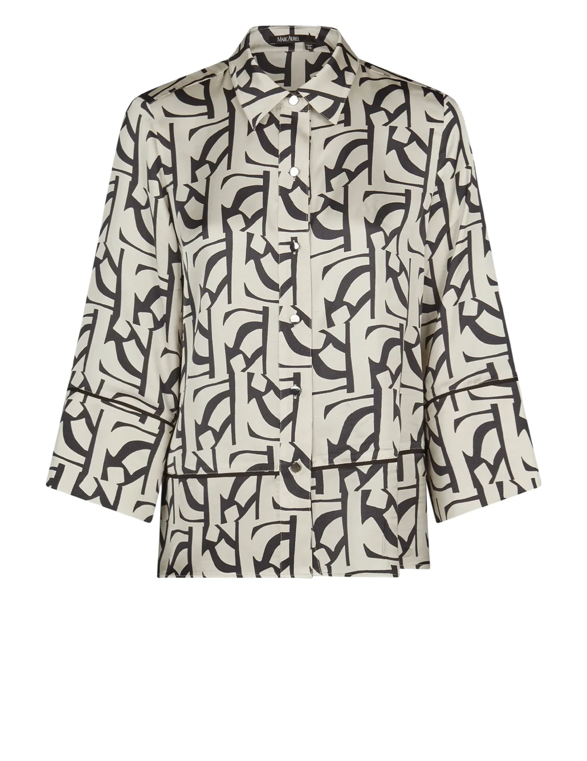 Блуза изготовлена из 100% вискозы высокого качества. Модель выполнена в свободном крое. Имеет отложной воротник, планку на пуговицах и рукава длиной 3/4. Декорирована абстрактным принтом.