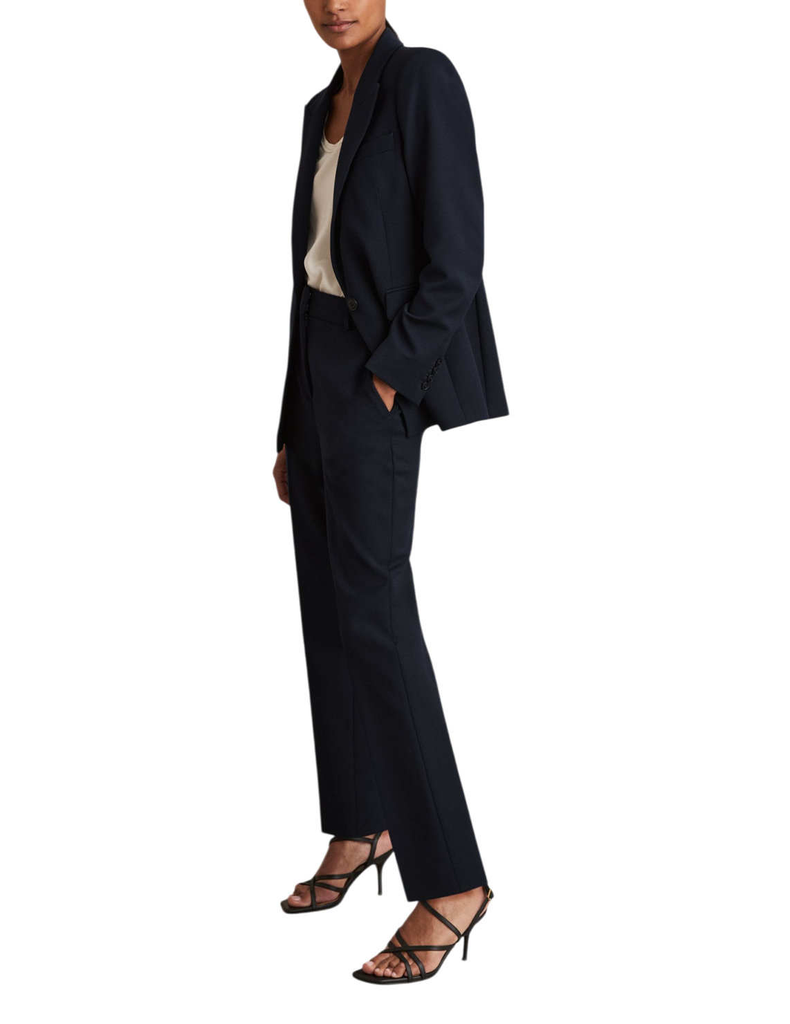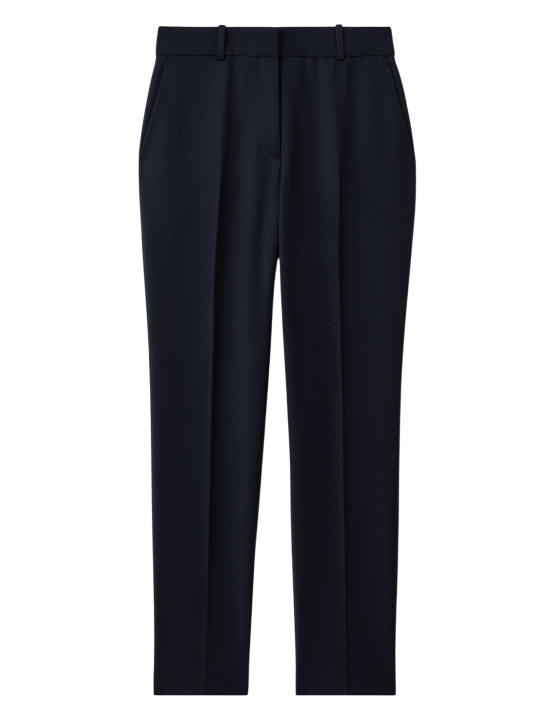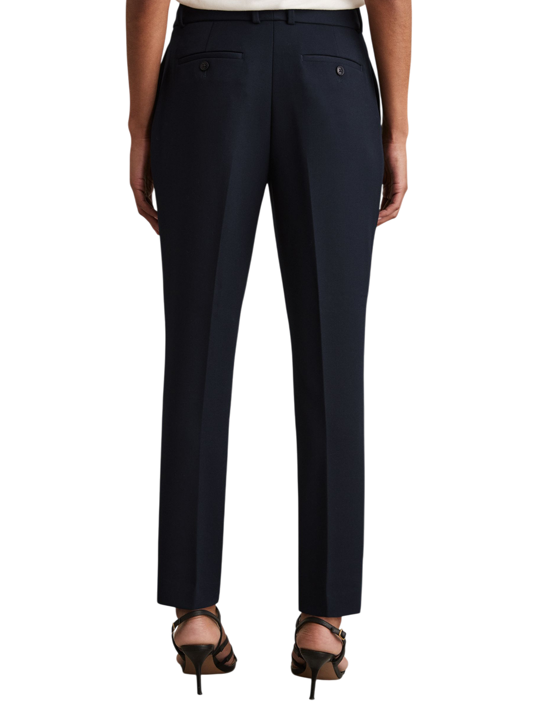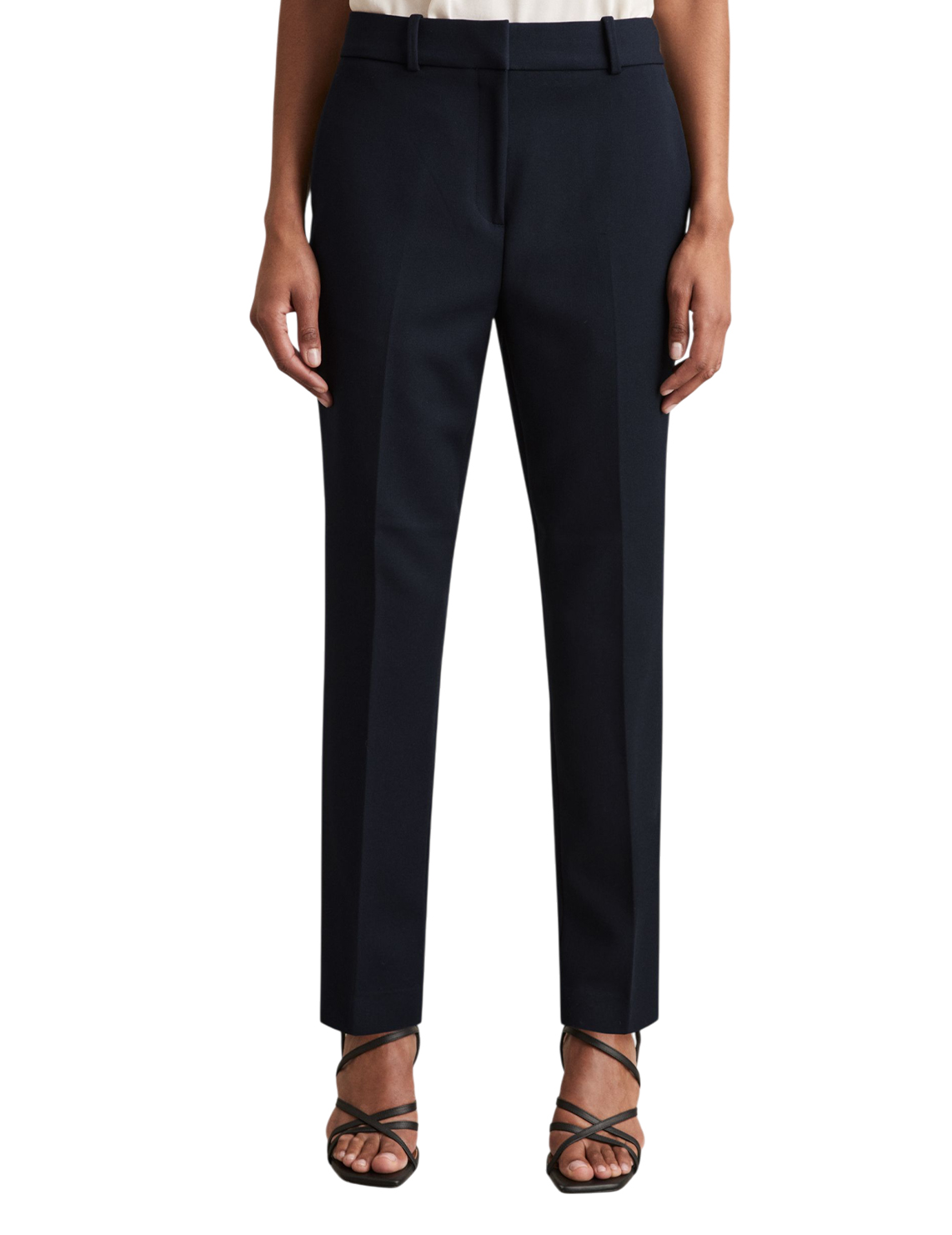 Брюки Gabi от бренда Reiss изготовлены из полиэстера, вискозы и эластана. Модель выполнена в зауженном крое. Имеет шлёвки для ремня, скрытую застежку-молнию с пуговицей, прессованные стрелки и удобные карманы.