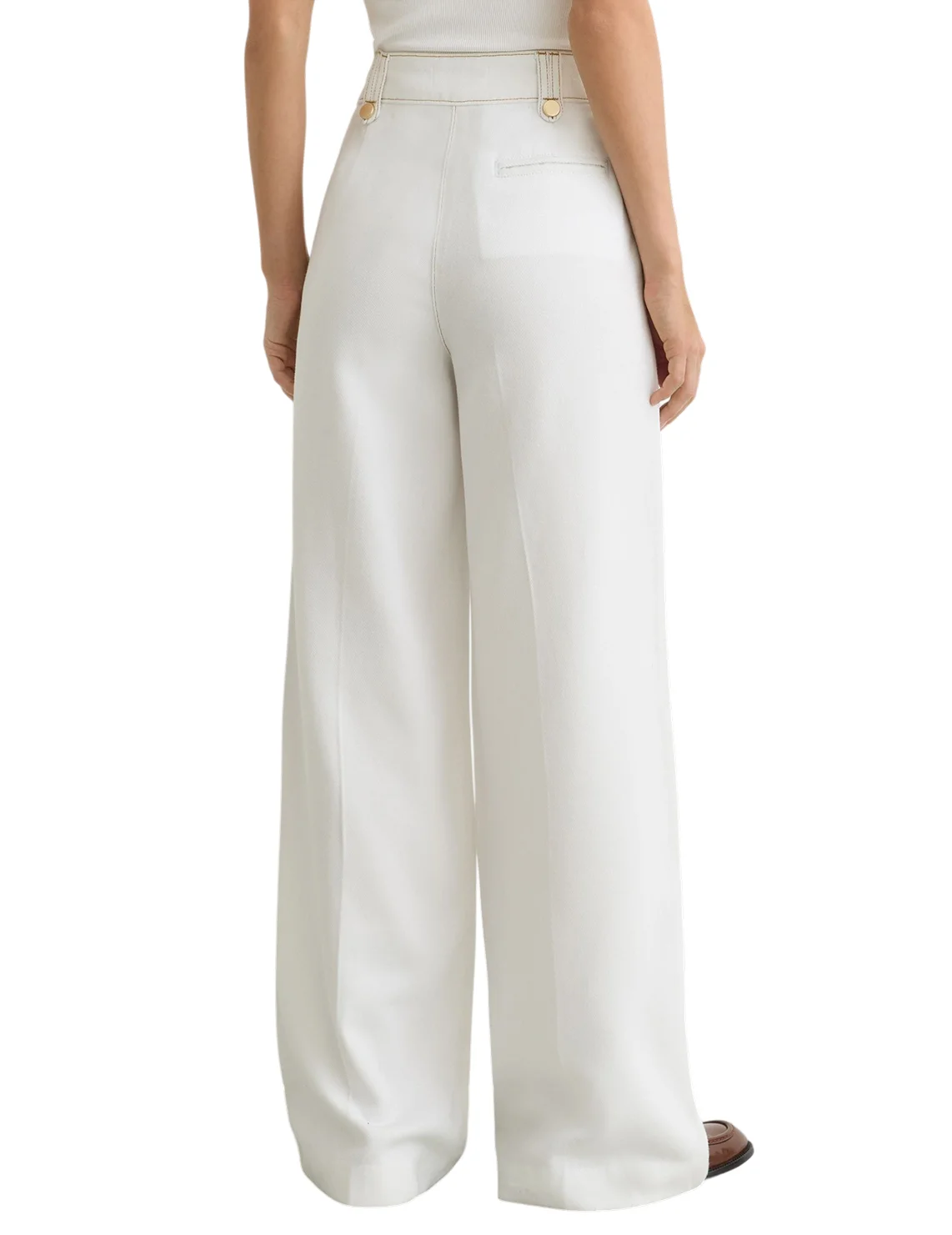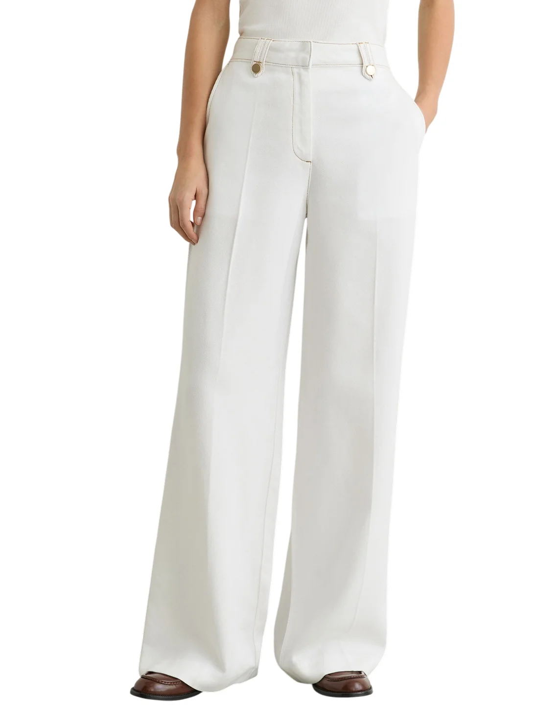 Брюки изготовлены из лиоцелла высокого качества. Модель выполнена в свободном крое. Имеет шлёвки для ремня, скрытую застежку-молнию с крючком, прессованные стрелки, два боковых и один задний прорезной карман.