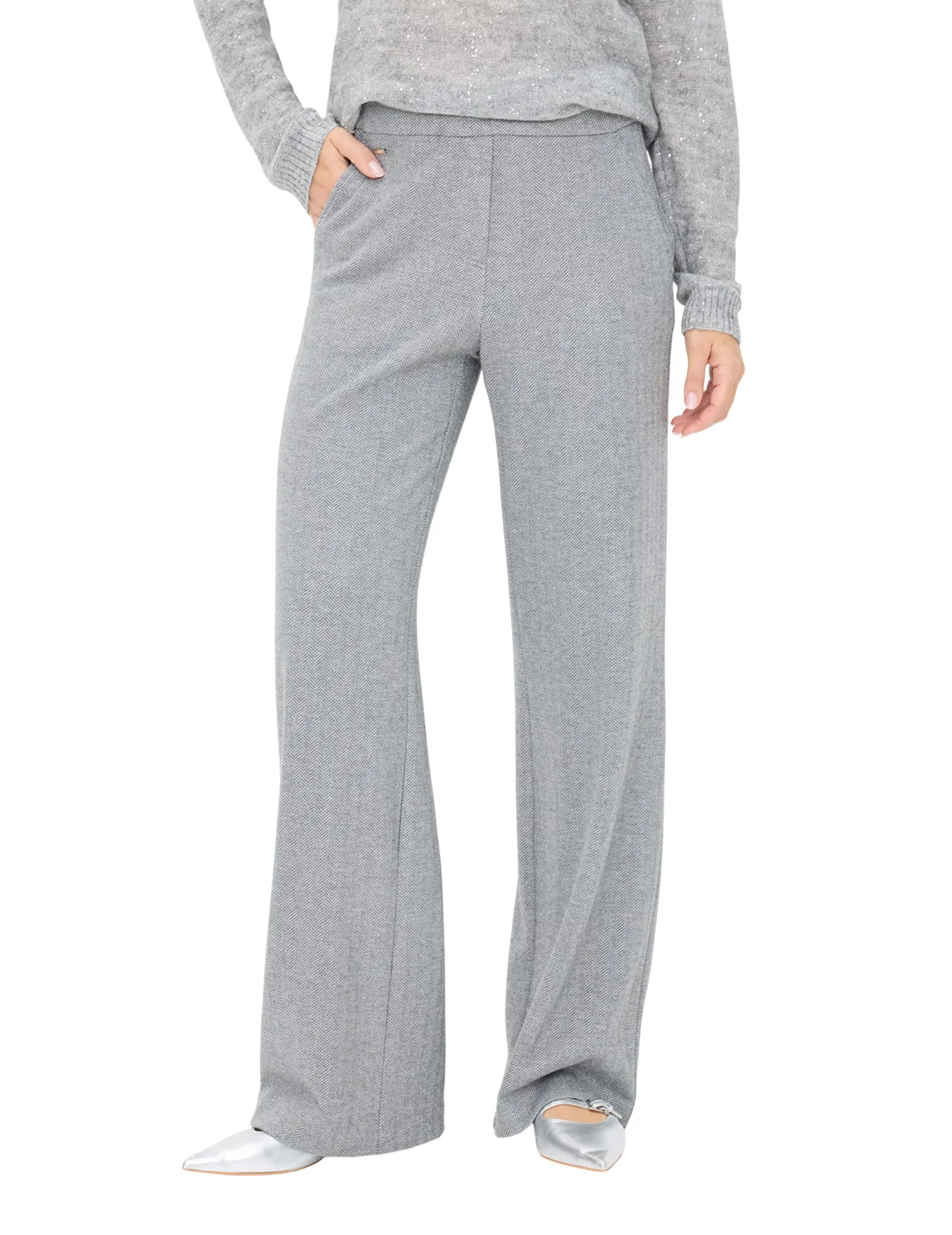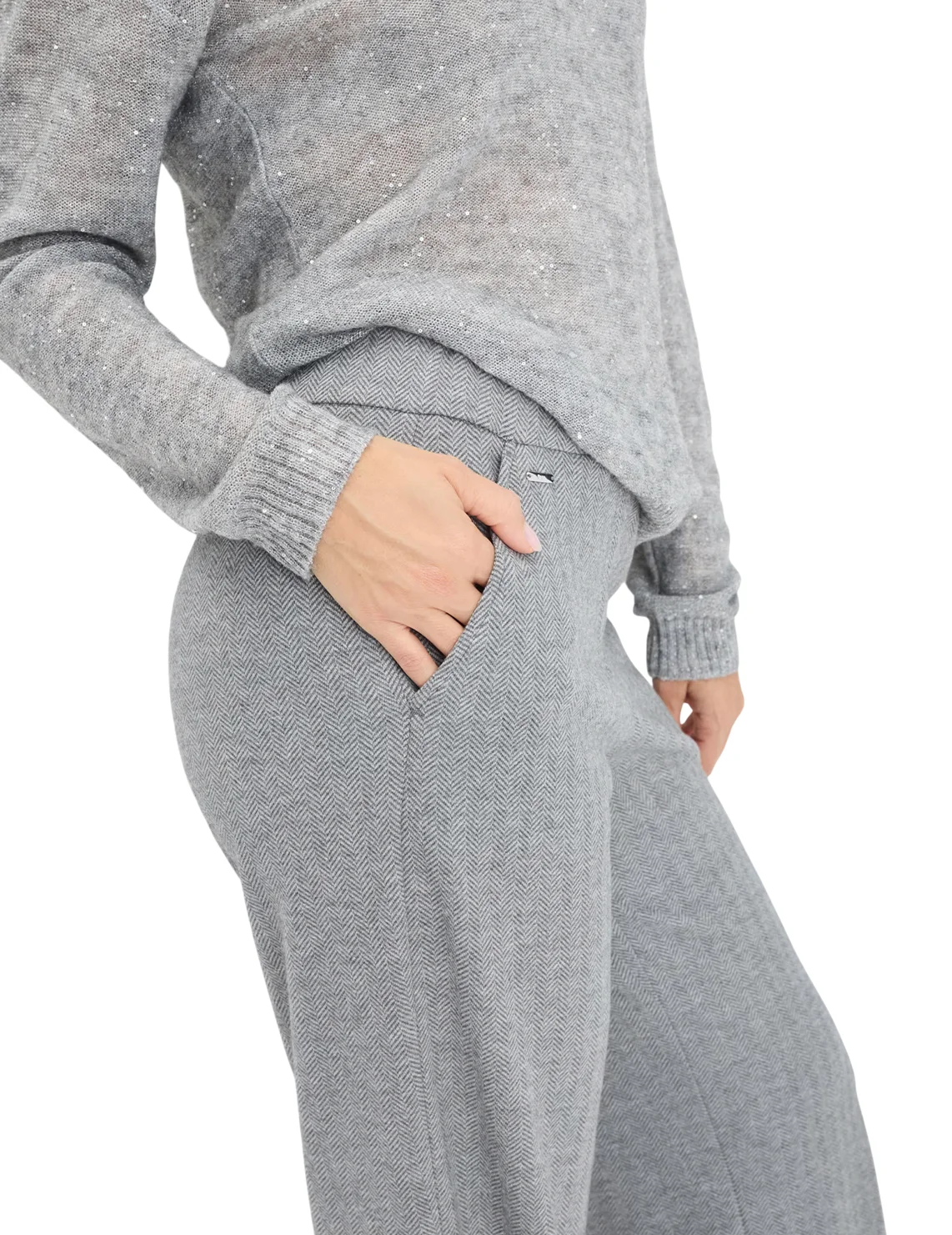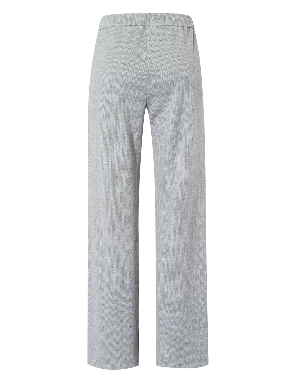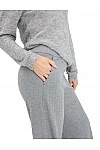 Брюки изготовлены из полиэстера, вискозы и эластана. Модель выполнена в свободном крое. Имеет эластичный пояс и прорезные карманы. Декорированы оригинальным принтом.