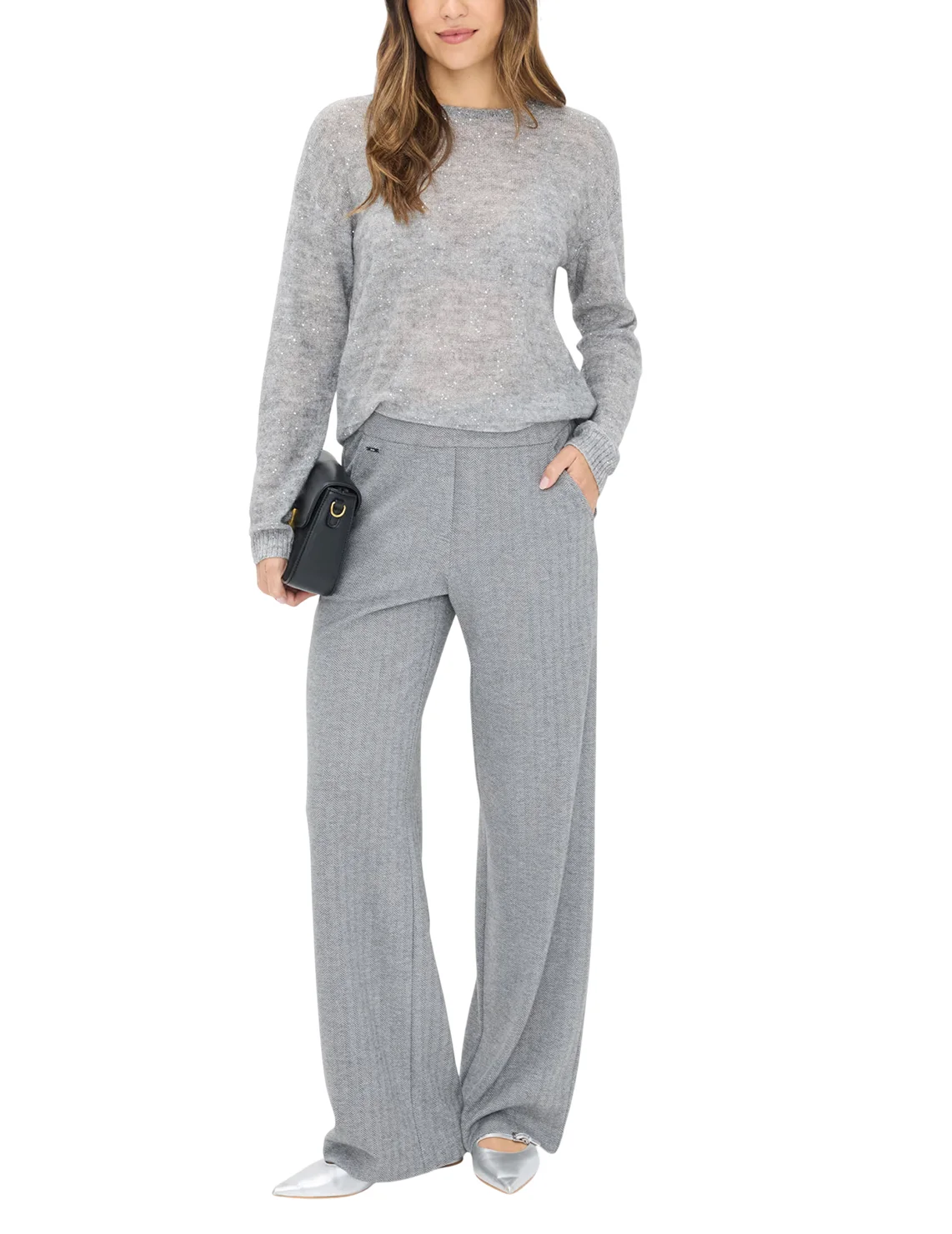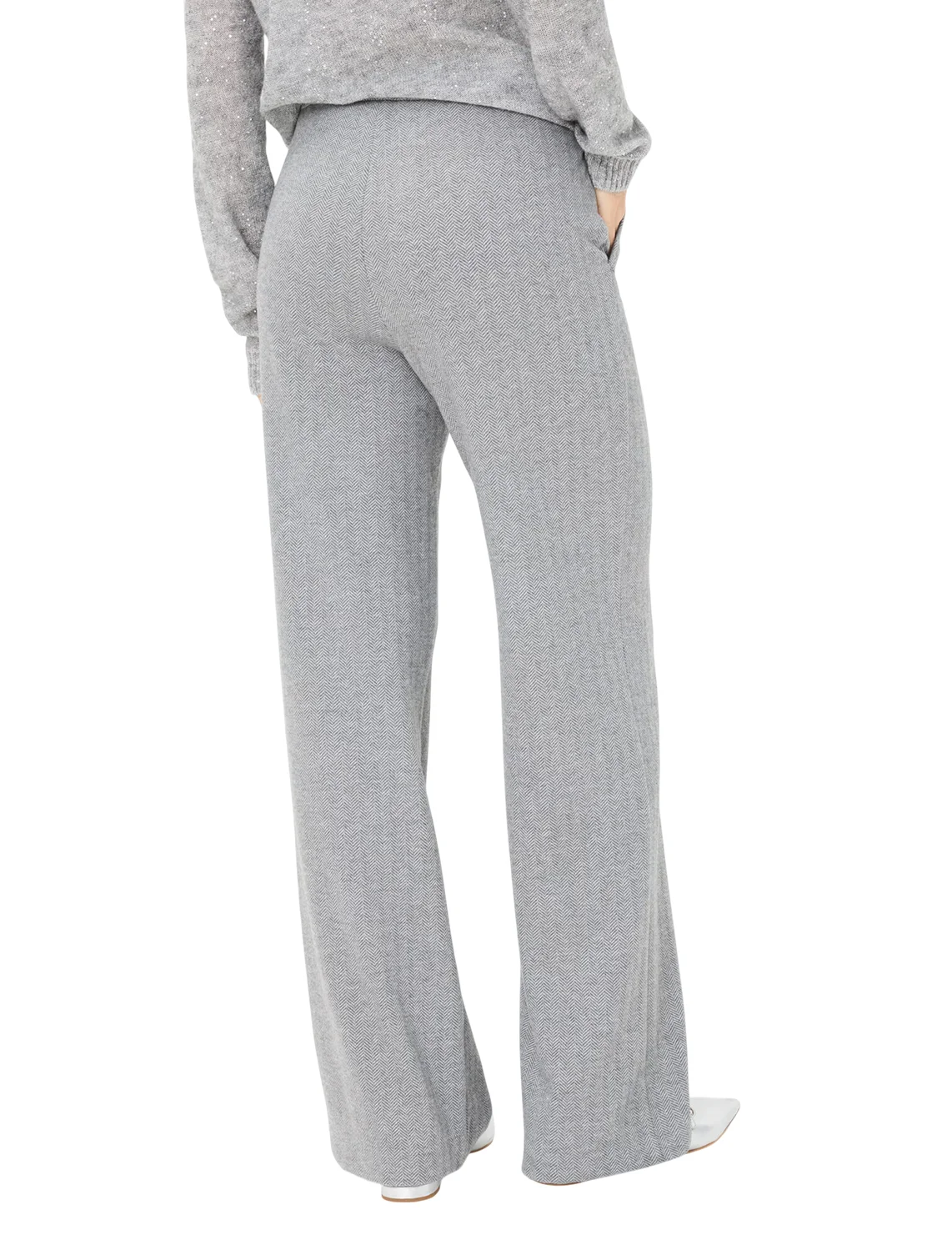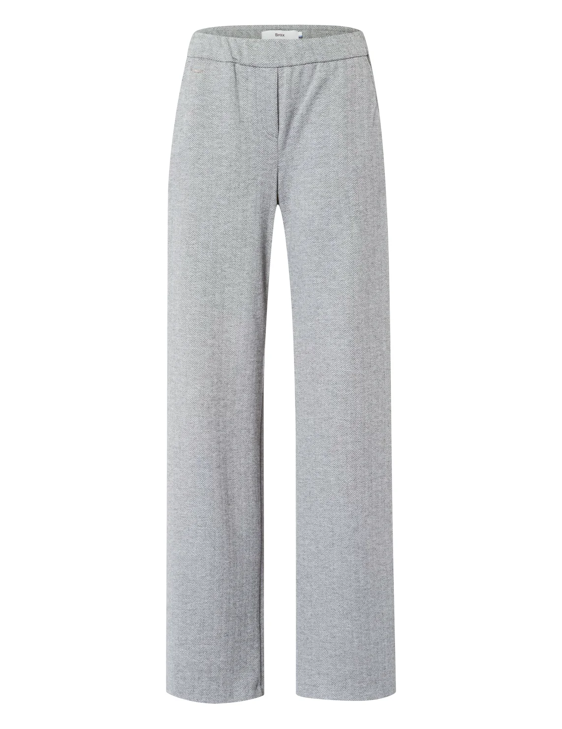 Брюки изготовлены из полиэстера, вискозы и эластана. Модель выполнена в свободном крое. Имеет эластичный пояс и прорезные карманы. Декорированы оригинальным принтом.