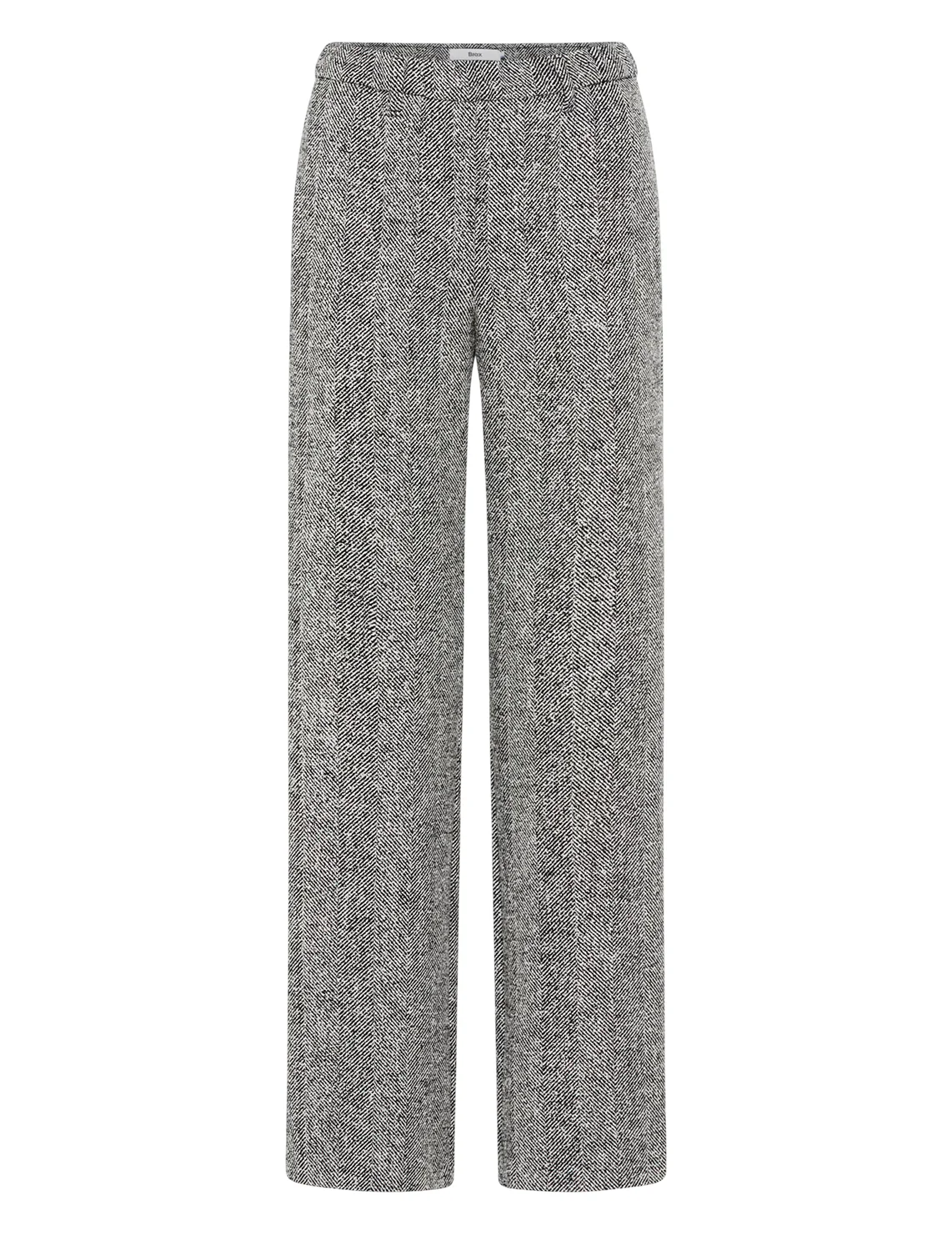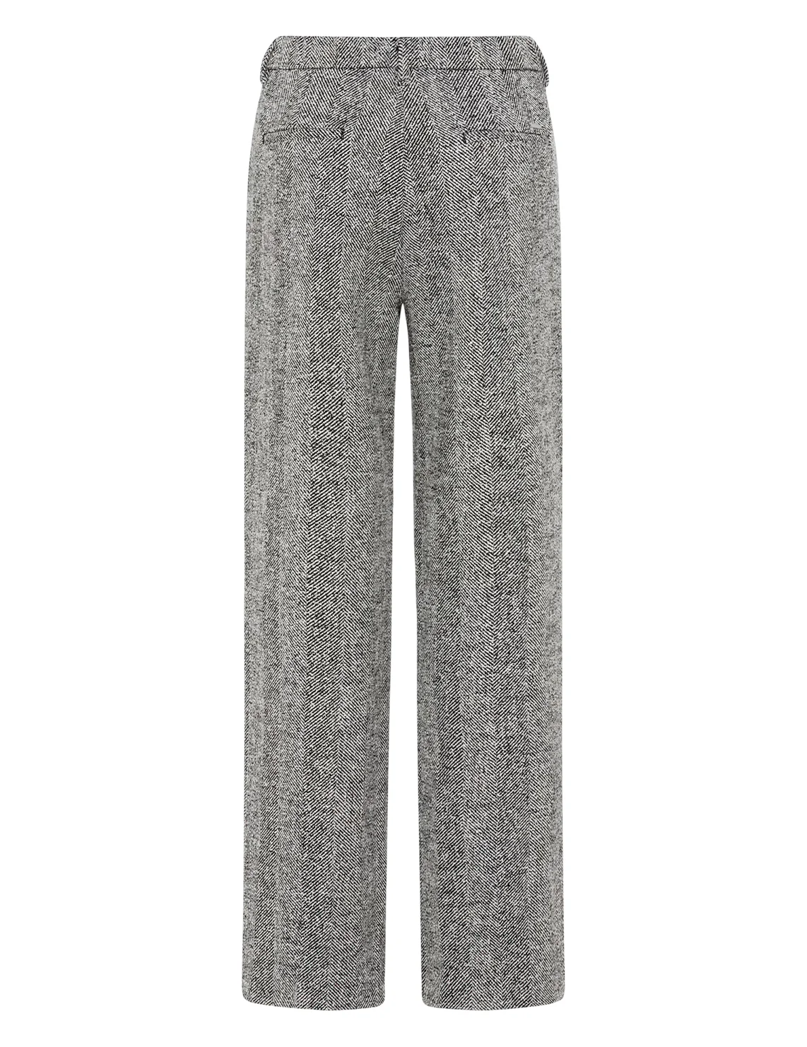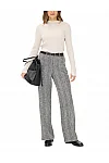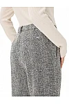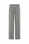 Брюки изготовлены из полиэстера, хлопка, вискозы и эластана. Модель выполнена в свободном крое. Имеет шлёвки для ремня, скрытую застежку-молнию с крючком, боковые и задние прорезные карманы. Декорированы оригинальным принтом.
