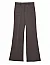 Брюки изготовлены из полиэстера и ацетата. Модель выполнена в расклешенном крое. Имеет петли для ремня, потайную застежку-молнию с крючком, прессованные стрелки, два передних и два задних накладных кармана.