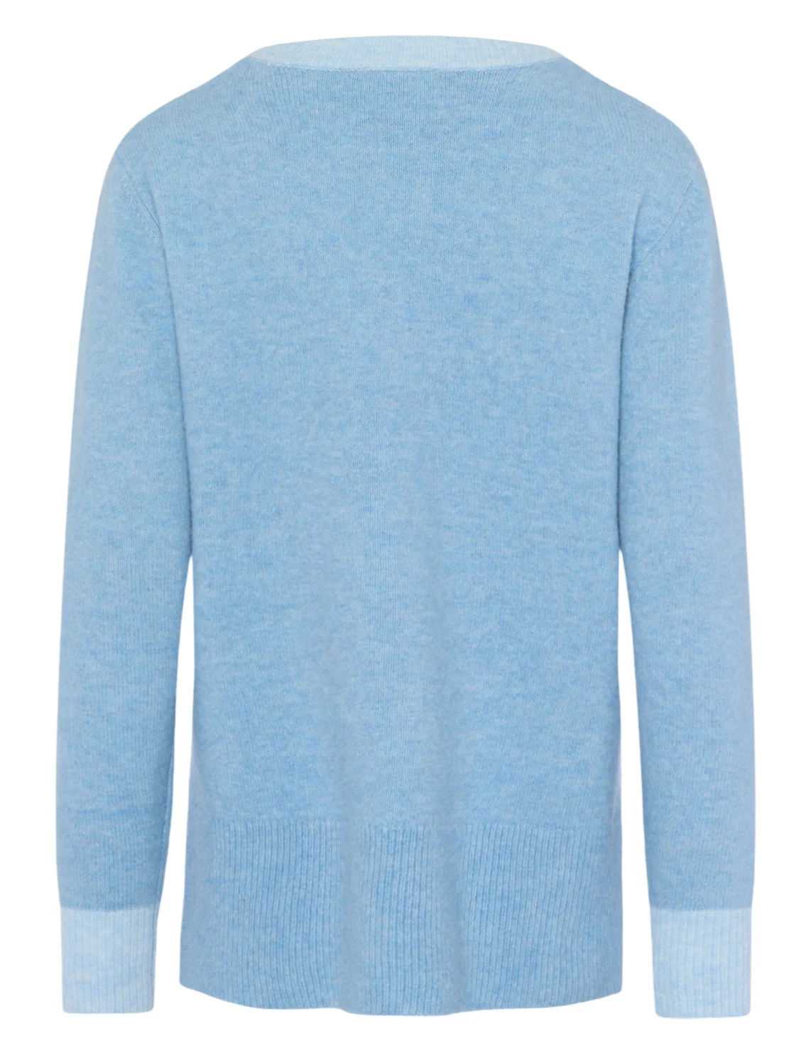 Джемпер изготовлен из полиэстера, полиамида, шерсти, альпаки и эластана. Модель выполнена в прямом крое. Имеет круглый вырез горловины и длинные рукава с манжетами. Декорирован принтом в виде буквы, вышивкой и пайетками.