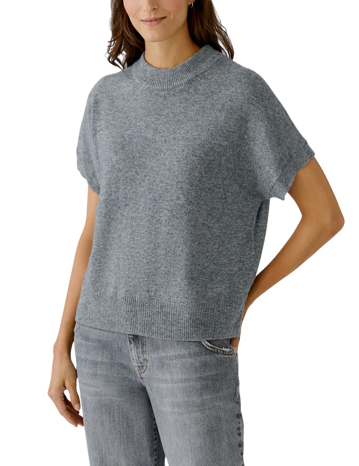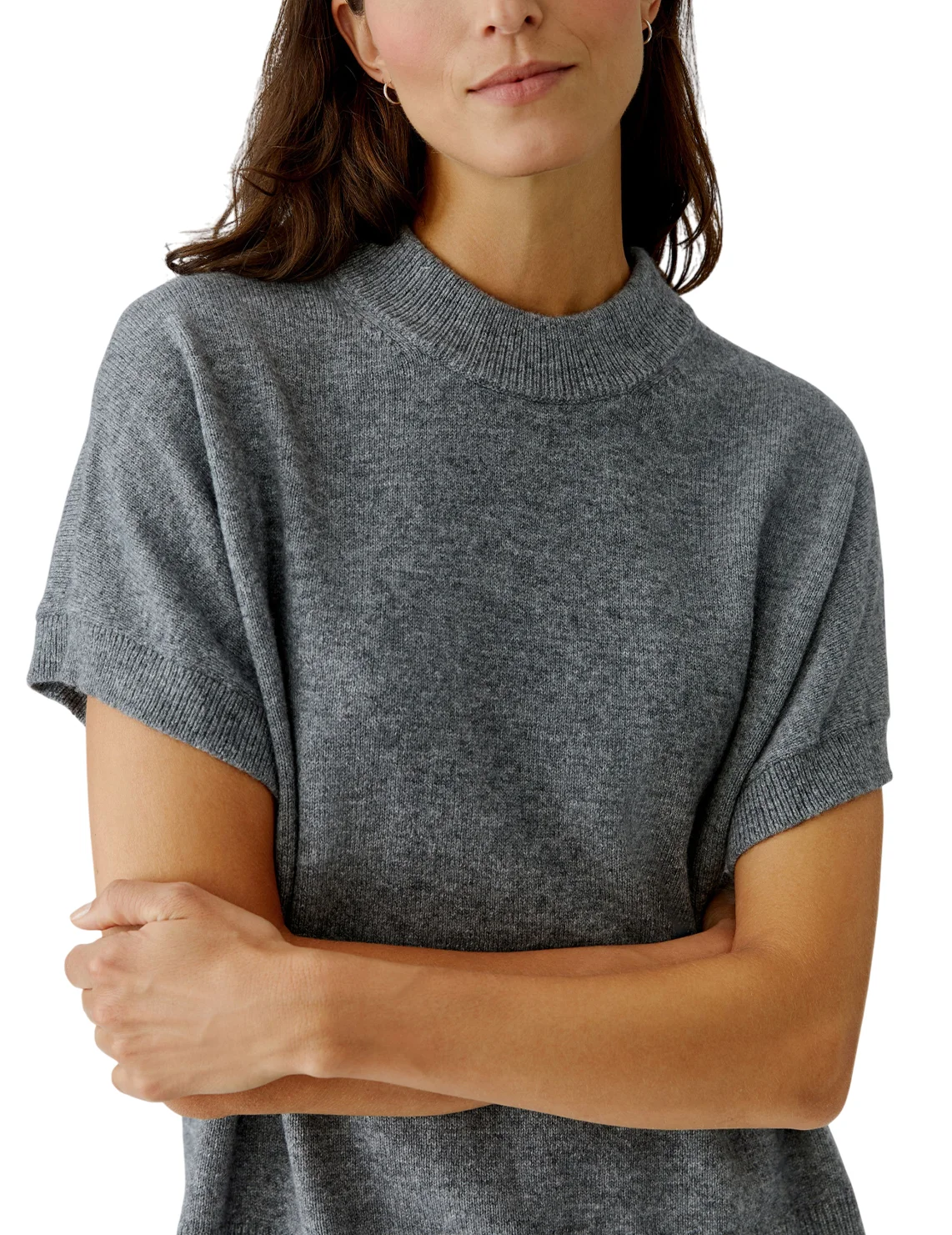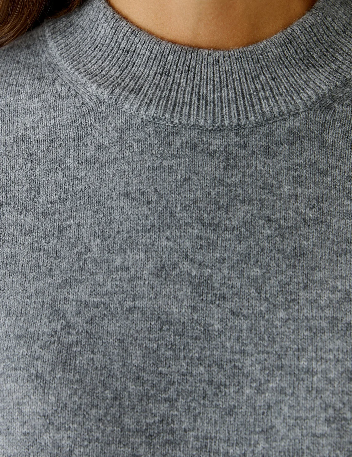 Джемпер изготовлен из шерсти, полиамида и модала. Модель выполнена в свободном крое. Имеет круглый вырез горловины и короткие рукава с манжетами.