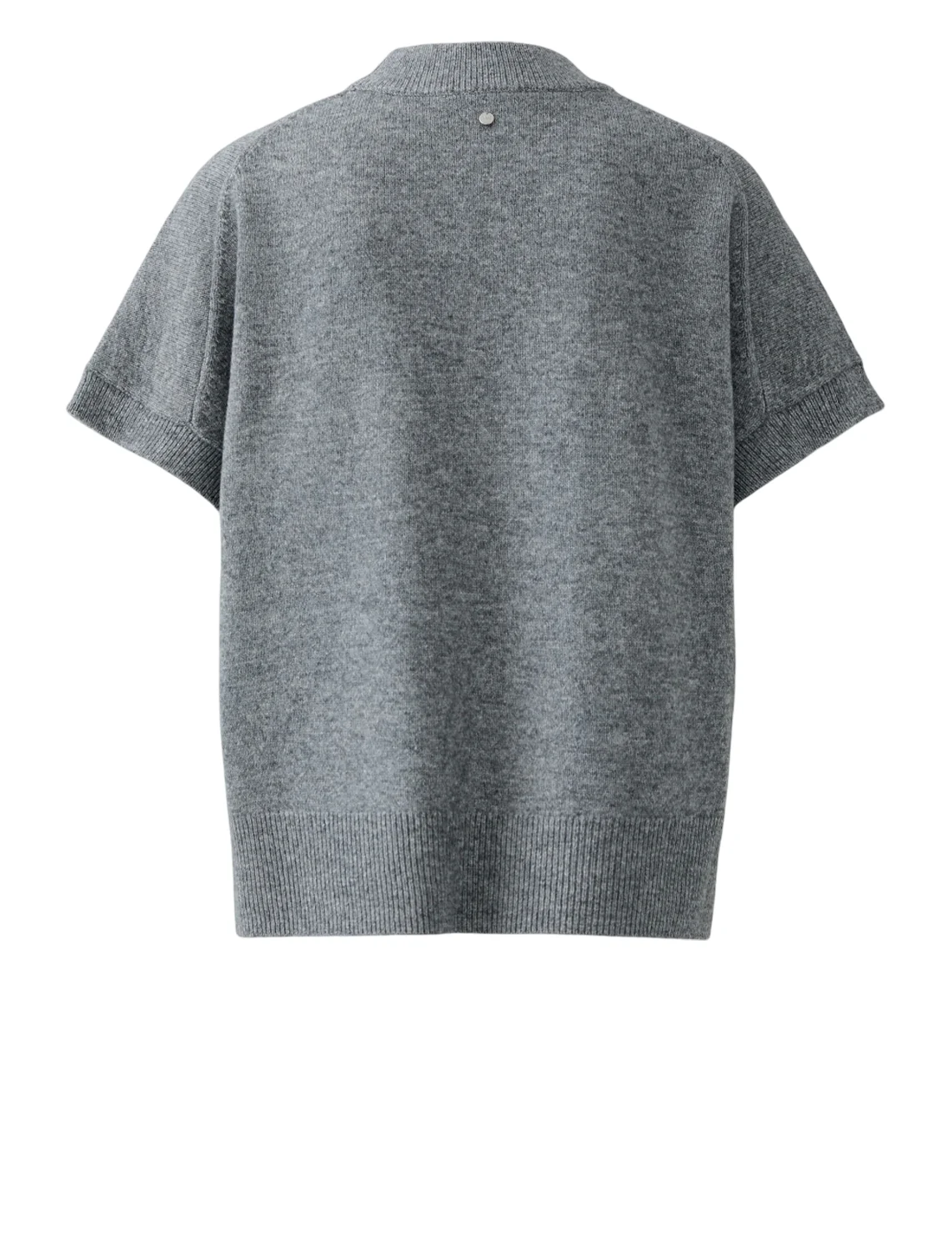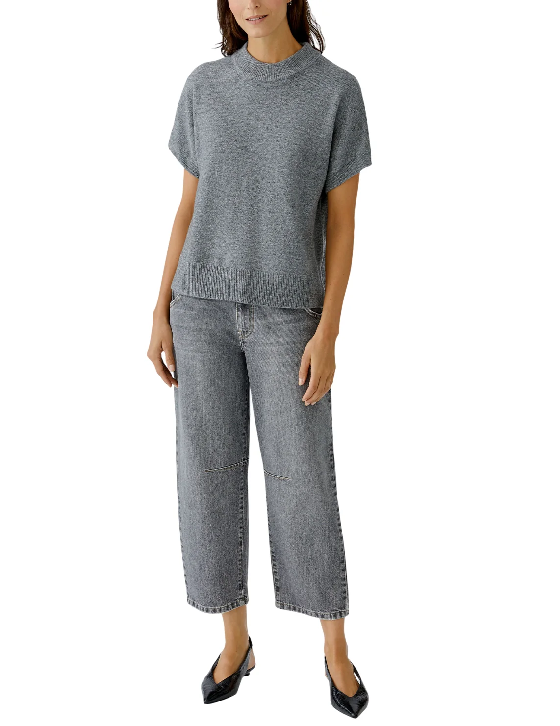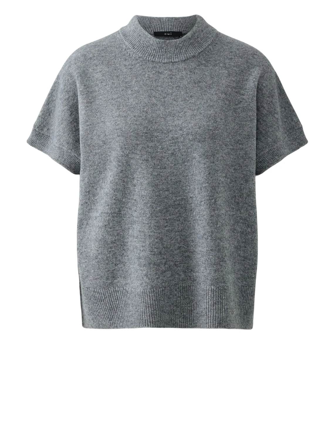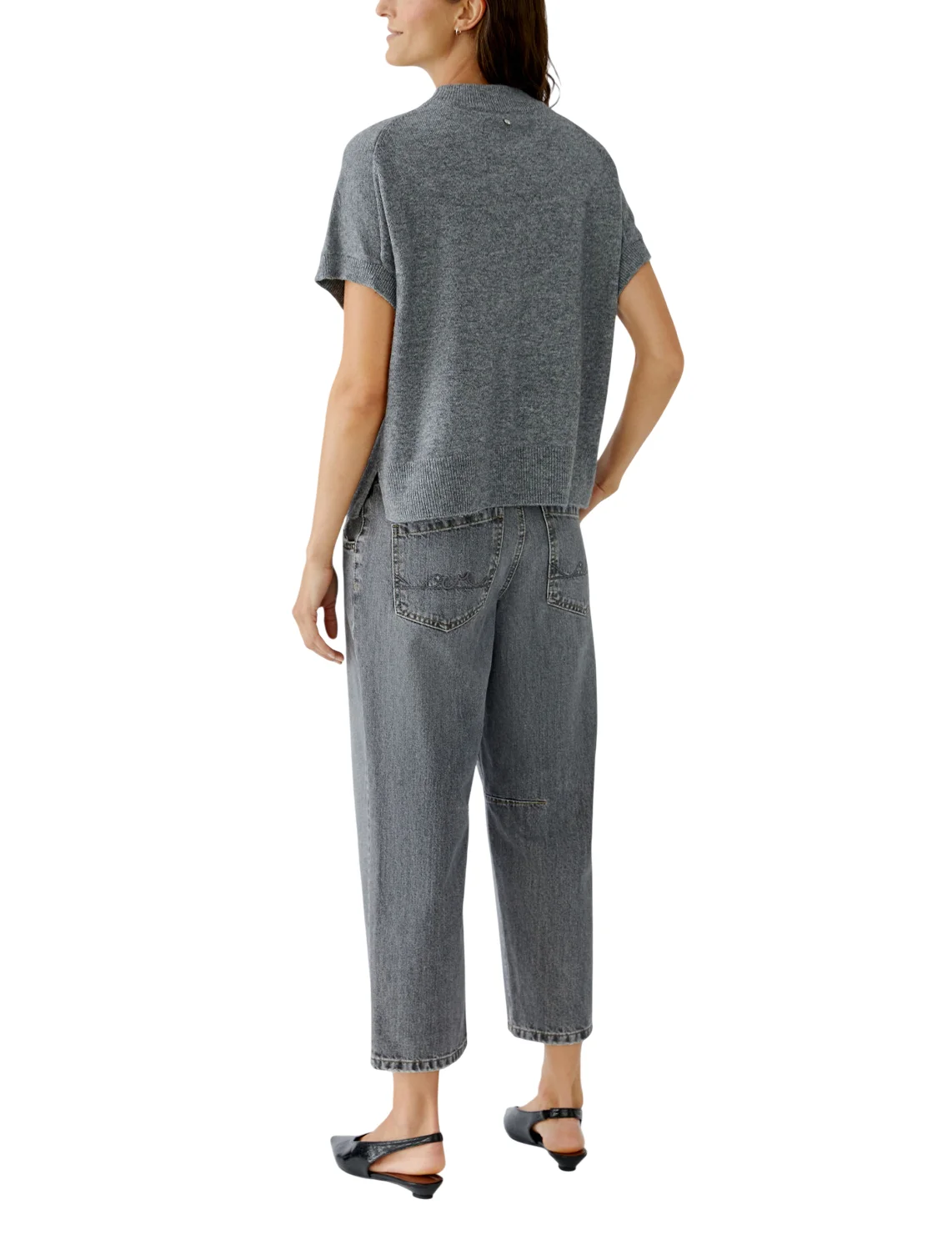 Джемпер изготовлен из шерсти, полиамида и модала. Модель выполнена в свободном крое. Имеет круглый вырез горловины и короткие рукава с манжетами.