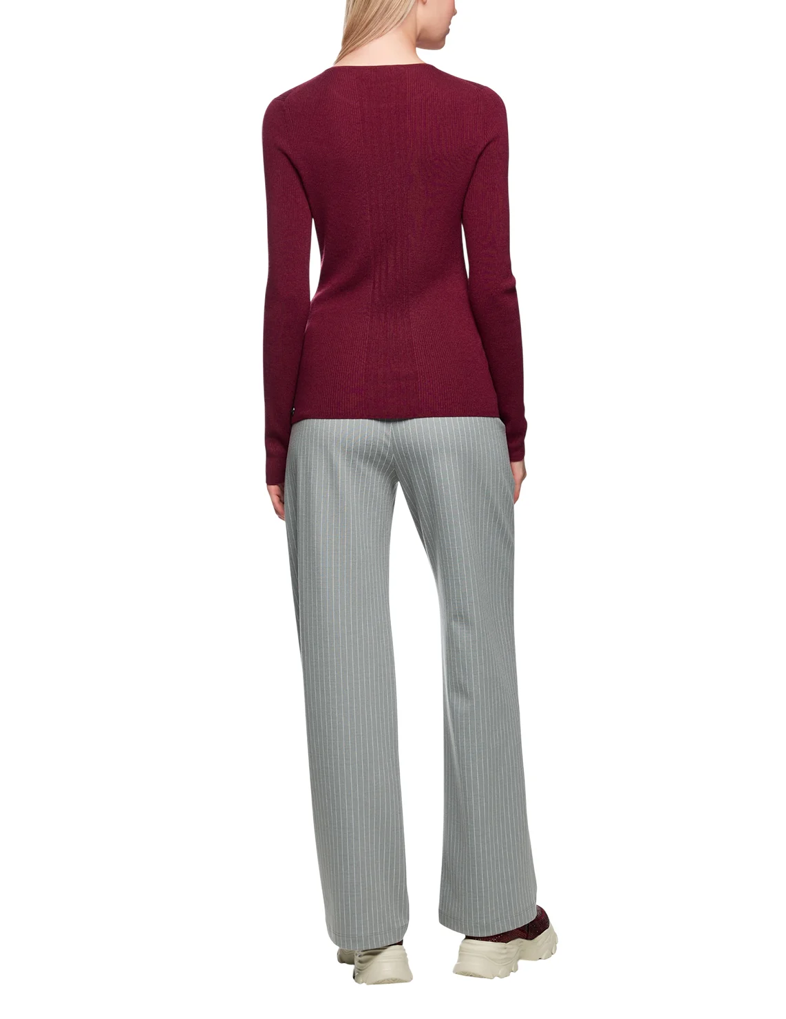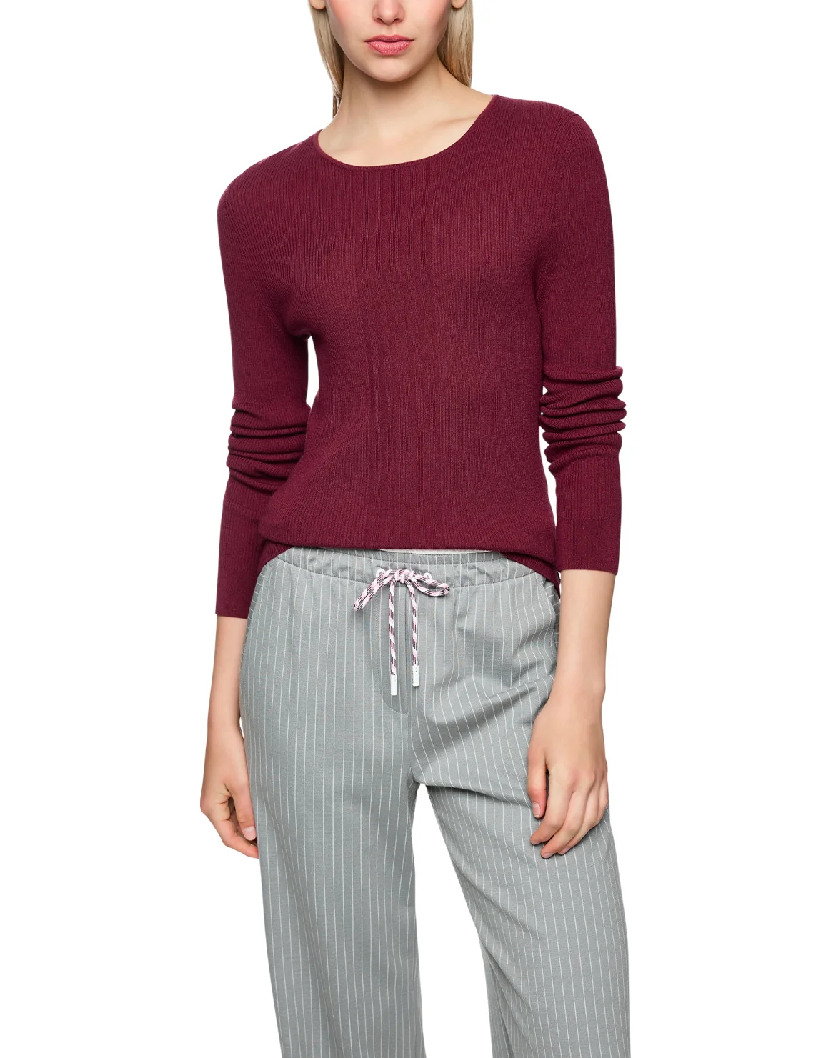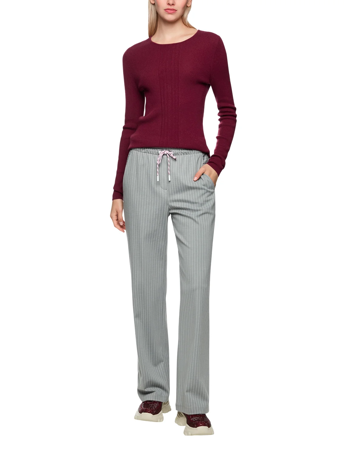 Джемпер изготовлен из шерсти, вискозы, полиамида и кашемира. Модель выполнена в приталенном крое. Имеет круглый вырез горловины и длинные рукава с манжетами.