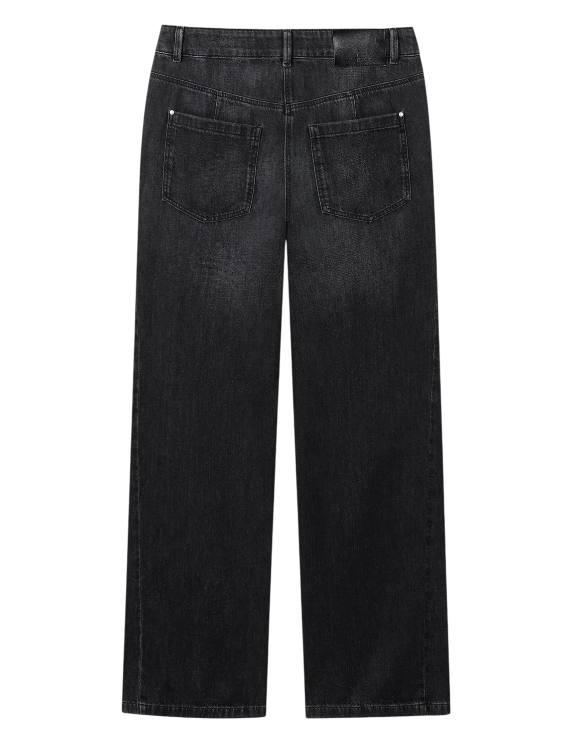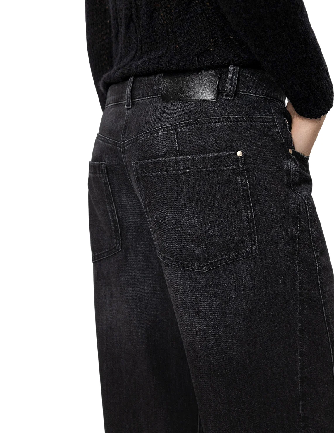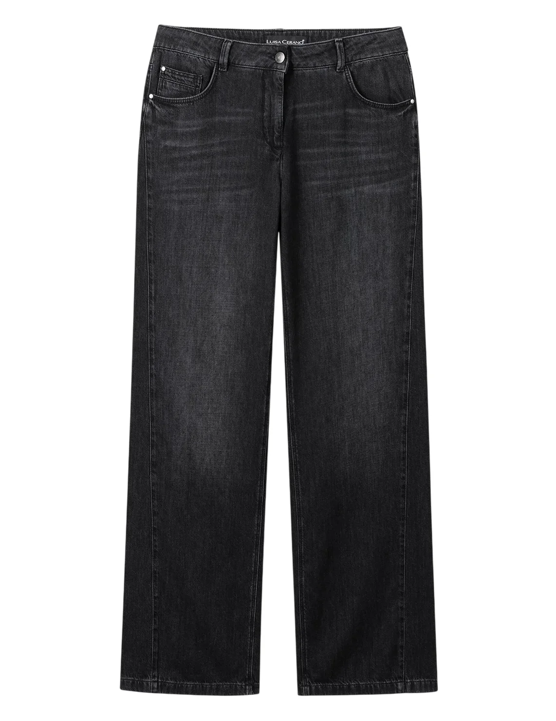 Джинсы изготовлены из натурального хлопка и лиоцелла. Модель выполнена в свободном крое. Имеет петли для ремня, скрытую застежку-молнию с пуговицей, а также пару передних прорезных и пару задних накладных карманов.