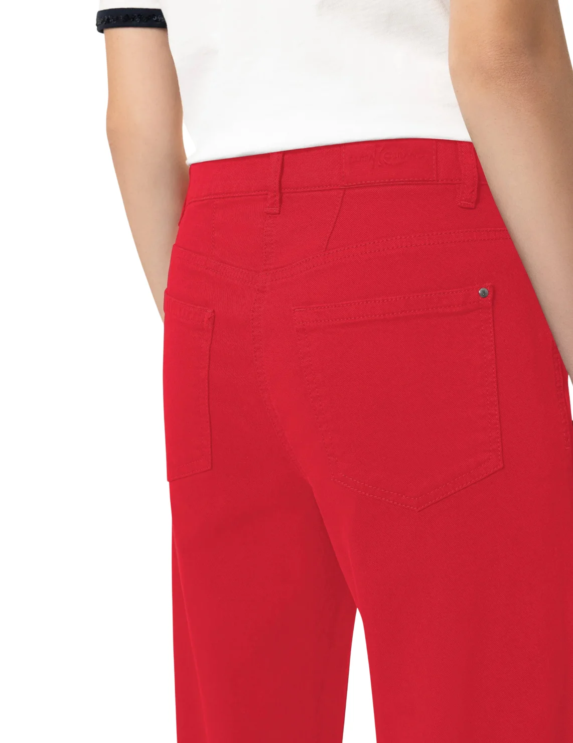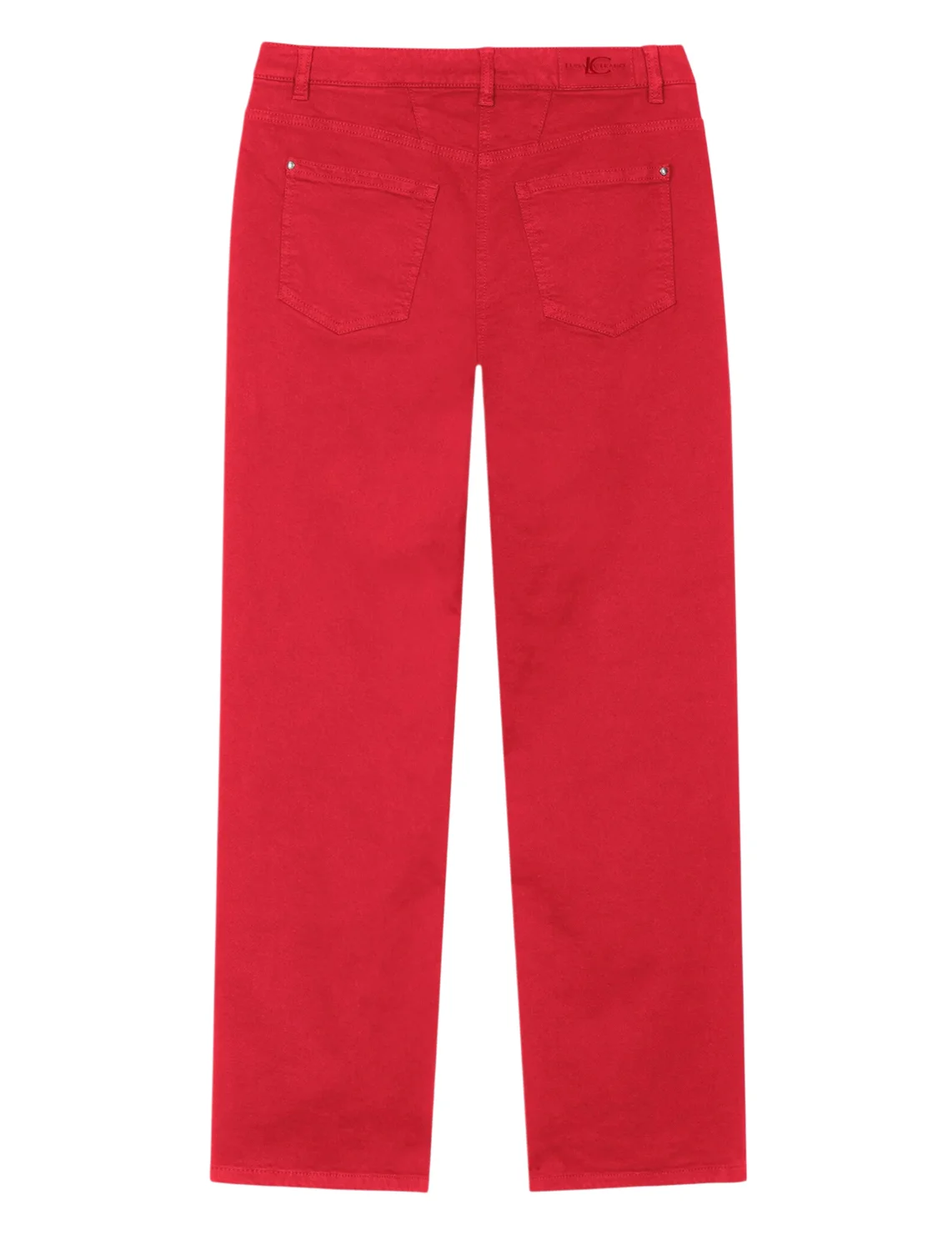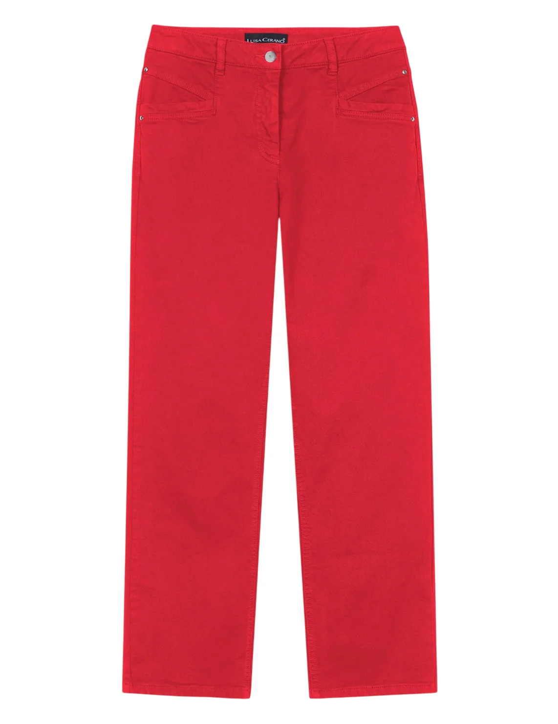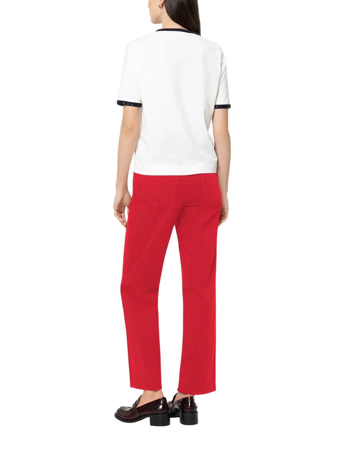Джинсы изготовлены из хлопка и эластана. Модель выполнена в прямом крое. Имеет шлёвки для ремня, скрытую застежку-молнию с пуговицей, а также пару передних прорезных и пару задних накладных карманов.