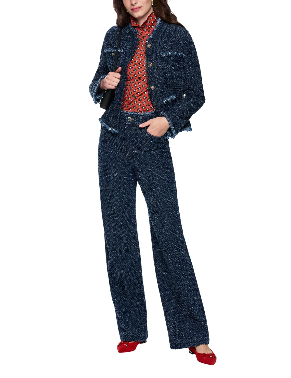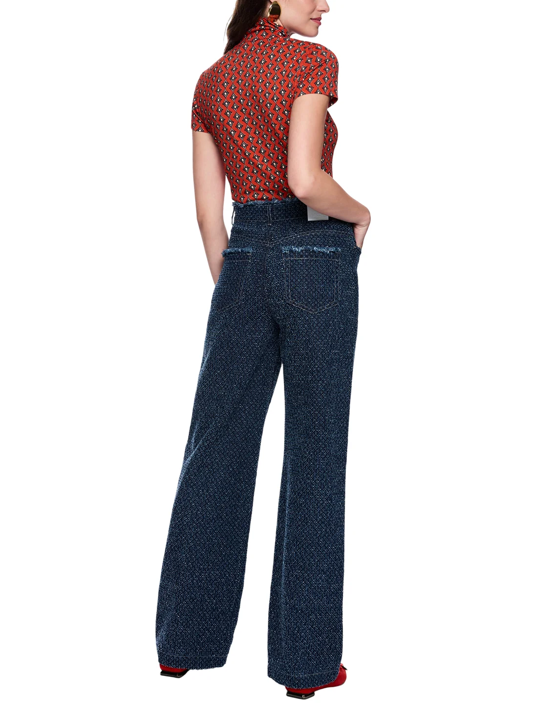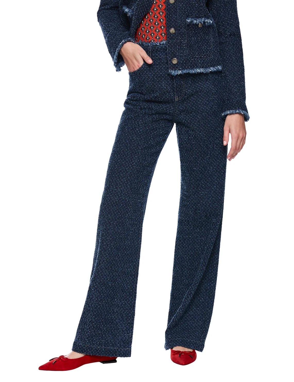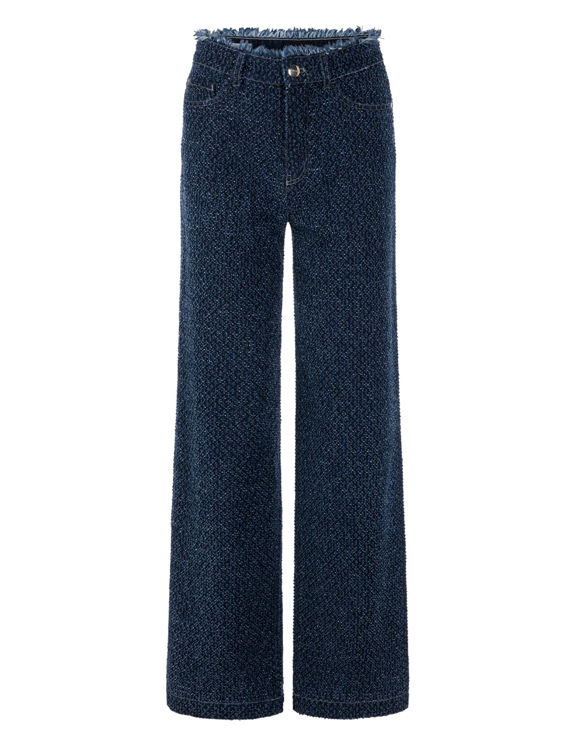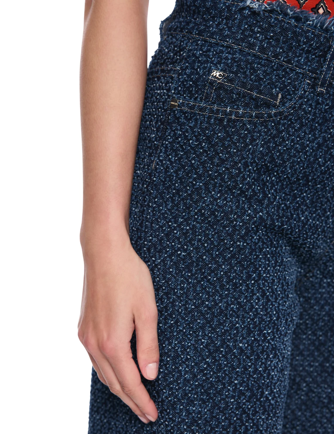Джинсы изготовлены из натурального хлопка высокого качества. Модель выполнена в свободном крое. Имеет скрытую застежку-молнию с пуговицей, а также пару передних прорезных и пару задних накладных карманов. Декорированы бахромой.