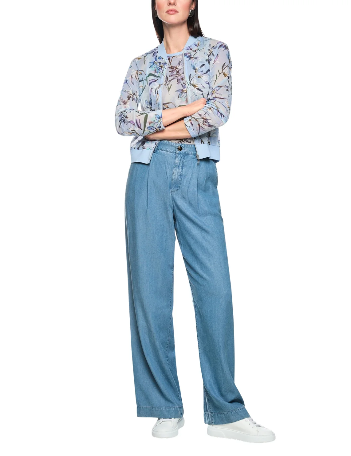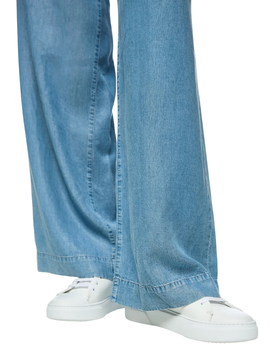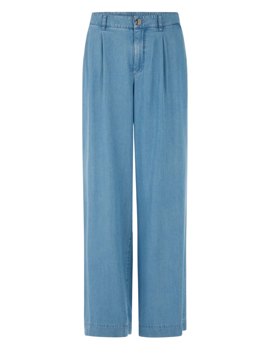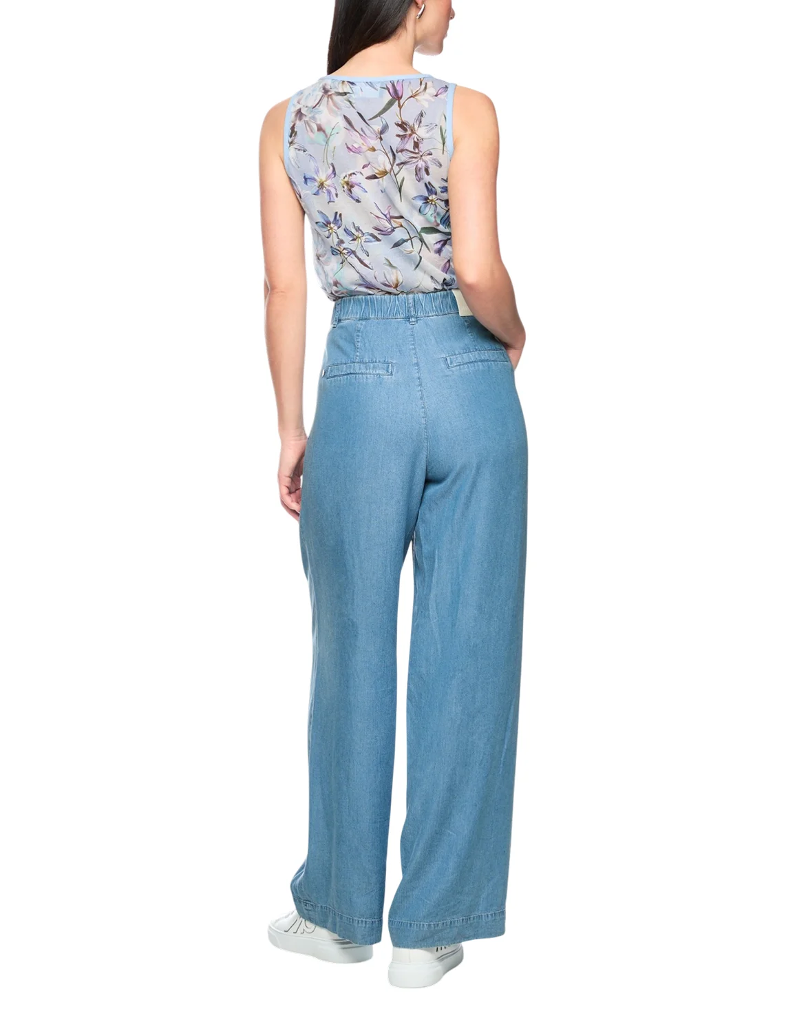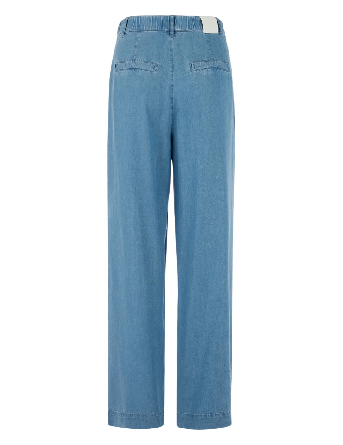 Джинсы изготовлены из лиоцелла высокого качества. Модель выполнена в свободном крое. Имеет петли для ремня, скрытую застежку-молнию с пуговицей, складки, эластичный пояс сзади и прорезные карманы.
