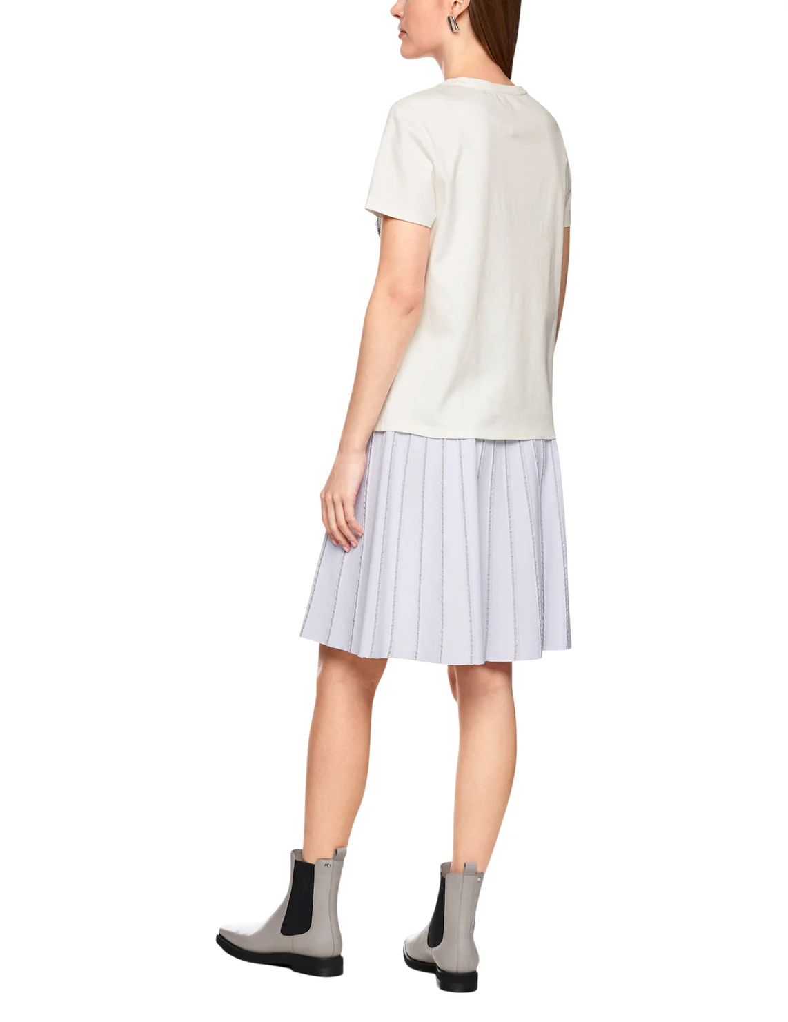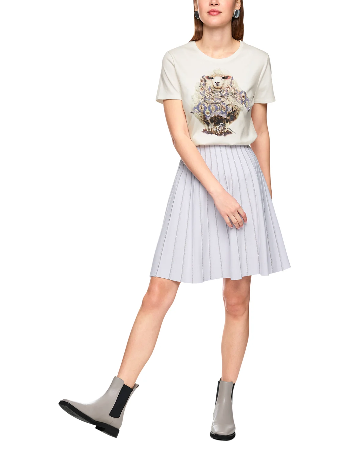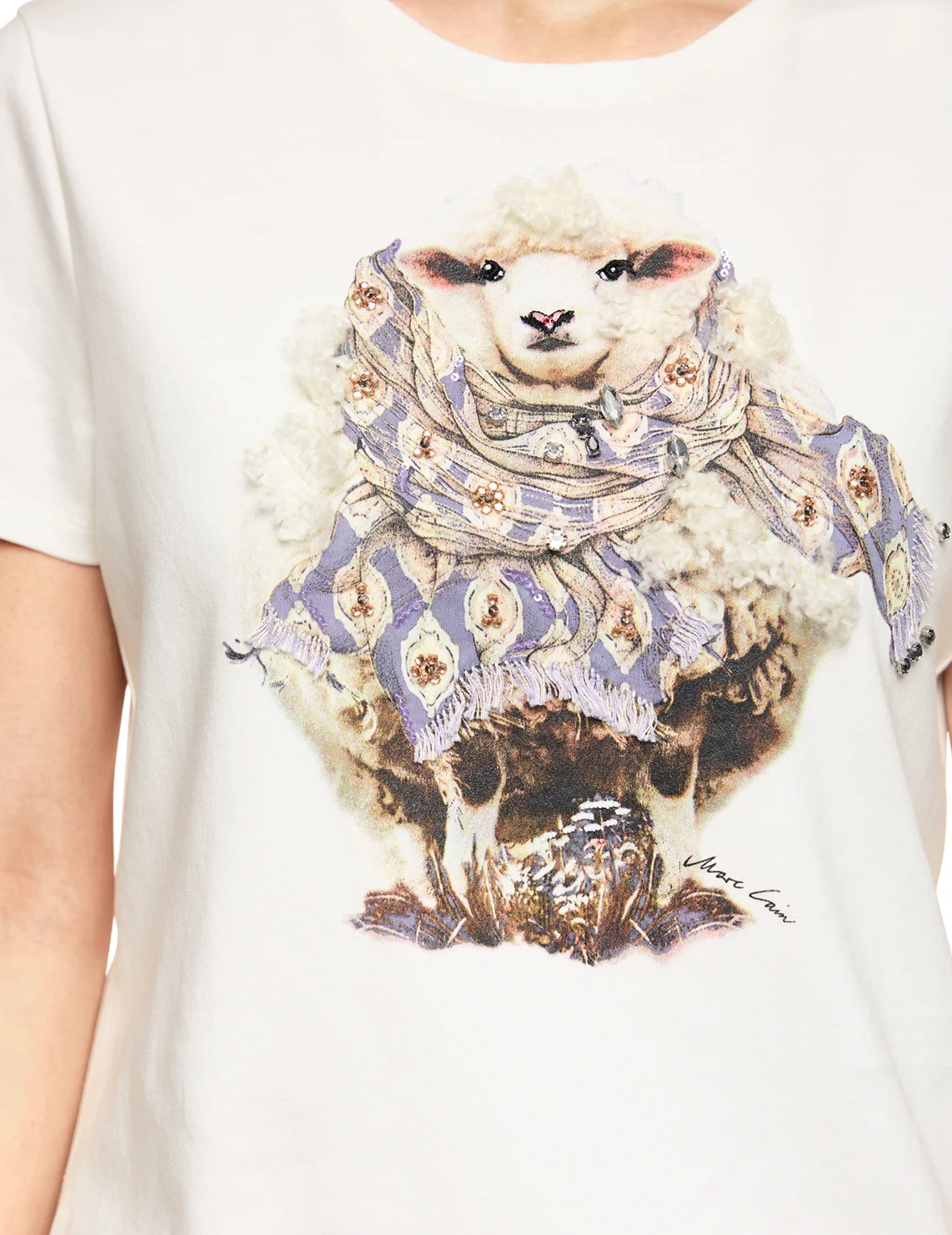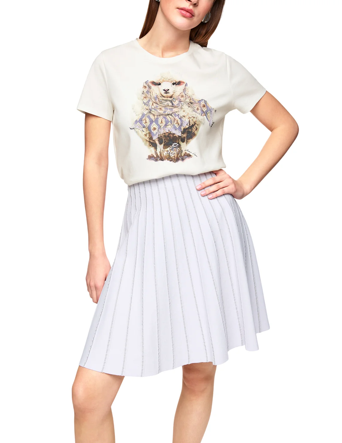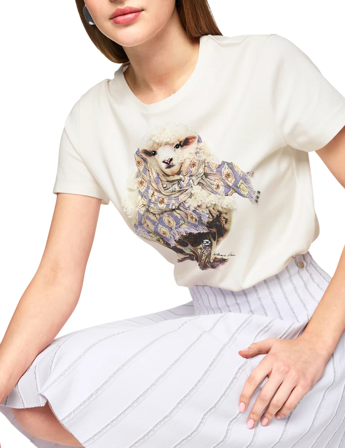 Футболка изготовлена из 100% хлопка высокого качества. Модель выполнена в прямом крое. Имеет круглый вырез горловины и короткие рукава. Декорирована оригинальным принтом.