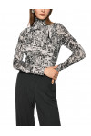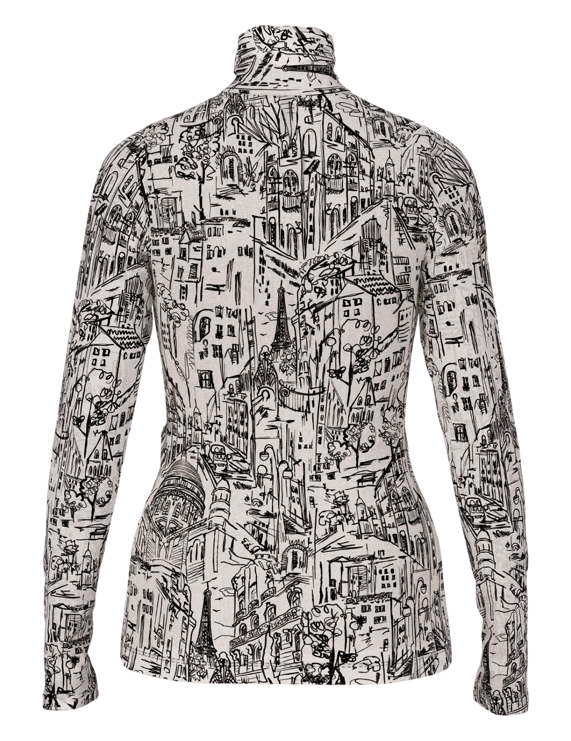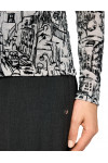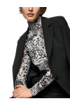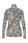 Гольф изготовлен из полиамида и вискозы. Модель выполнена в приталенном крое. Имеет воротник-стойку и длинные рукава. Декорирован оригинальным принтом.