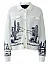 Кардиган изготовлен из вискозы, хлопка, полиакрила, полиэстера, полиамида, кашемира и эластана. Модель выполнена в прямом крое. Имеет отложной воротник, декоративные клапаны, застежку на пуговицах и длинные рукава с манжетами. Декорирован оригинальным принтом.