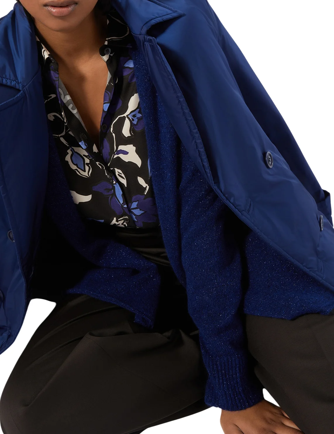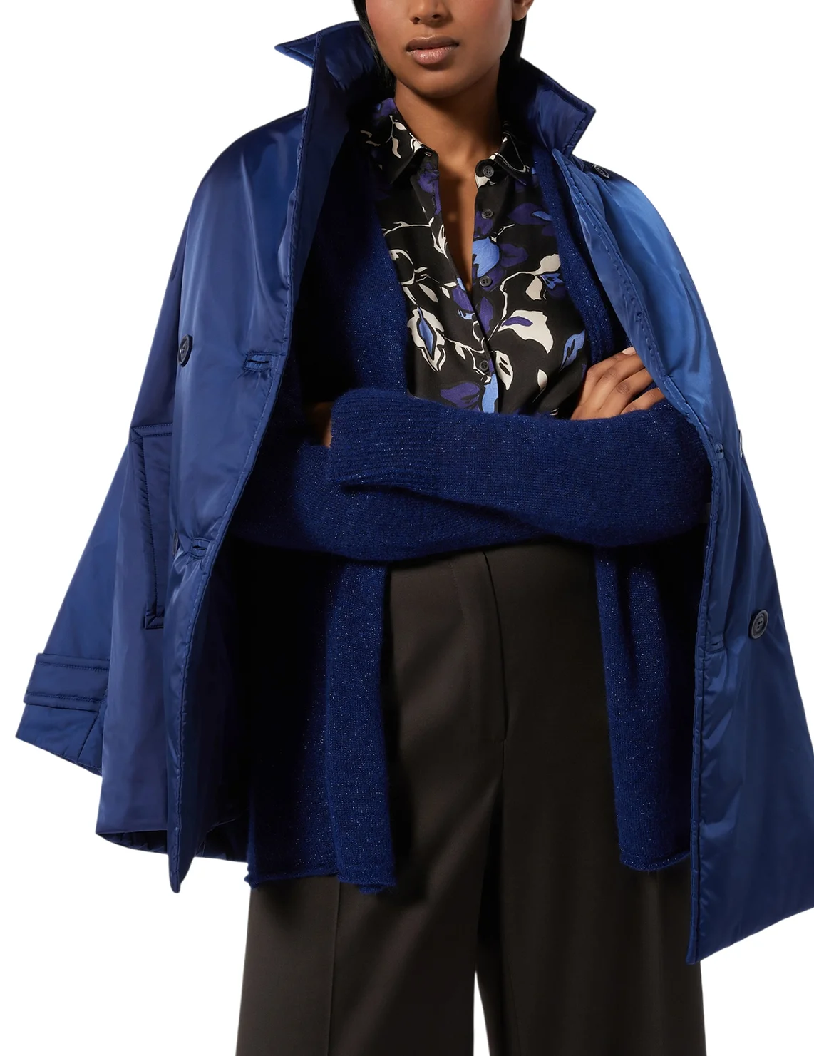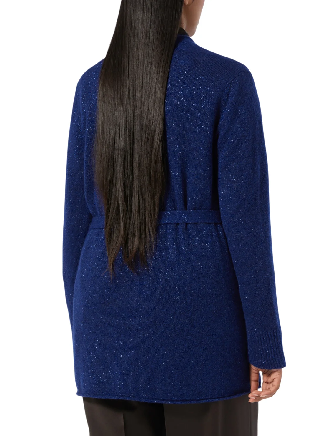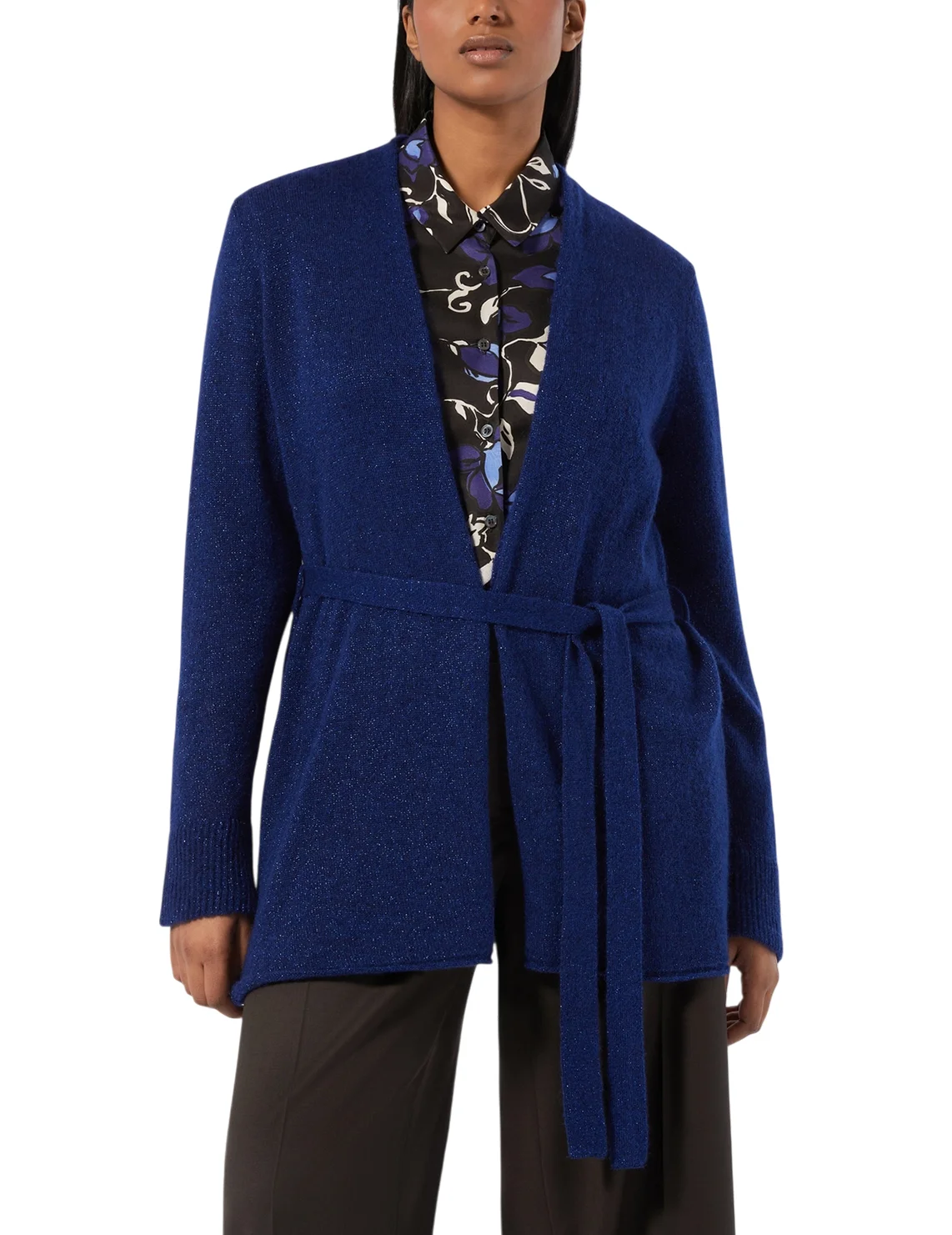 Кардиган изготовлен из альпаки, полиамида и шерсти. Модель выполнена в прямом крое. Имеет V-образный вырез горловины, тканевый пояс в тон и длинные рукава с манжетами.