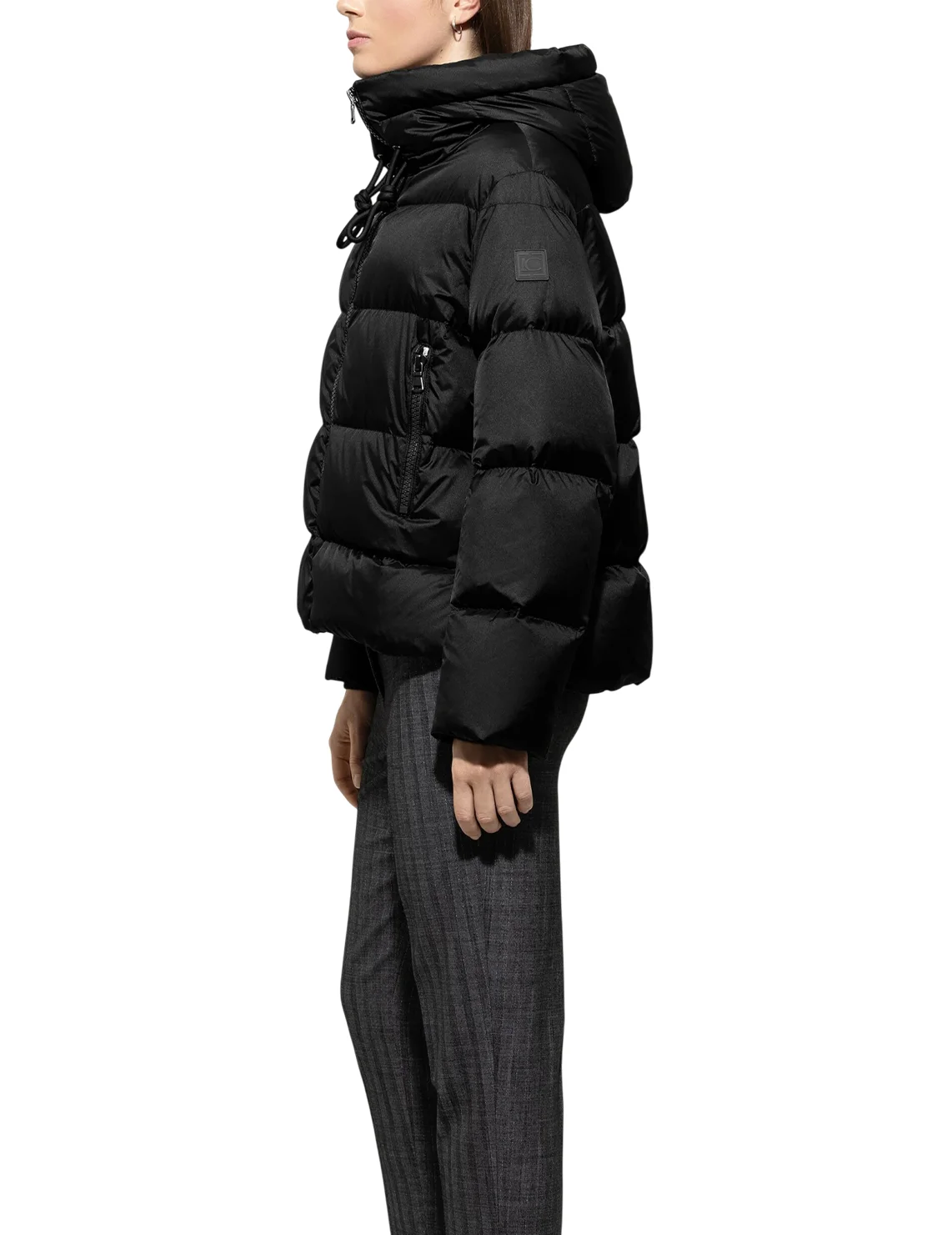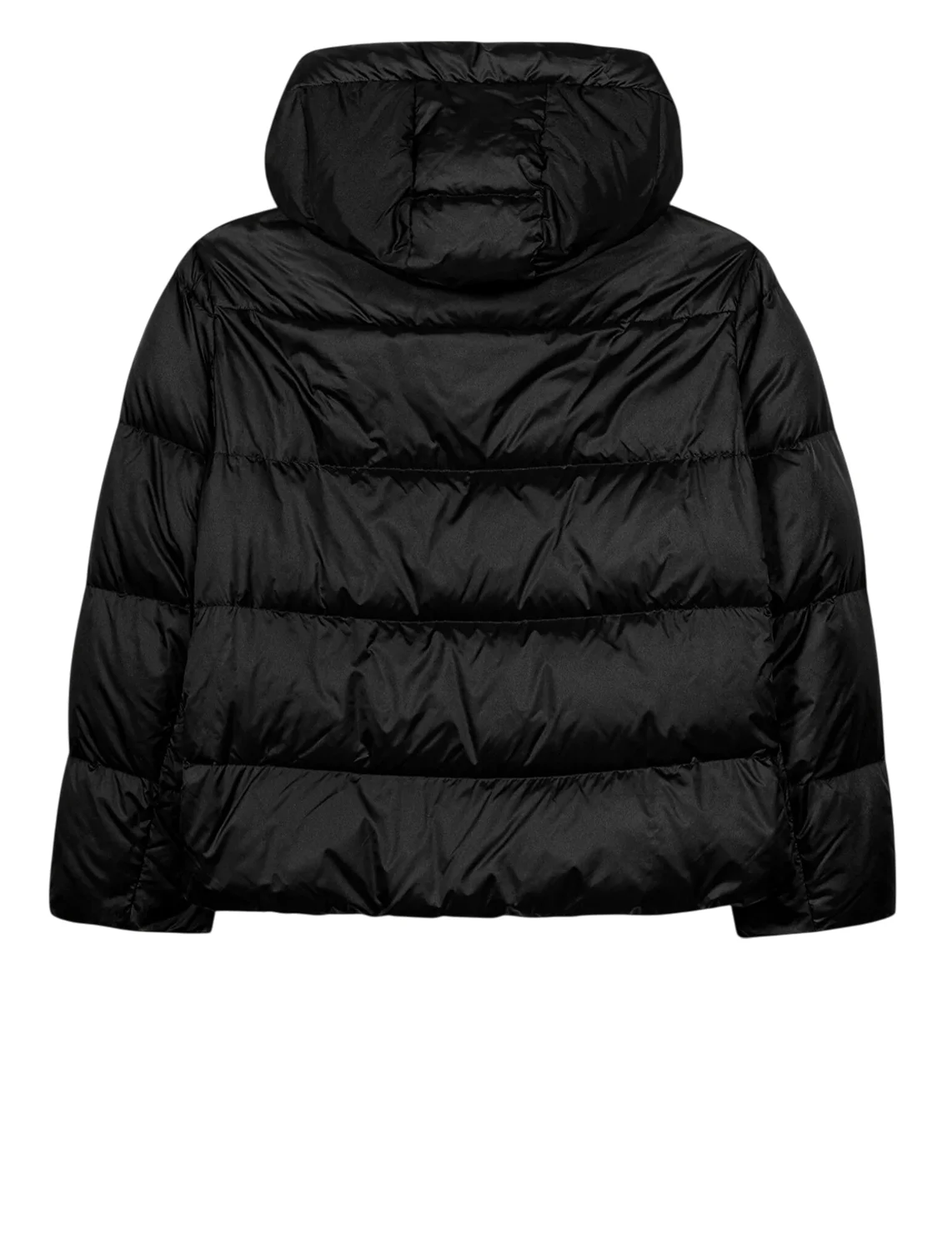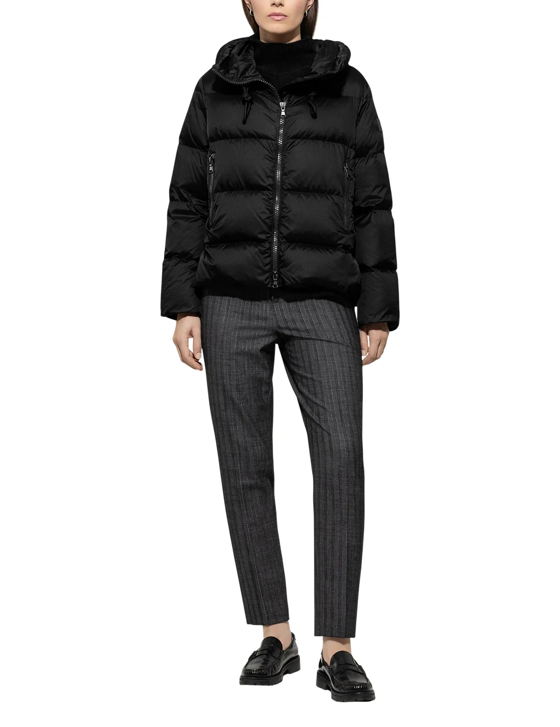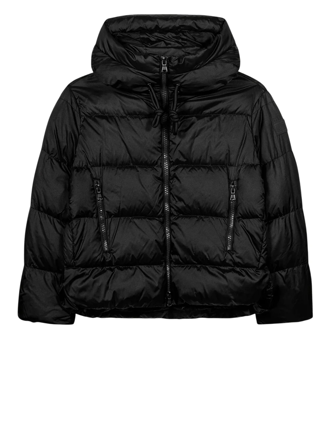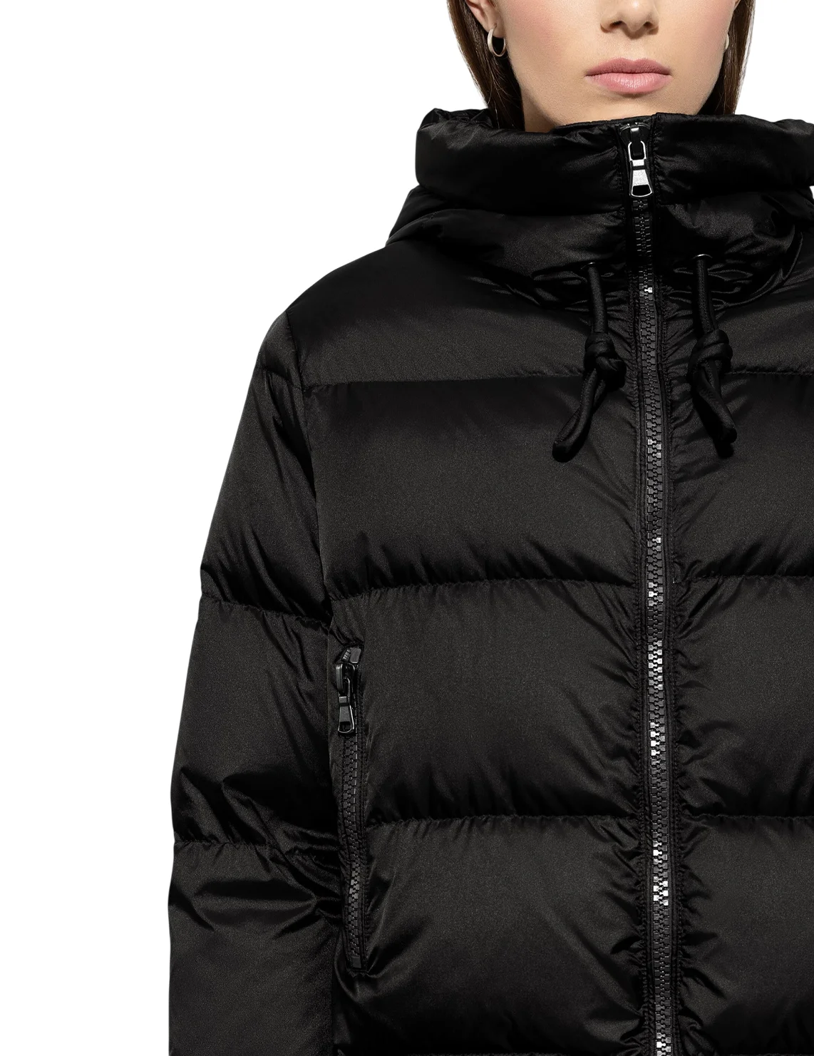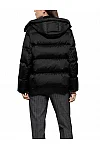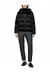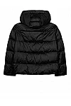Куртка изготовлена из 100% полиамида, наполнитель - 90% пух, 10% перо, подкладка из полиамида. Модель выполнена в прямом крое. Имеет воротник-стойку с кулиской, прорезные карманы на молниях, длинные рукава с манжетами и двустороннюю застежку-молнию.