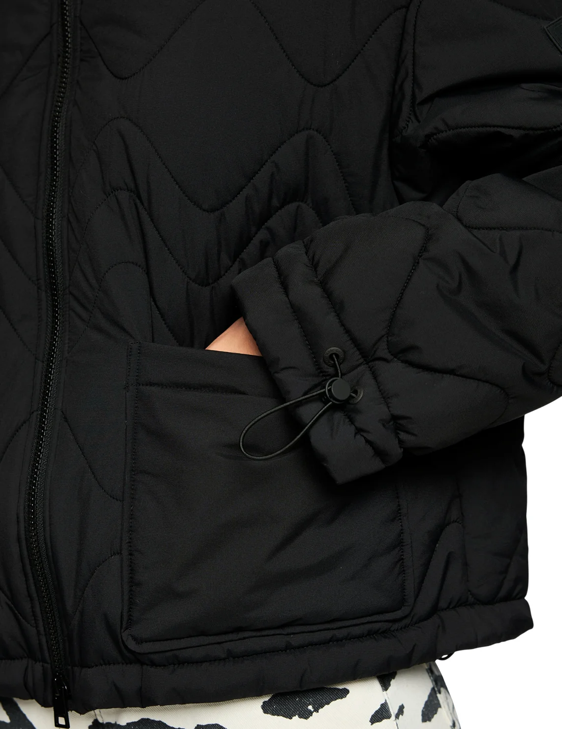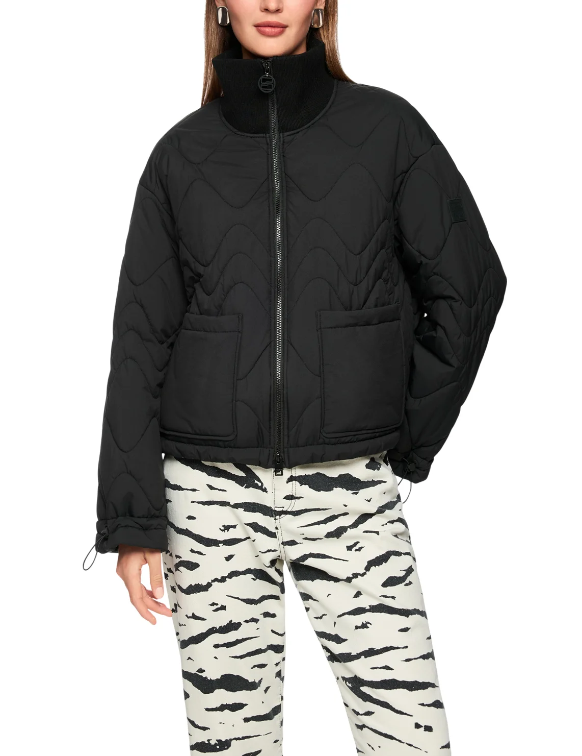 Куртка изготовлена из 100% полиамида, подкладка из полиэстера, воротник из акрила, шерсти, полиэстера и эластана, наполнитель из полиэстера. Модель выполнена в прямом крое. Имеет воротник-стойку, накладные карманы, длинные рукава с кулисками и двустороннюю застежку-молнию.