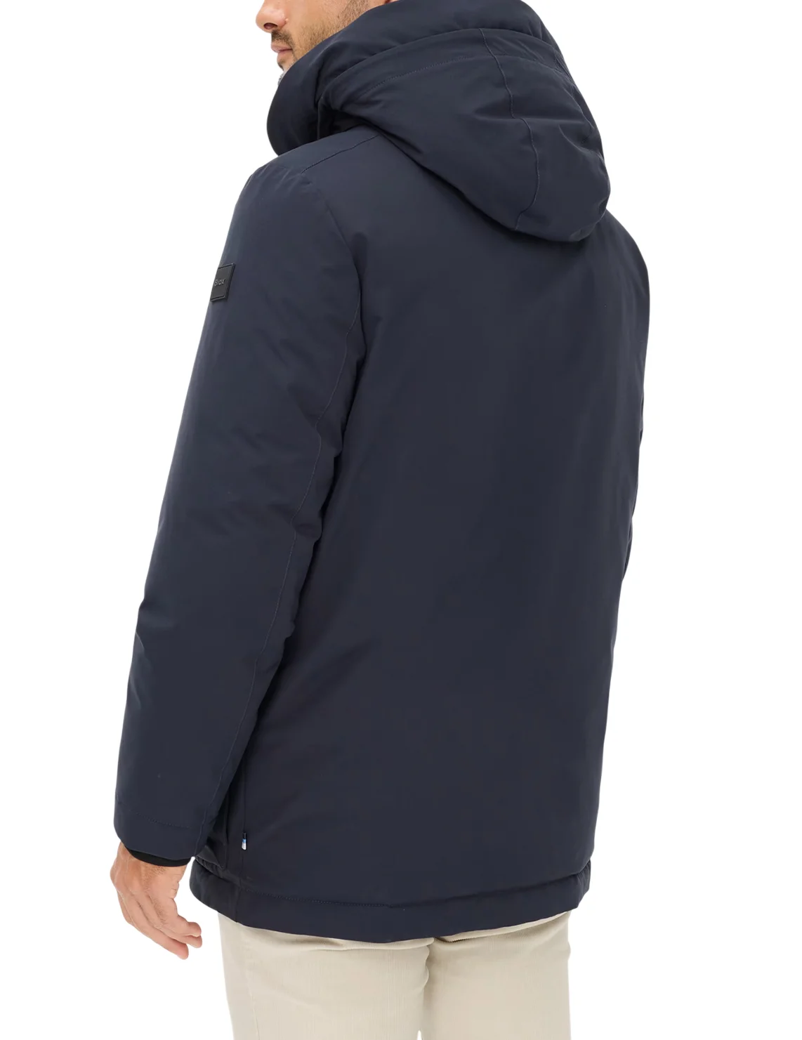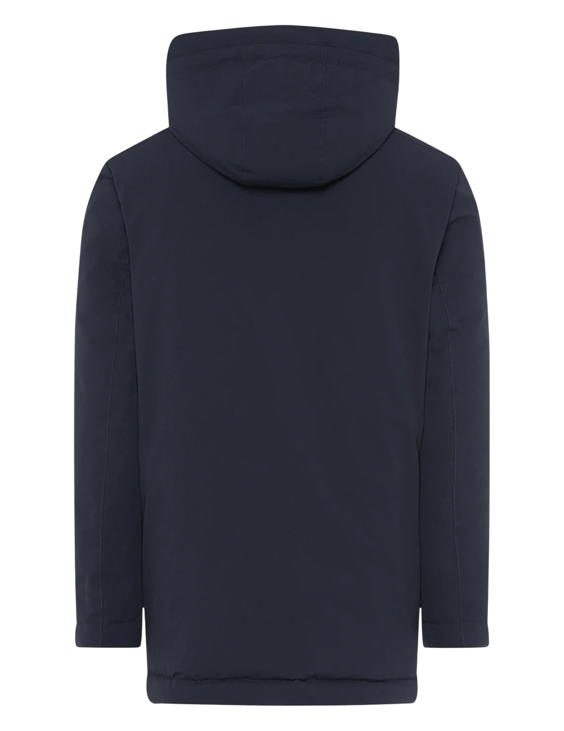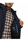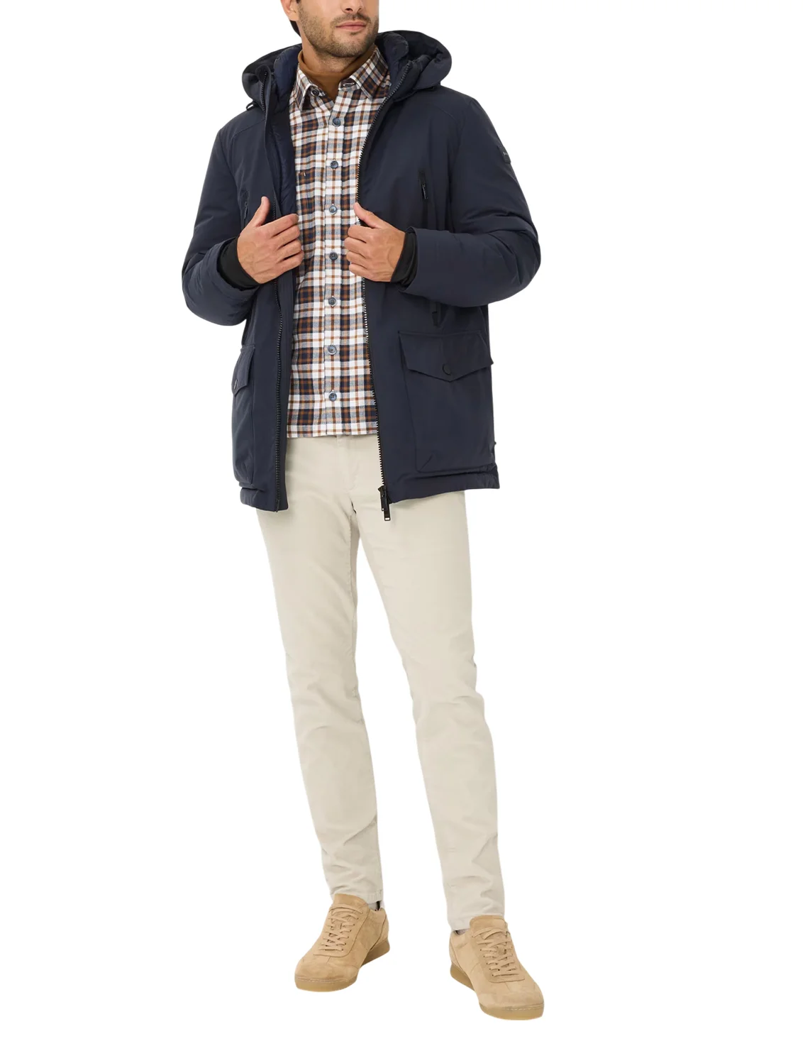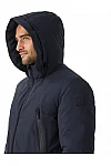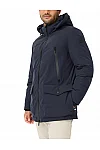 Куртка изготовлена из 100% полиэстера, подкладка из 100% полиамида. Модель выполнена в прямом крое. Имеет воротник-стойку, капюшон с кулиской, прорезные нагрудные карманы на молнии, карманы с клапанами, боковые прорезные карманы, длинные рукава и двустороннюю застежку-молнию.
