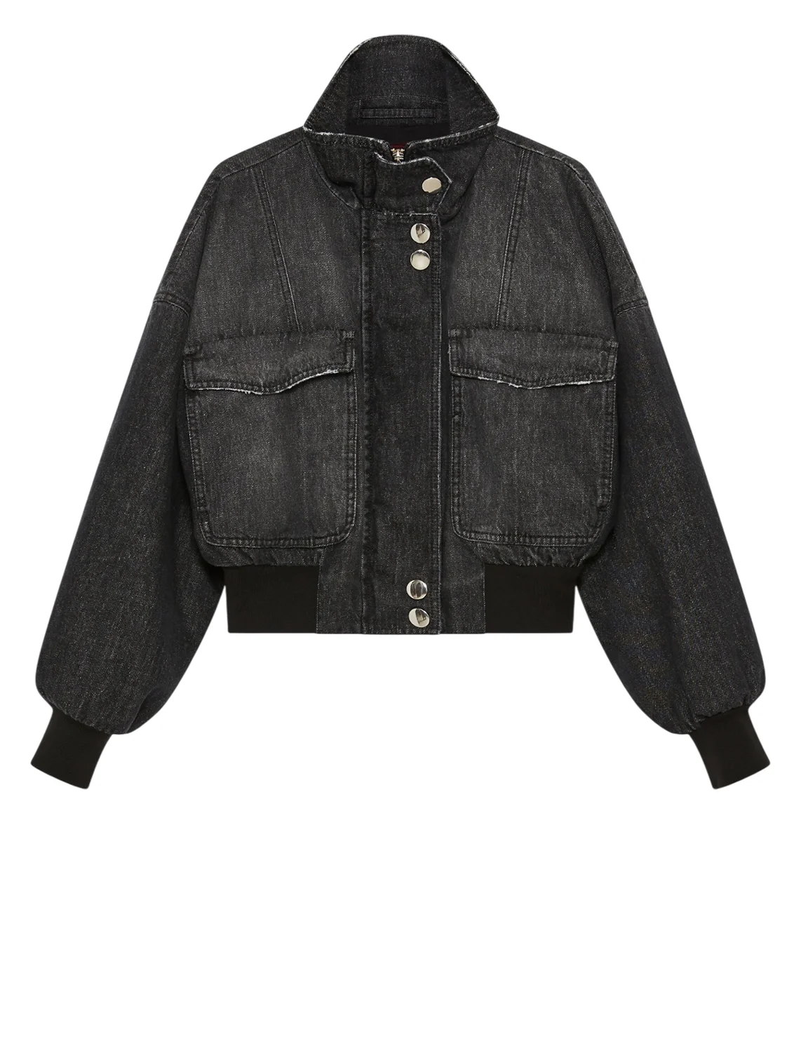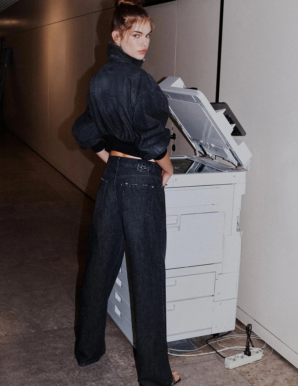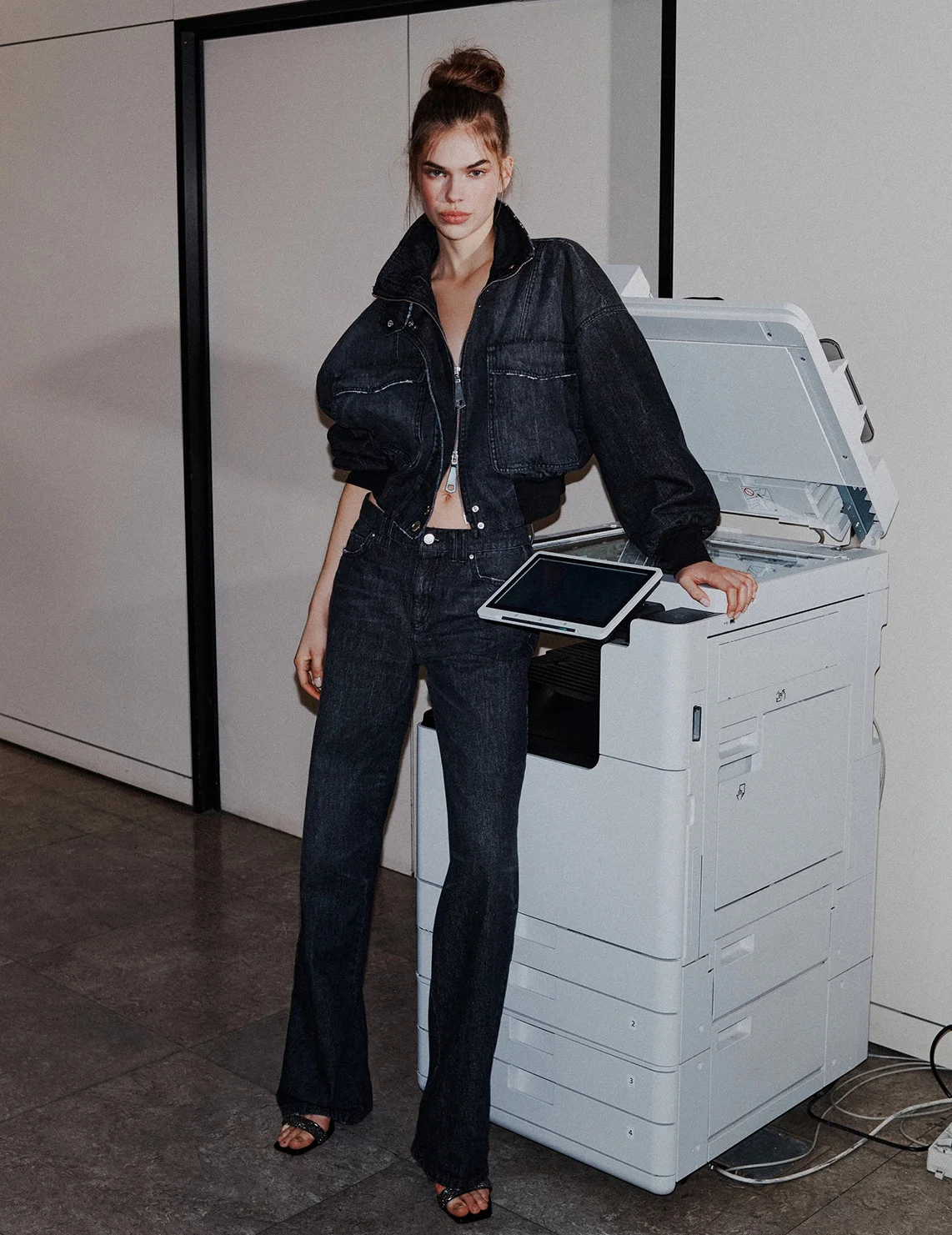 Джинсовая куртка изготовлена из 100% хлопка, подкладка из вискозы, полиамида и эластана. Модель выполнена в свободном крое. Имеет воротник-стойку, длинные рукава с манжетами, нагрудные карманы с клапанами, застежку на молнии и кнопках. Модель входит в специальную коллекцию Marella Codesign, созданную в сотрудничестве со Стеллой Максвелл.