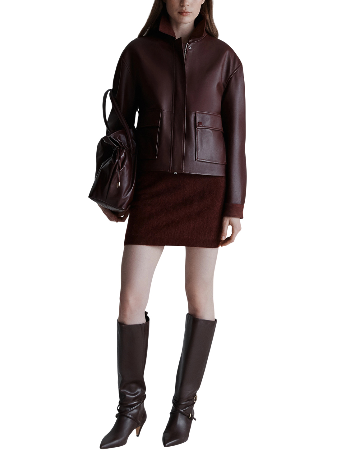 Куртка изготовлена из 100% кожи высокого качества, подкладка из полиэстера. Модель выполнена в прямом крое. Имеет отложной воротник, длинные рукава с манжетами, накладные карманы с клапанами, двустороннюю застежку на молнии и кнопках.