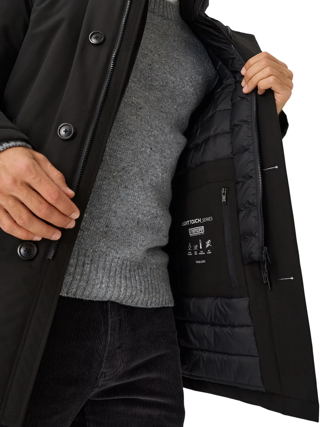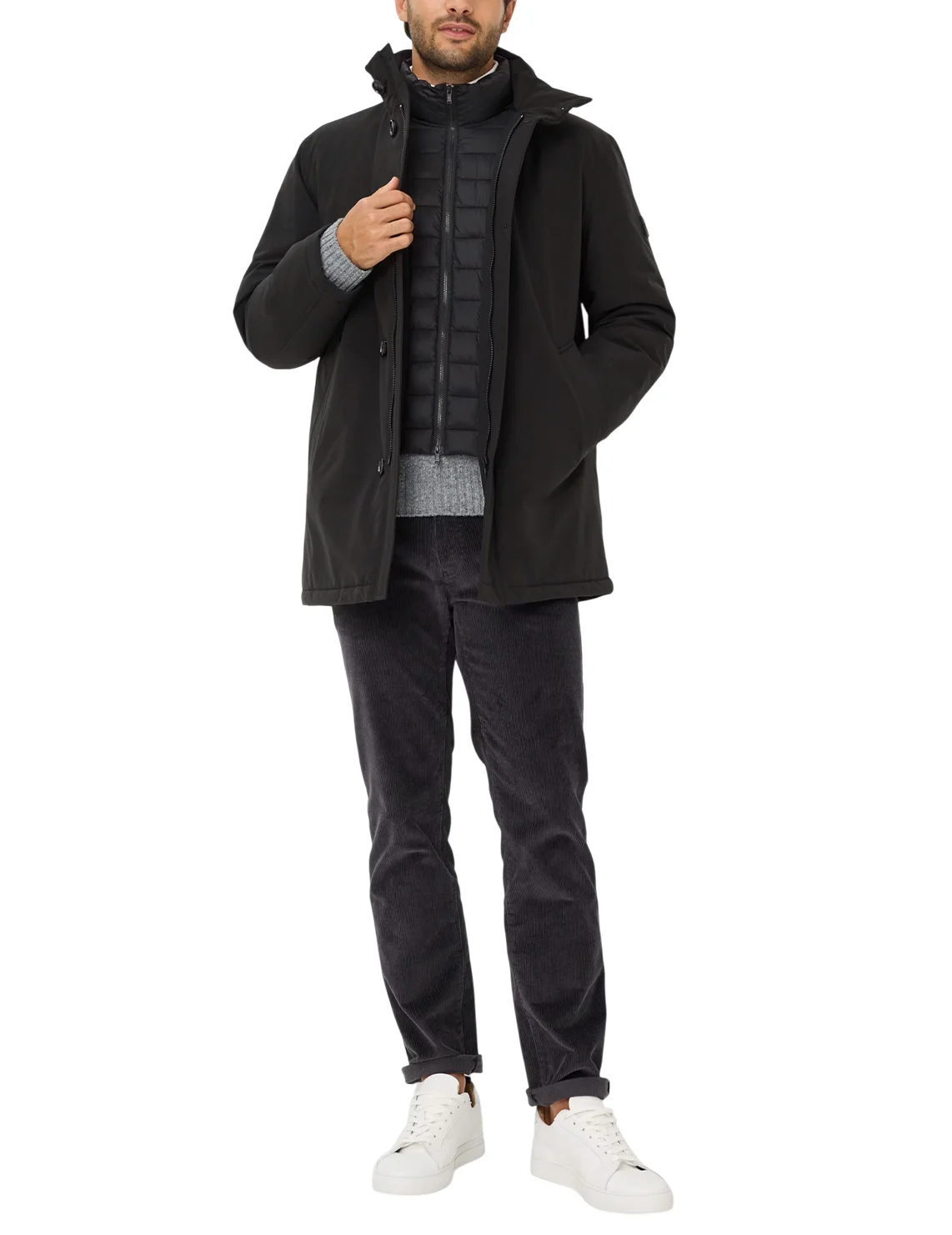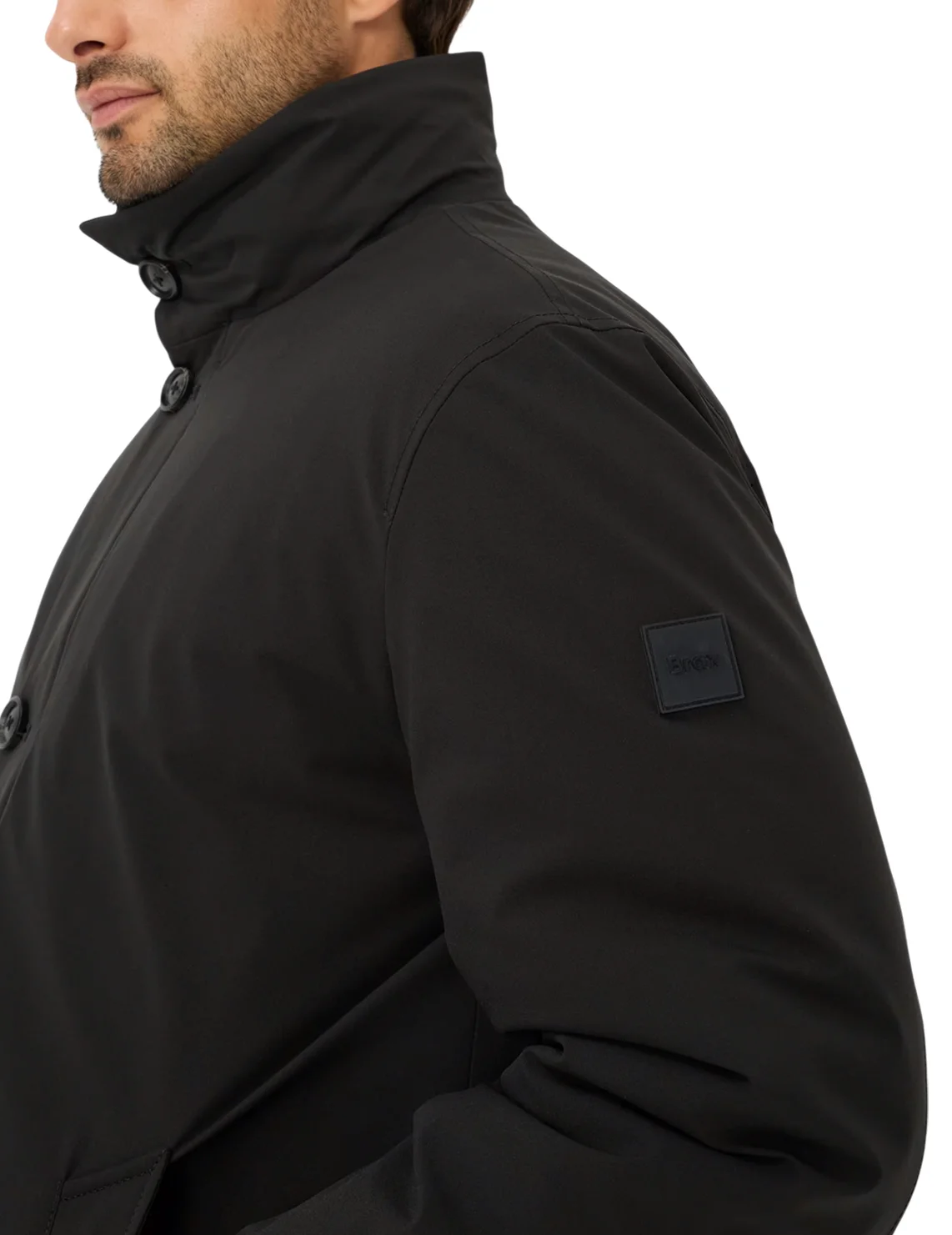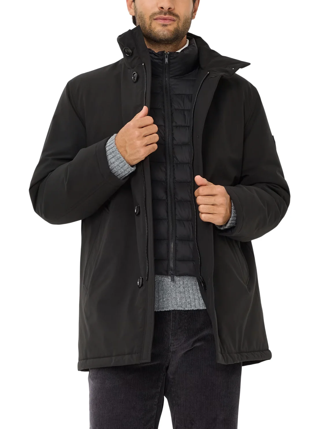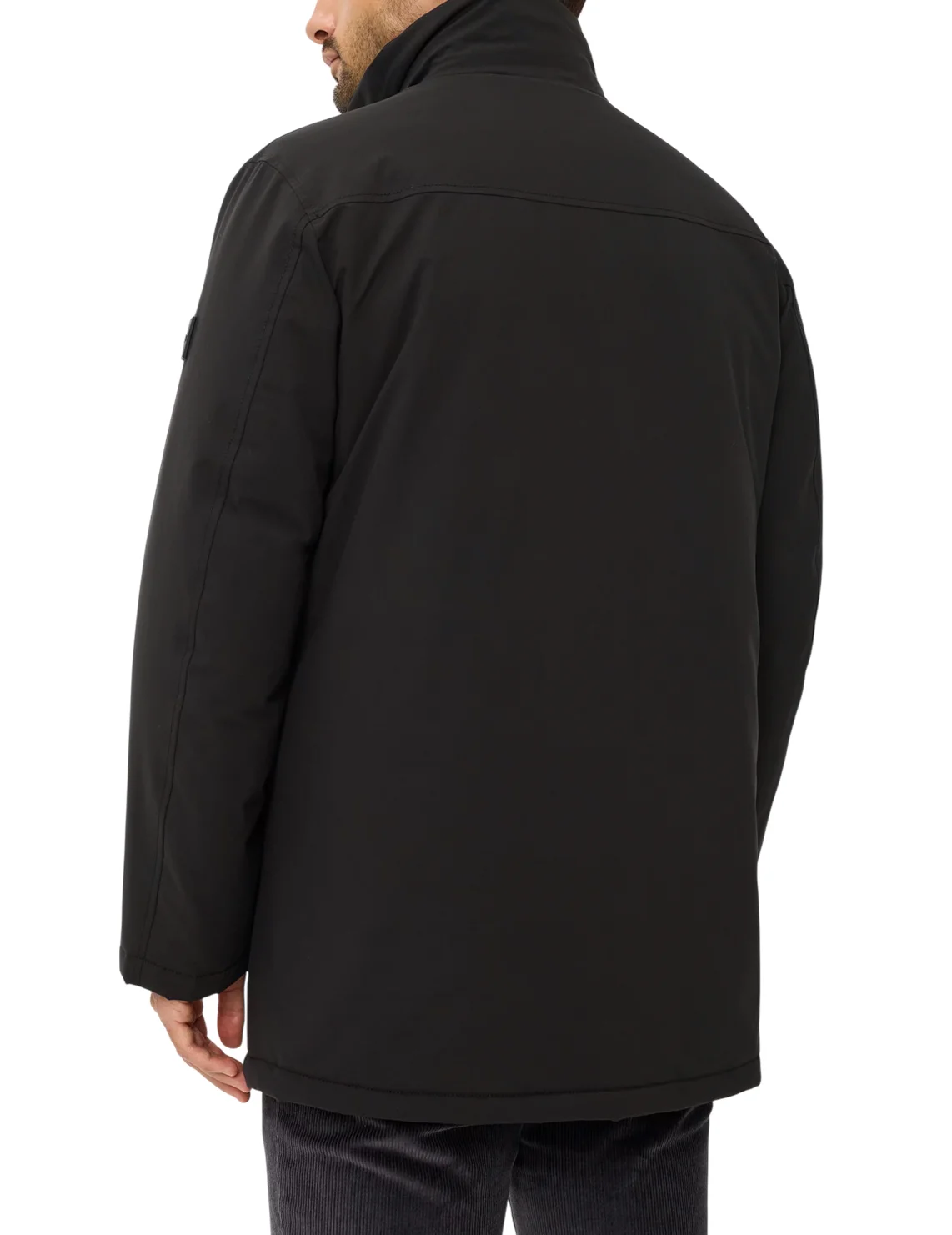 Куртка изготовлена из 100% полиэстера, подкладка из 100% полиамида. Модель выполнена в прямом крое. Имеет воротник-стойку, длинные рукава, прорезные карманы, внутренний карман на молнии, застежку на пуговицах и молнии.