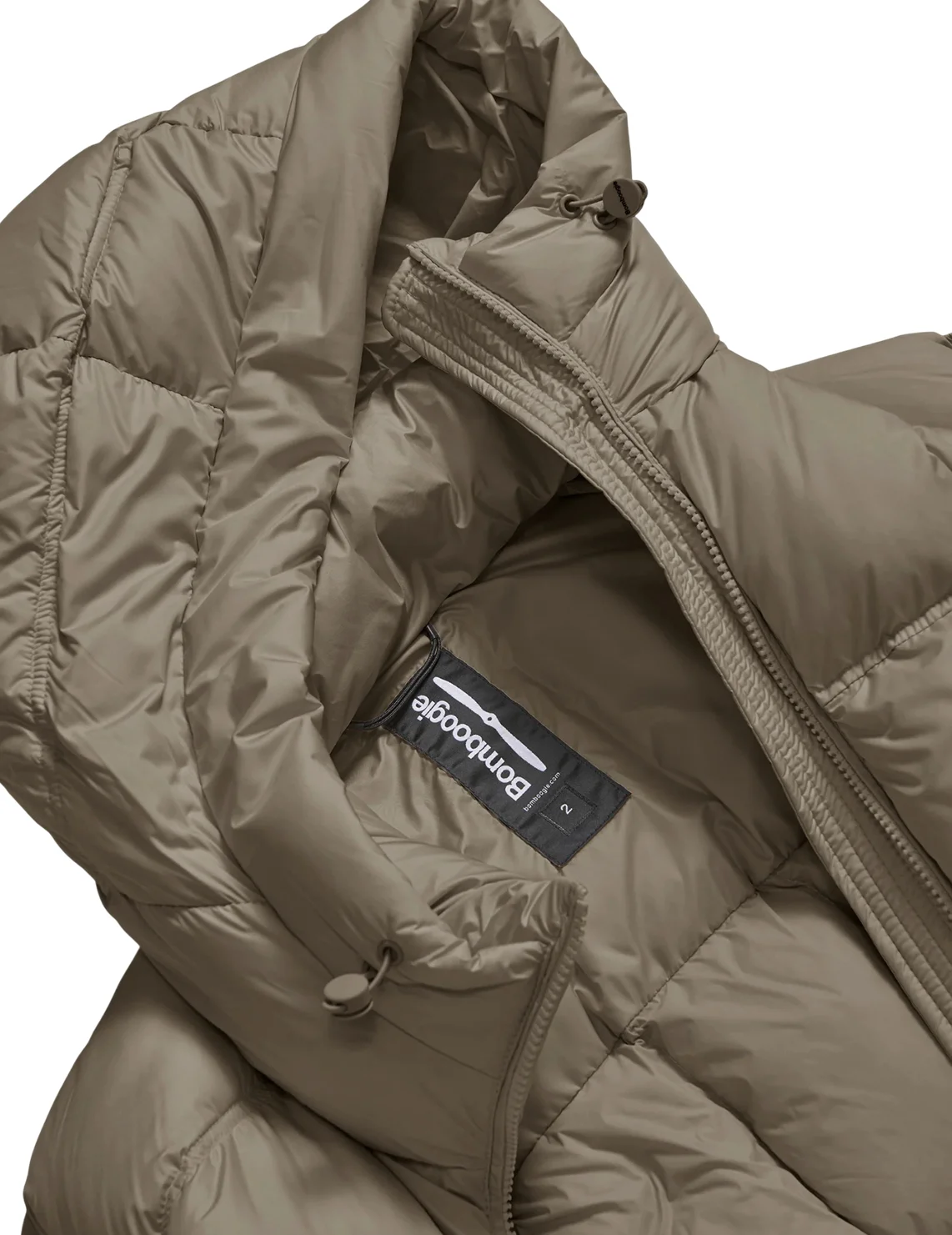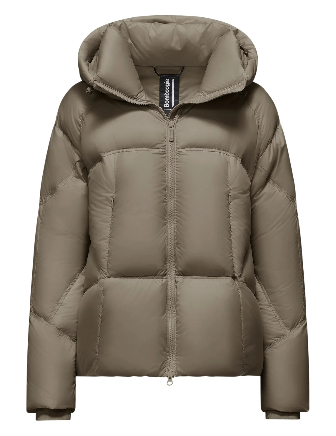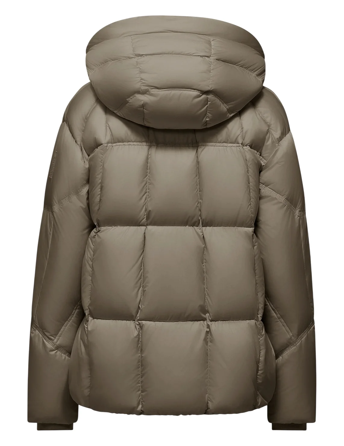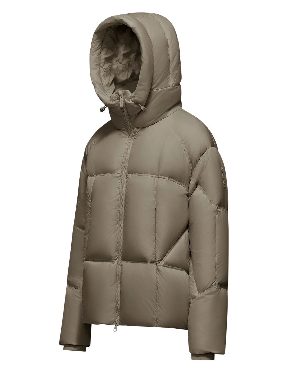 Куртка изготовлена из 100% нейлона, наполнитель - 90% пух, 10% перо. Модель выполнена в прямом крое. Имеет капюшон с кулиской, двустороннюю застежку-молнию, длинные рукава с манжетами и прорезные карманы на молниях.