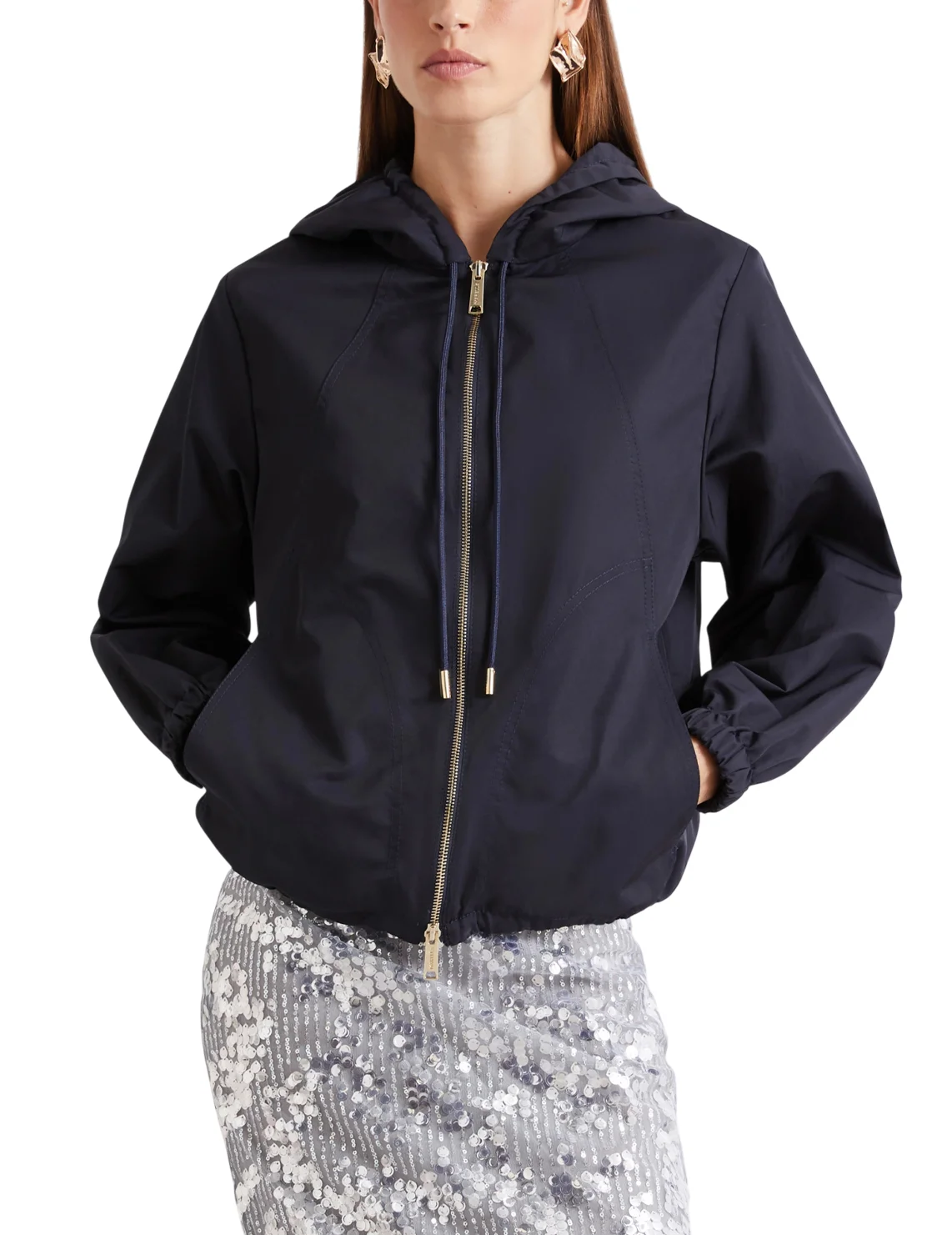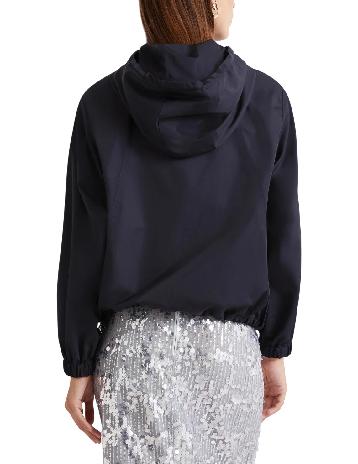 Куртка из плащевки от бренда Marella содержит в составе полиэстер и хлопок. Модель прямого кроя. Имеет капюшон с кулиской, длинные рукава с эластичными манжетами, прорезные боковые карманы и шнурок по низу изделия. Застёгивается на двустороннюю молнию.