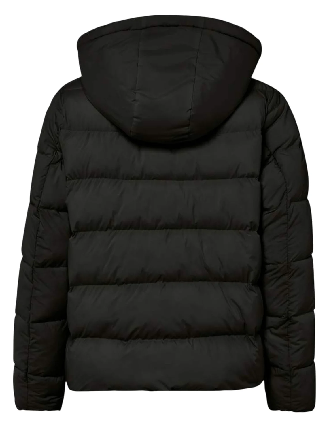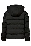 Куртка изготовлена из 100% полиэстера, подкладка из 100% полиэстера. Модель выполнена в прямом крое. Имеет воротник-стойку, капюшон, боковые прорезные карманы на кнопках, длинные рукава и застежку-молнию с кнопками.