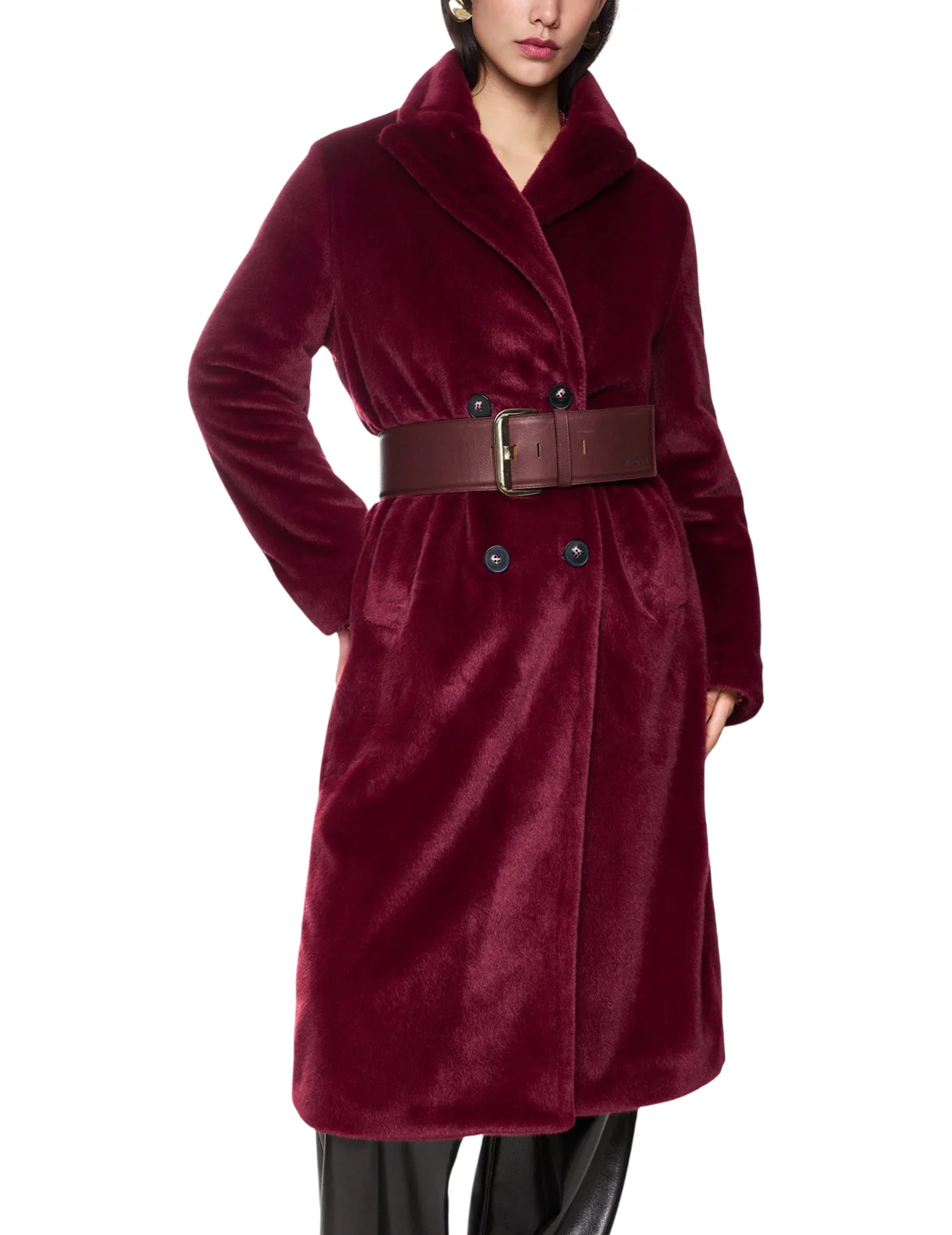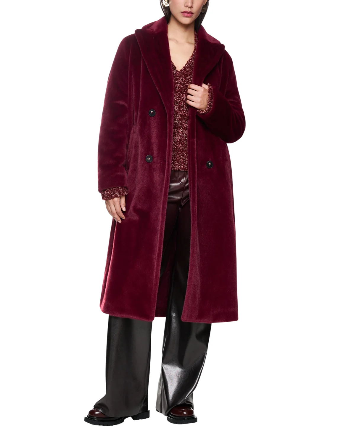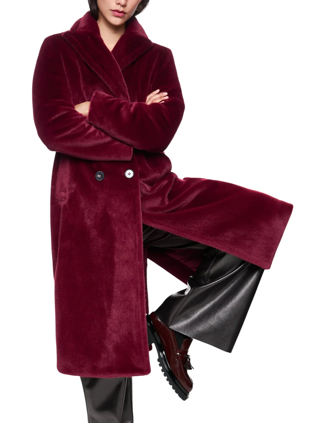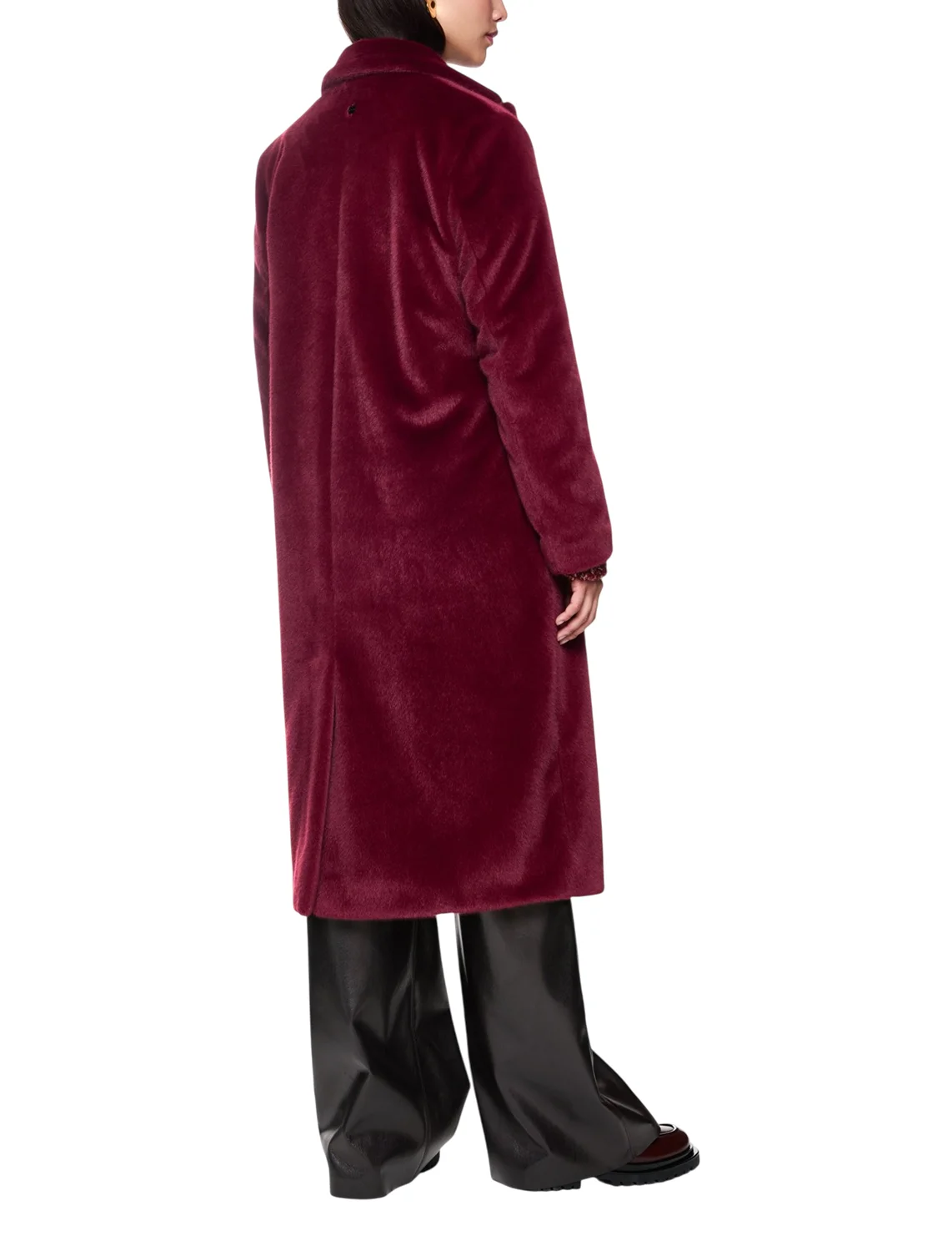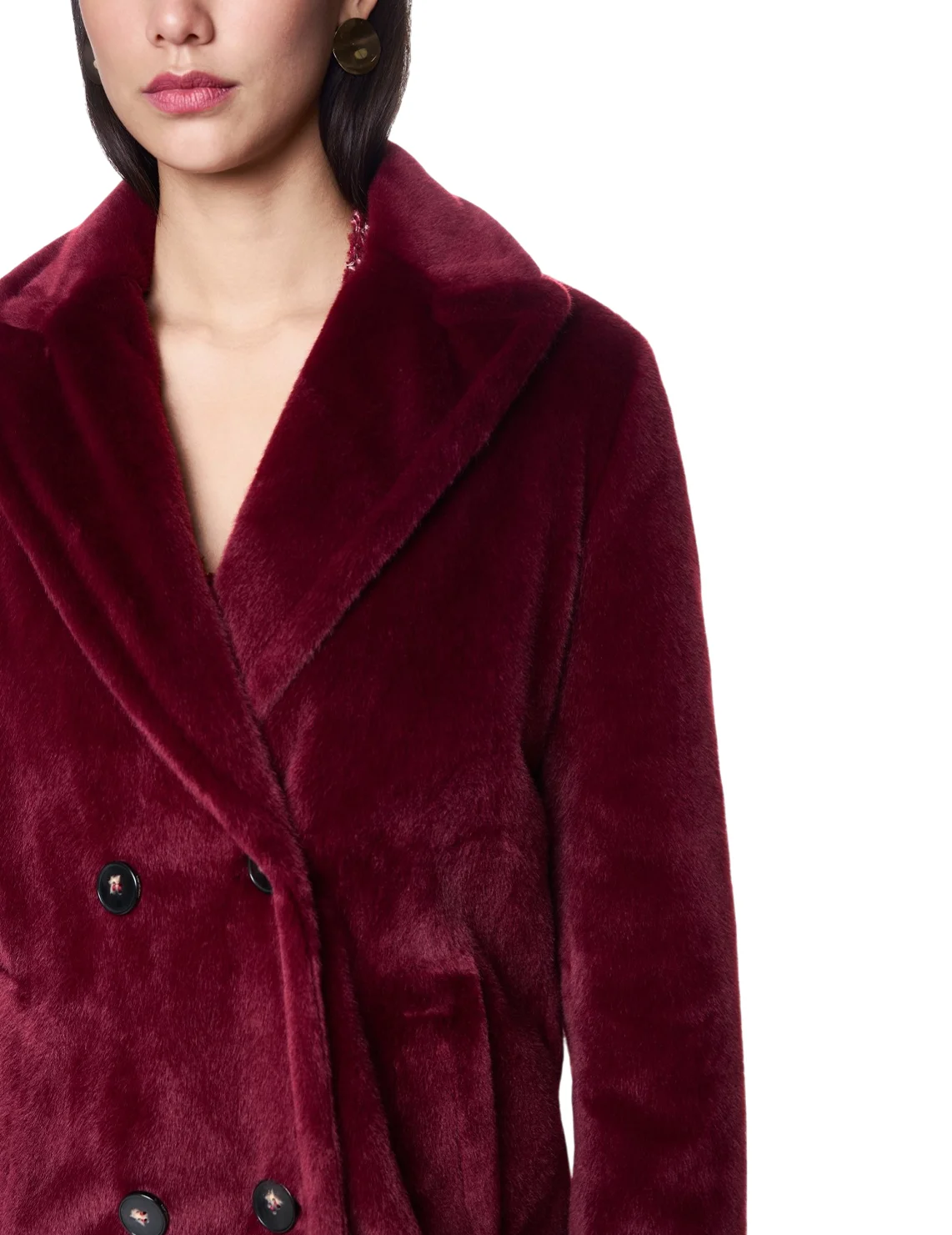 Двубортное пальто изготовлено из 100% полиэстера. Модель выполнена в прямом крое. Имеет отложной воротник с лацканами, застежку на пуговицах, длинные рукава и прорезные карманы.