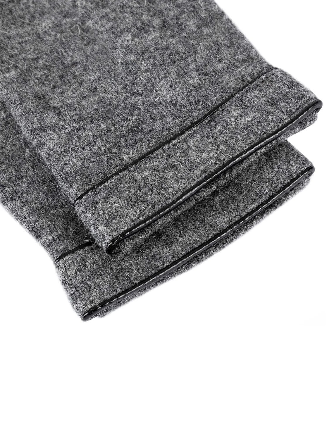 Серые перчатки от бренда Roeckl изготовлены из шерсти и нейлона. Лаконичный дизайн модели дополнен двойной кожаной окантовкой, характерным швом на кокетке и накладкой для сенсорных экранов в форме сердечка.