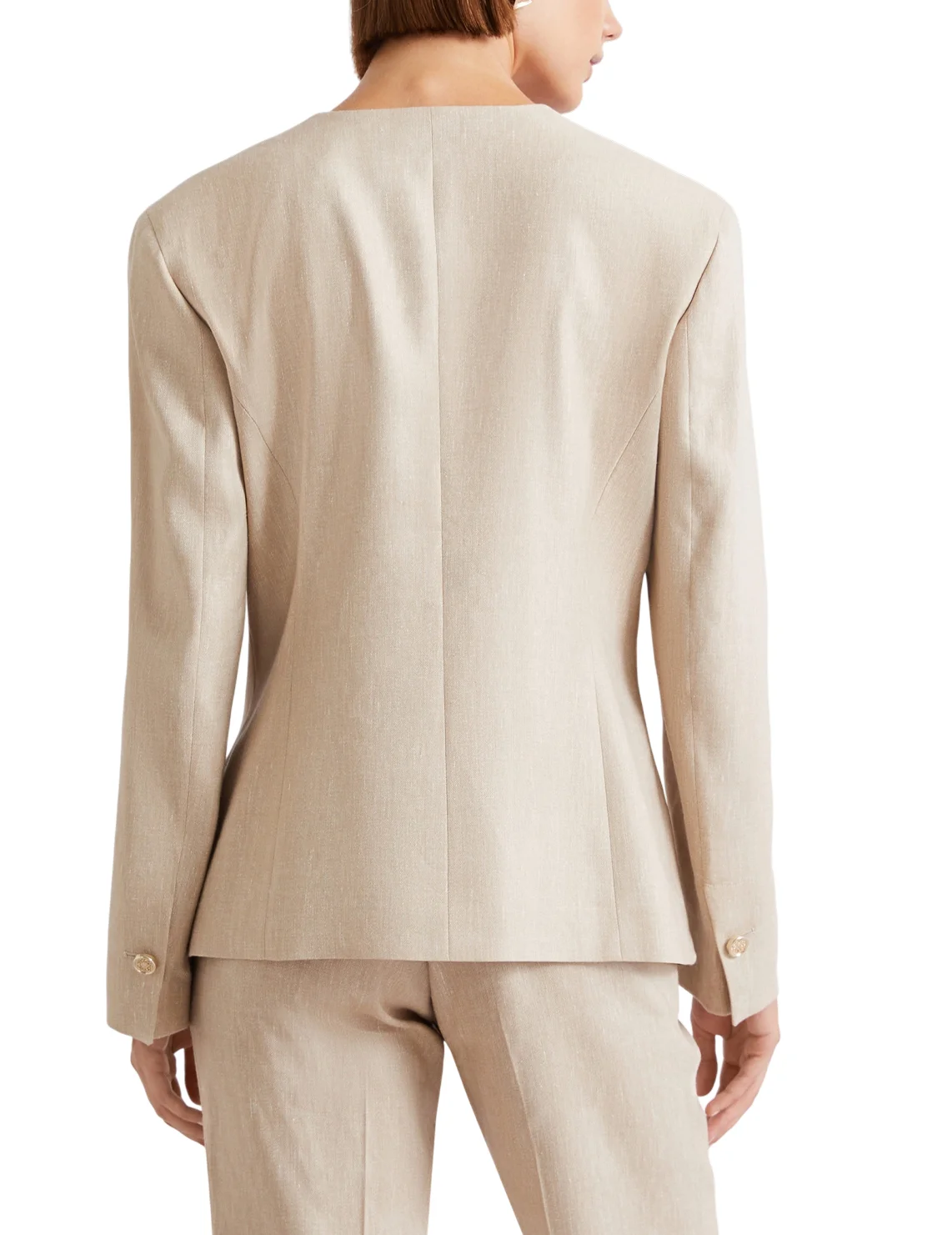 57% лен, 23% вискоза, 18% полиэстер, 2% эластан. Подкладка: 64% ацетат, 36% полиэстер