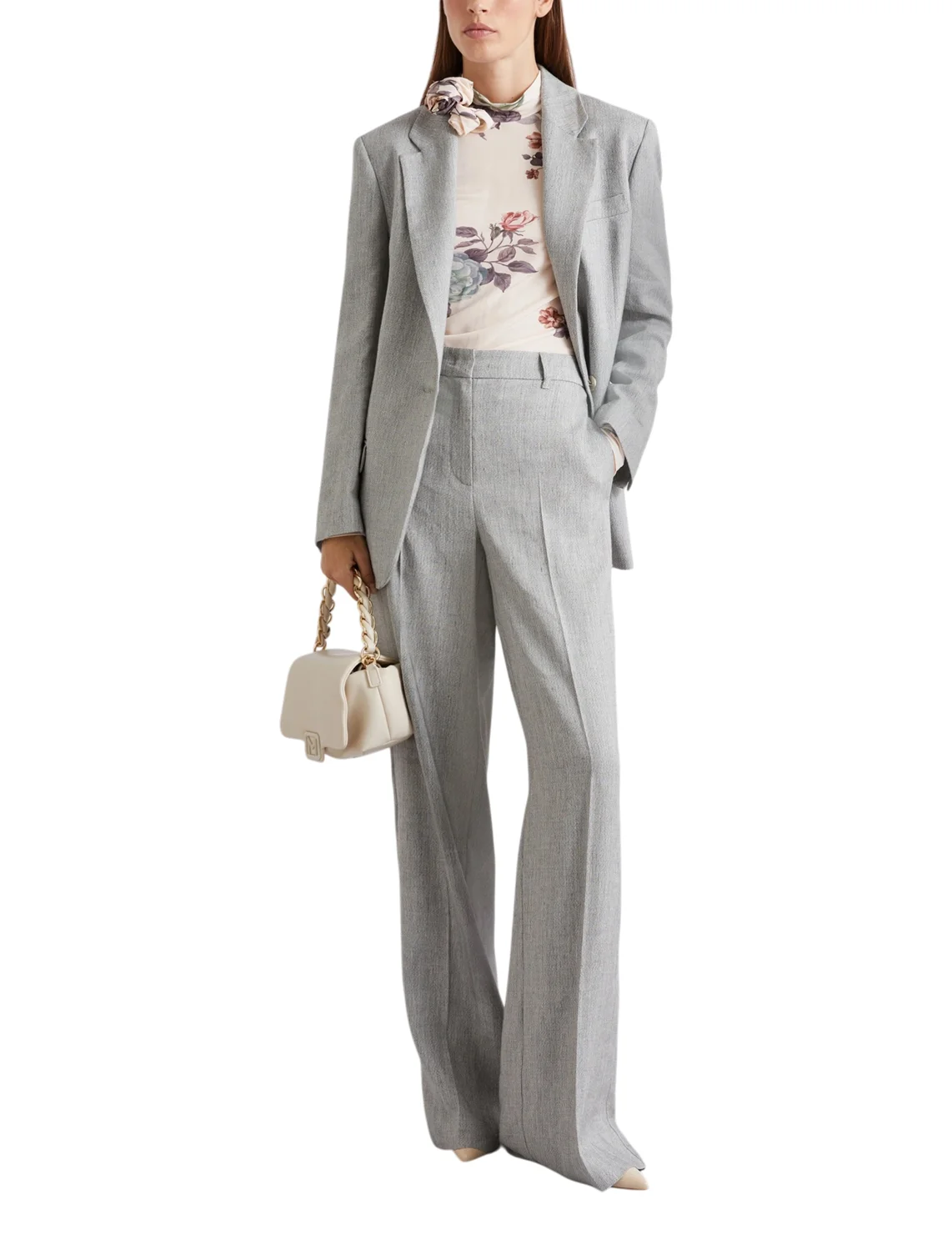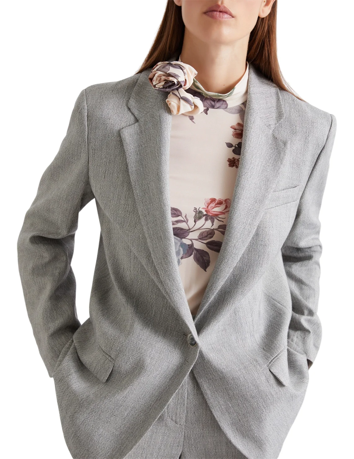Однобортный пиджак изготовлен из флексилона, вискозы, полиэстера, эластана. Модель выполнена в прямом крое. Имеет отложной воротник с лацканами, застежку на пуговицу, боковые карманы с клапанами, длинные рукава и разрез на манжетах.