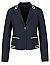 Однобортный пиджак изготовлен из хлопка, полиэстера и эластана. Модель выполнена в приталенном крое. Имеет отложной воротник с лацканами, прорезные карманы и длинные рукава. Декорирован принтом в полоску.