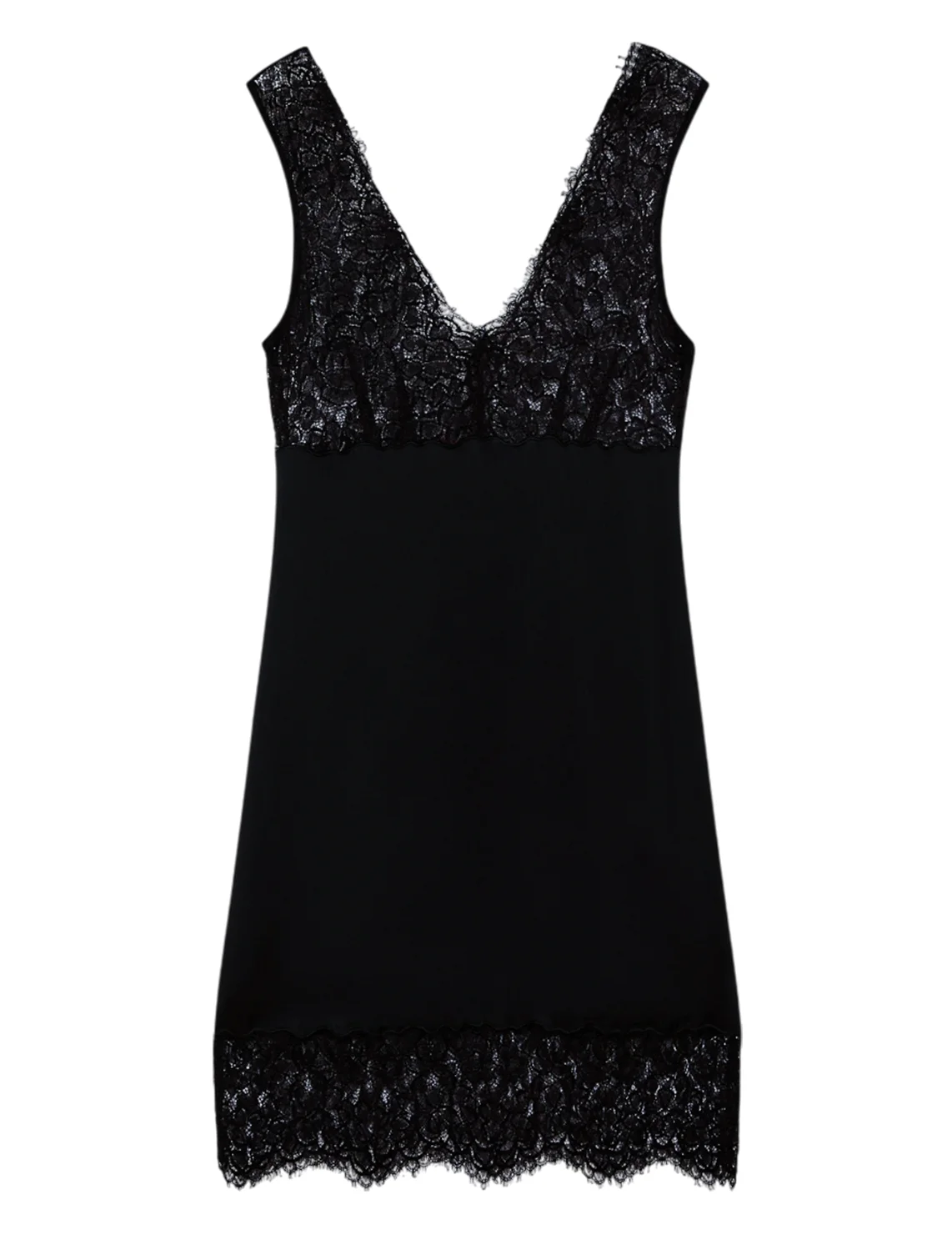 Платье изготовлено из ацетата и вискозы. Модель длины мини выполнена в прямом крое. Имеет V-образный вырез горловины и потайную застежку-молнию с левой стороны. Декорировано кружевом. Модель входит в специальную коллекцию Marella Codesign, созданную в сотрудничестве со Стеллой Максвелл.