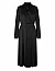Платье изготовлено из вискозы и полиэстера. Модель длины миди выполнена в расклешенном крое. Имеет отложной воротник, скрытую застежку на молнии сбоку и длинные рукава с манжетами.