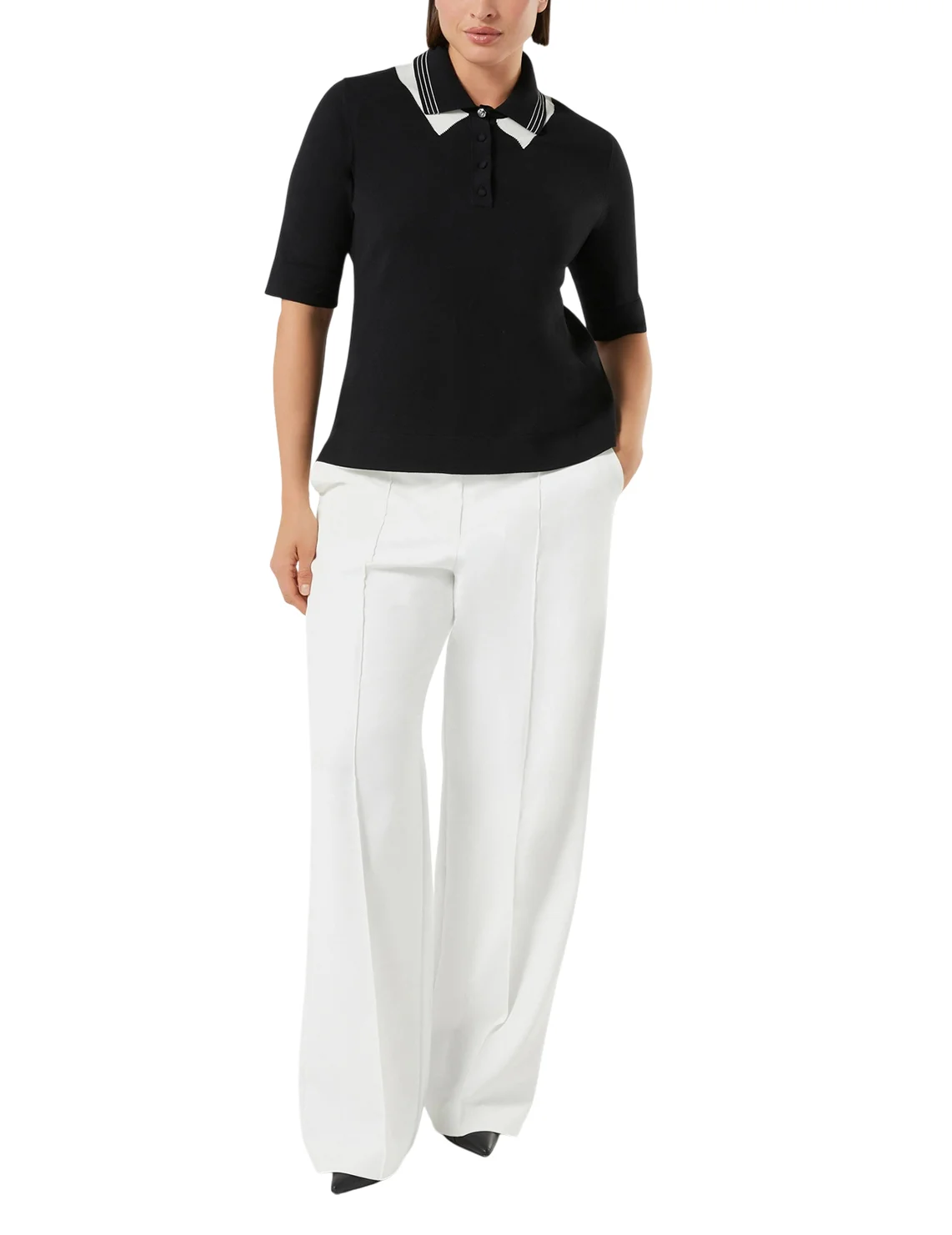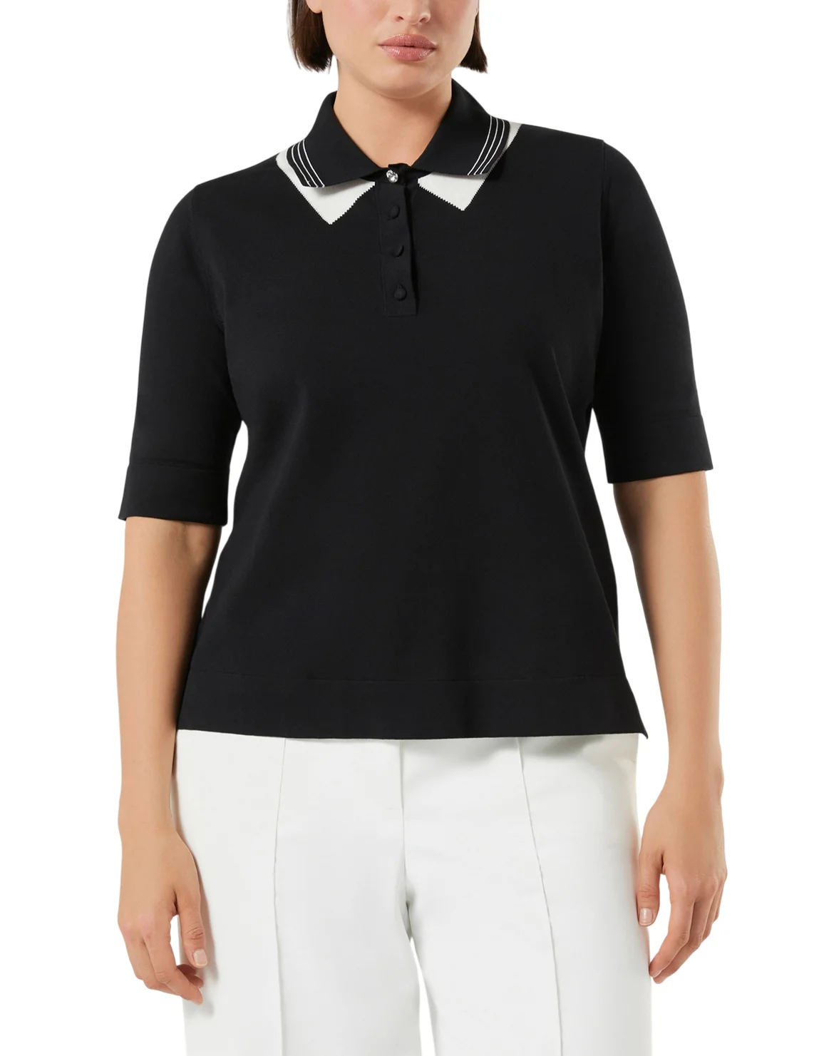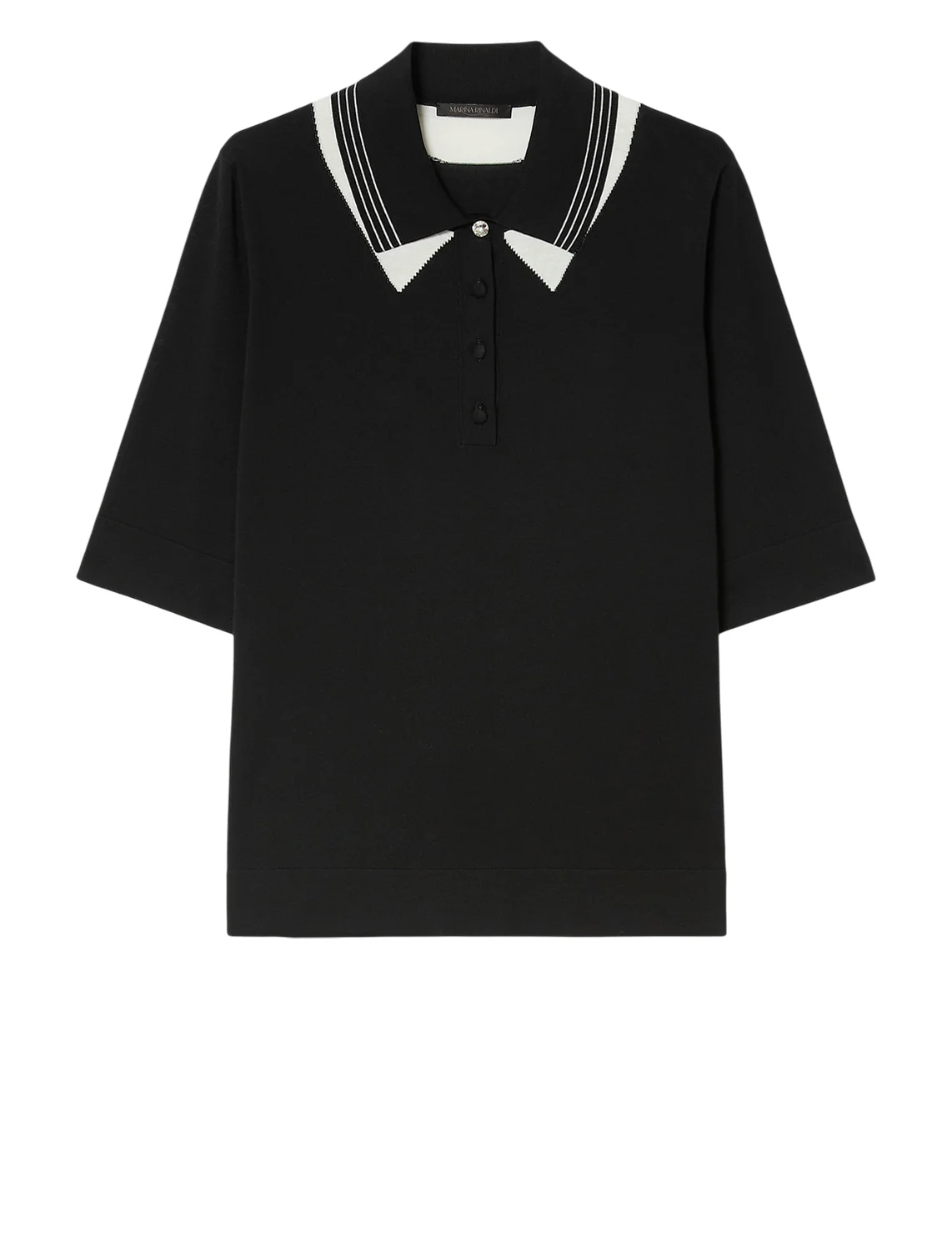 Поло изготовлено из 100% хлопка высокого качества. Модель выполнена в прямом крое. Имеет отложной воротник с застежкой на пуговицах и короткие рукава с манжетами. Декорировано принтом в полоску.