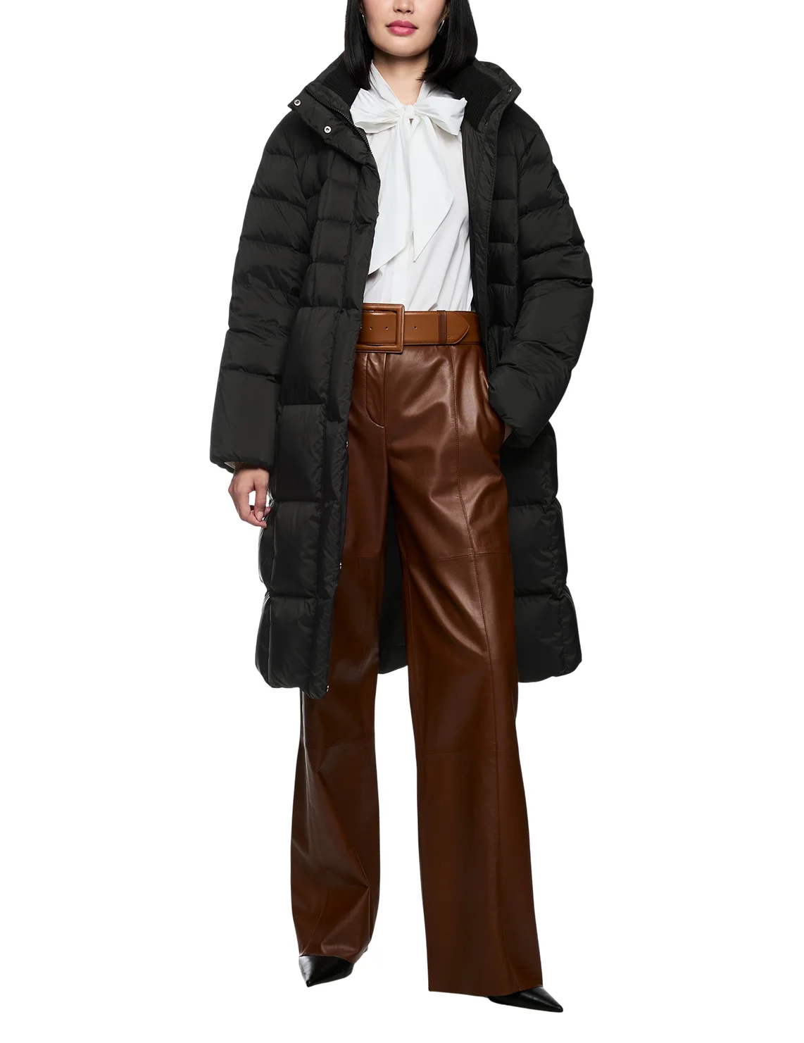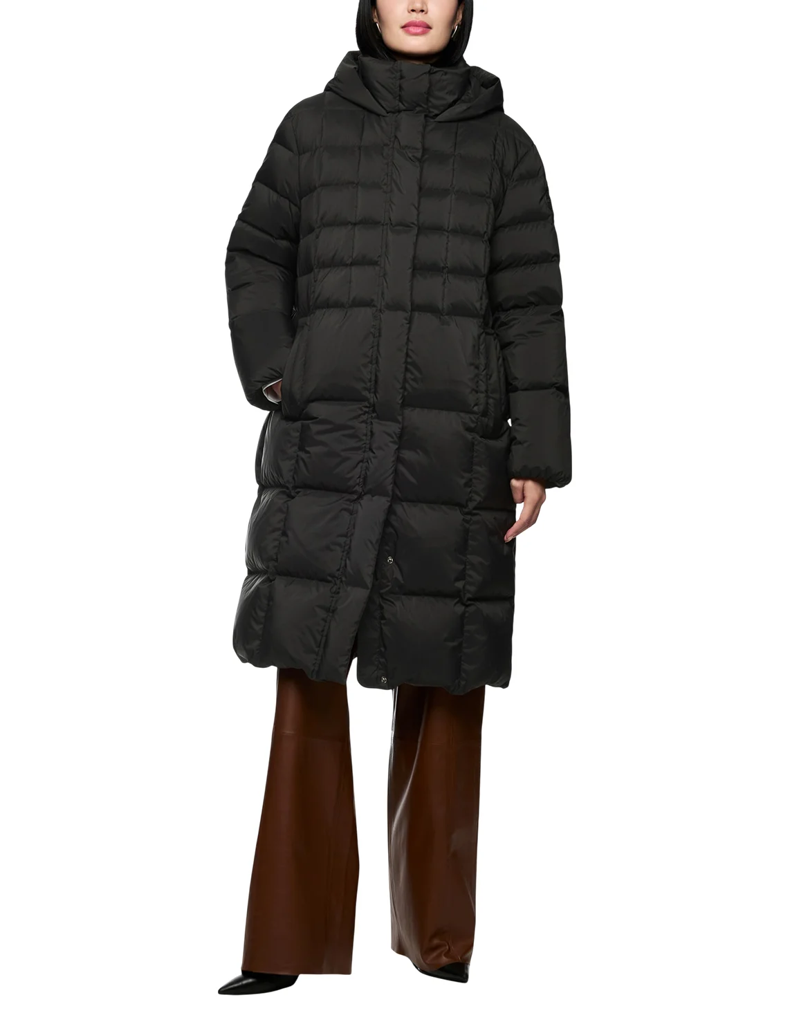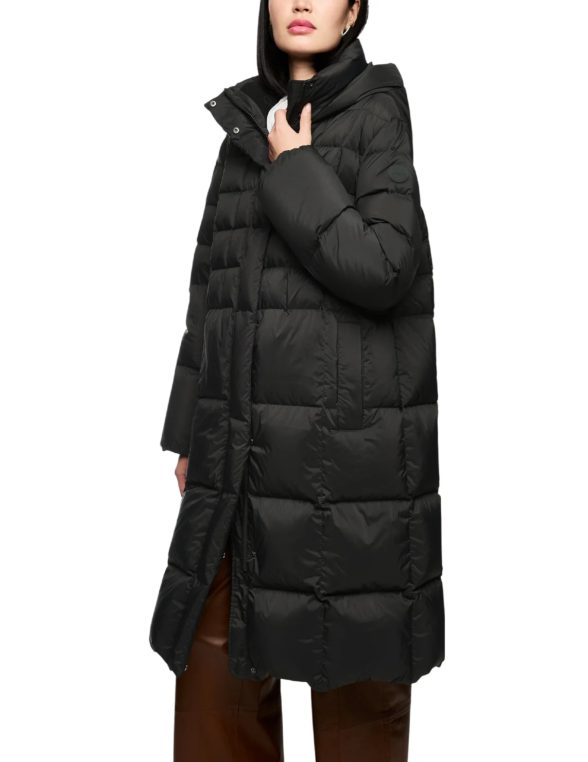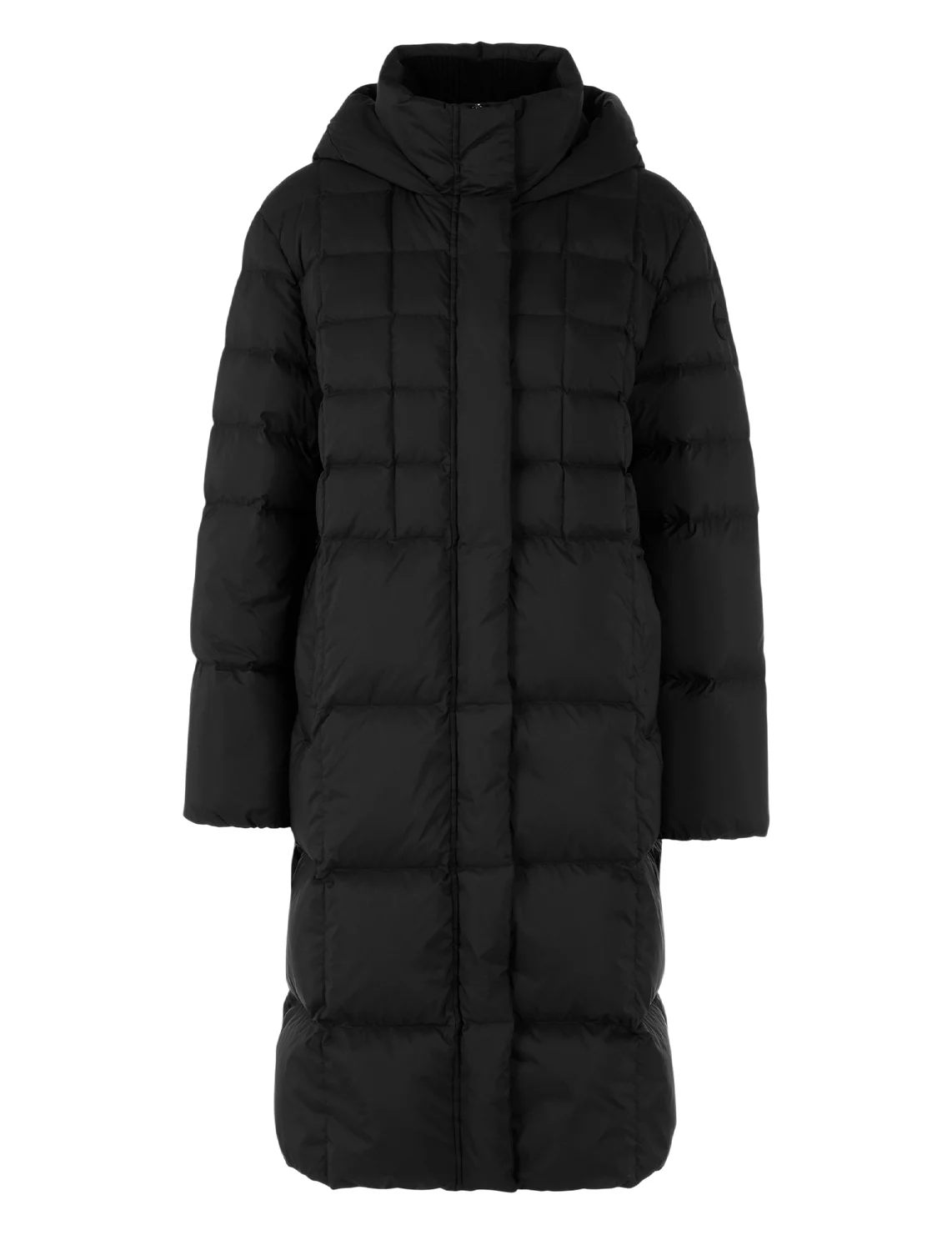 Пуховик изготовлен из 100% полиамида, наполнитель - 90% пух, 10% перо. Модель выполнена в свободном крое. Имеет воротник-стойку, капюшон, длинные рукава, прорезные карманы, двустороннюю застежку на молнии и кнопках.