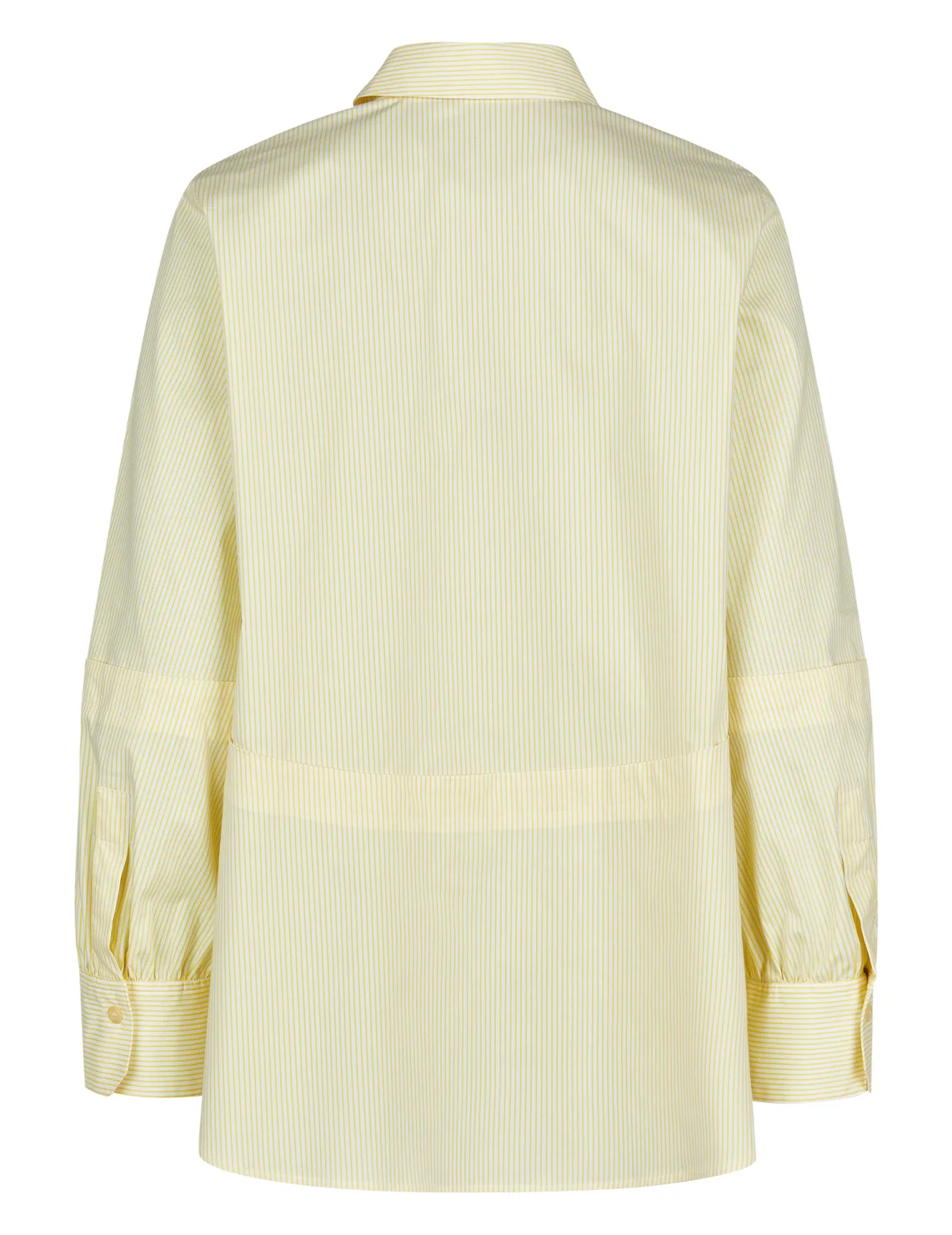 Рубашка изготовлена из хлопка, полиэстера и эластана. Модель выполнена в прямом крое. Имеет классический отложной воротник, планку с пуговицами и длинные рукава с манжетами. Декорирована принтом в полоску.