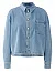 Джинсовая рубашка изготовлена из хлопка, полиэстера и эластана. Модель выполнена в свободном крое. Имеет отложной воротник, планку с пуговицами, нагрудный карман и длинные рукава с манжетами. Декорирована тиснением с логотипом бренда.