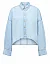 Джинсовая рубашка изготовлена из 100% хлопка высокого качества. Модель выполнена в свободном крое. Имеет отложной воротник, планку с пуговицами, длинные рукава с манжетами, оригинальный подол, заниженную плечевую линию и боковые разрезы.
