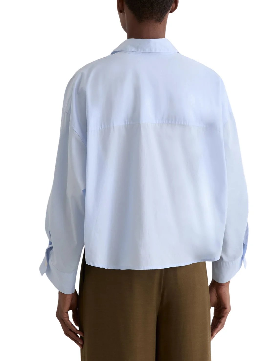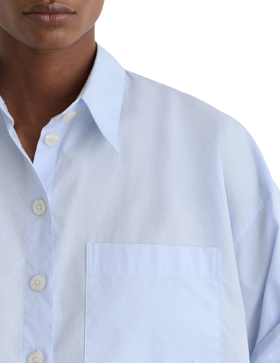Рубашка изготовлена из 100% натурального хлопка. Модель выполнена в свободном крое. Имеет классический отложной воротник, планку с пуговицами, заниженную плечевую линию, нагрудный накладной карман и длинные рукава с манжетами.