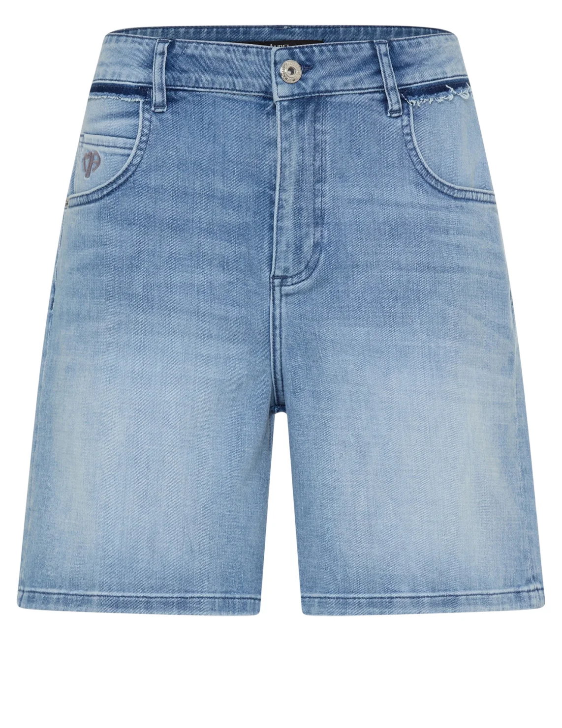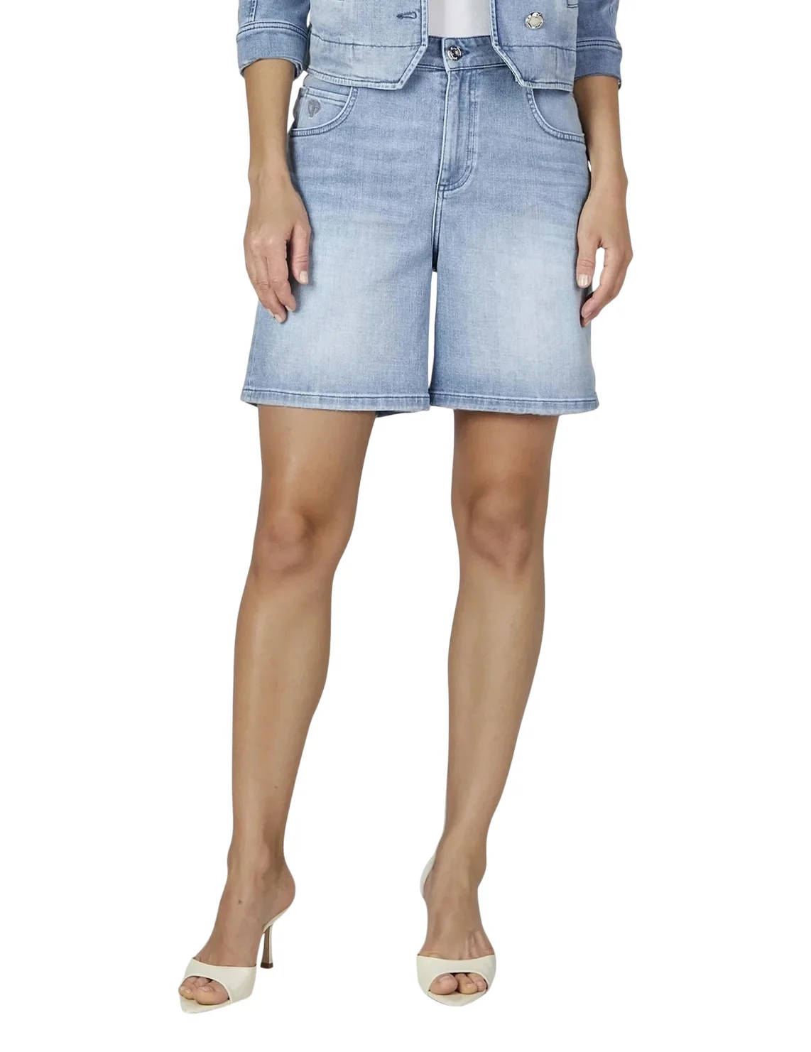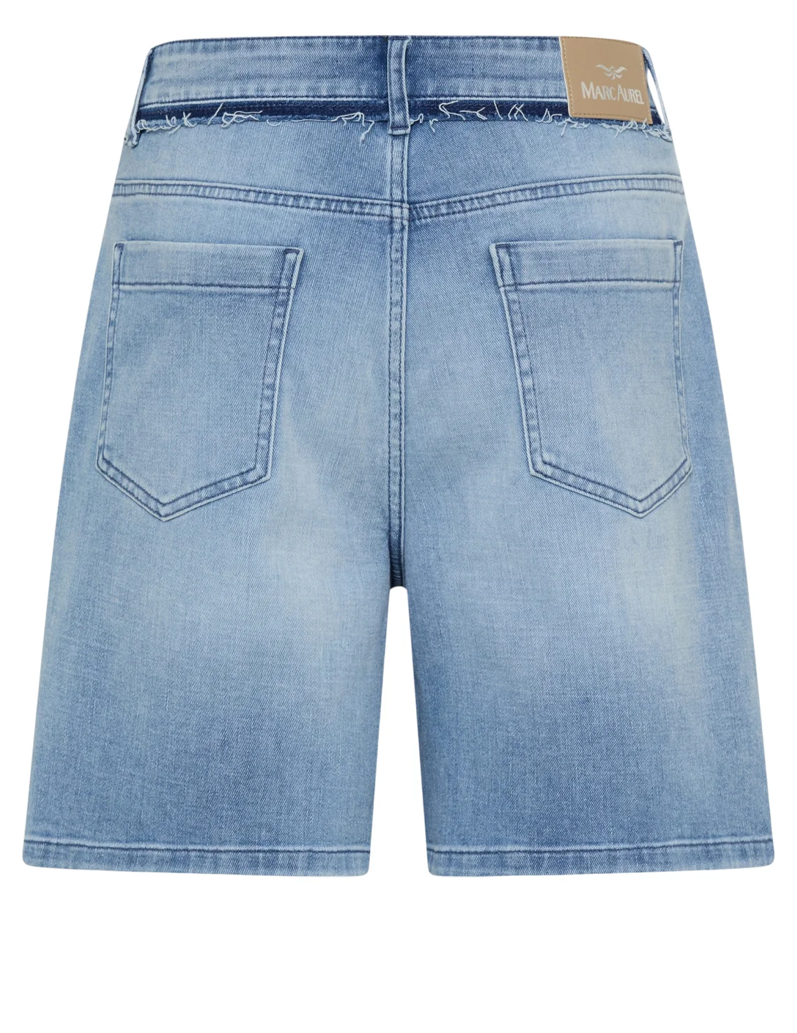 Шорты изготовлены из хлопка, эластомультистера и эластана. Модель выполнена в свободном крое. Имеют шлевки для ремня, прорезные передние и задние накладные карманы, застегиваются на скрытую молнию и пуговицу.