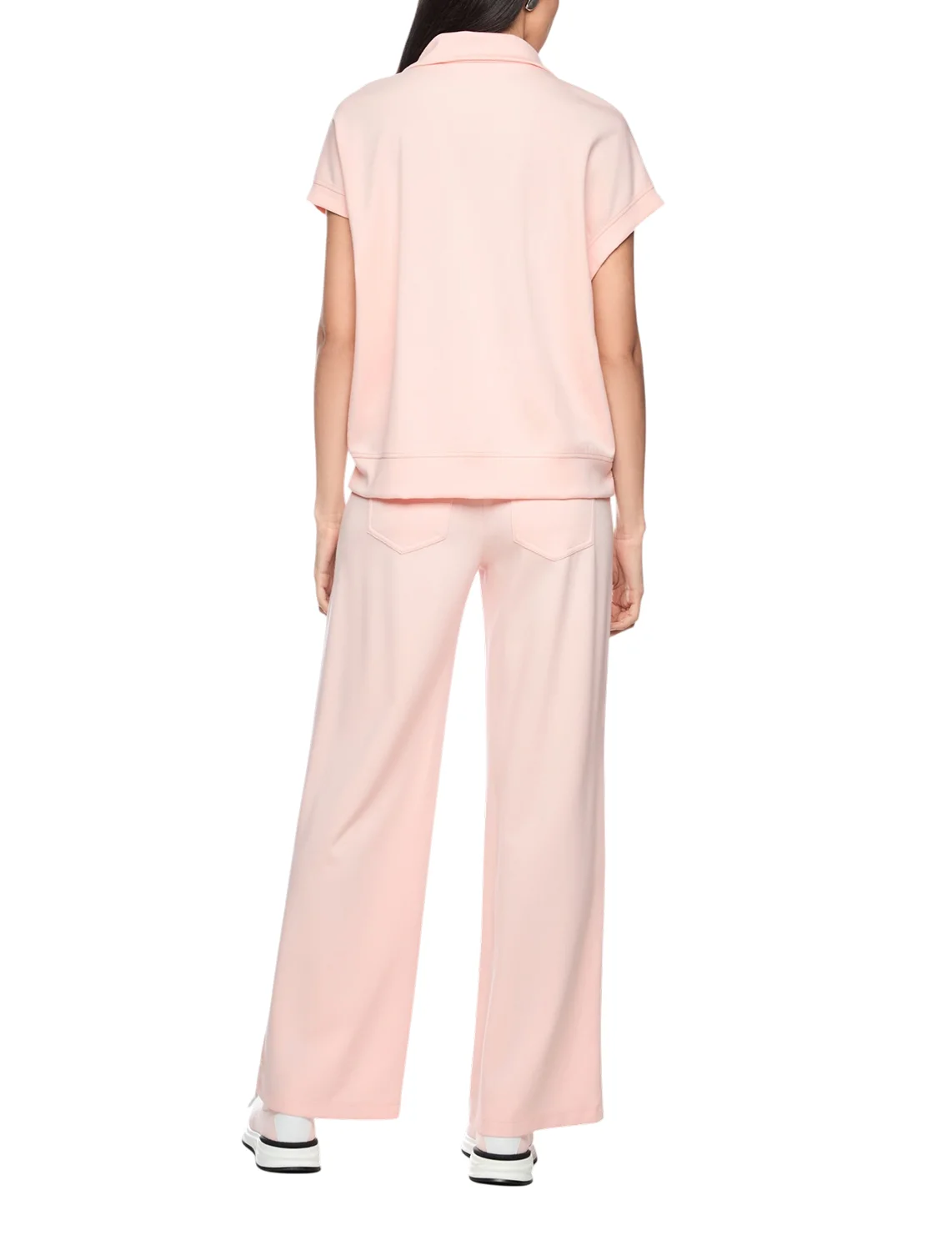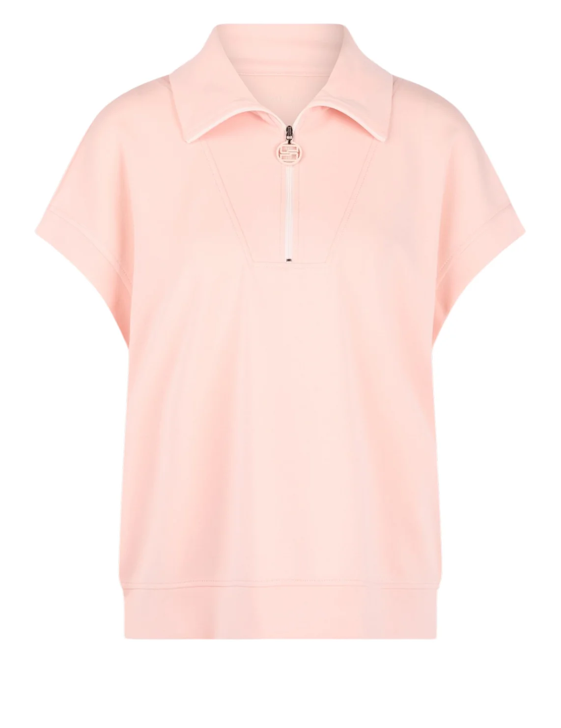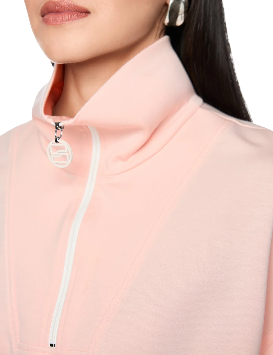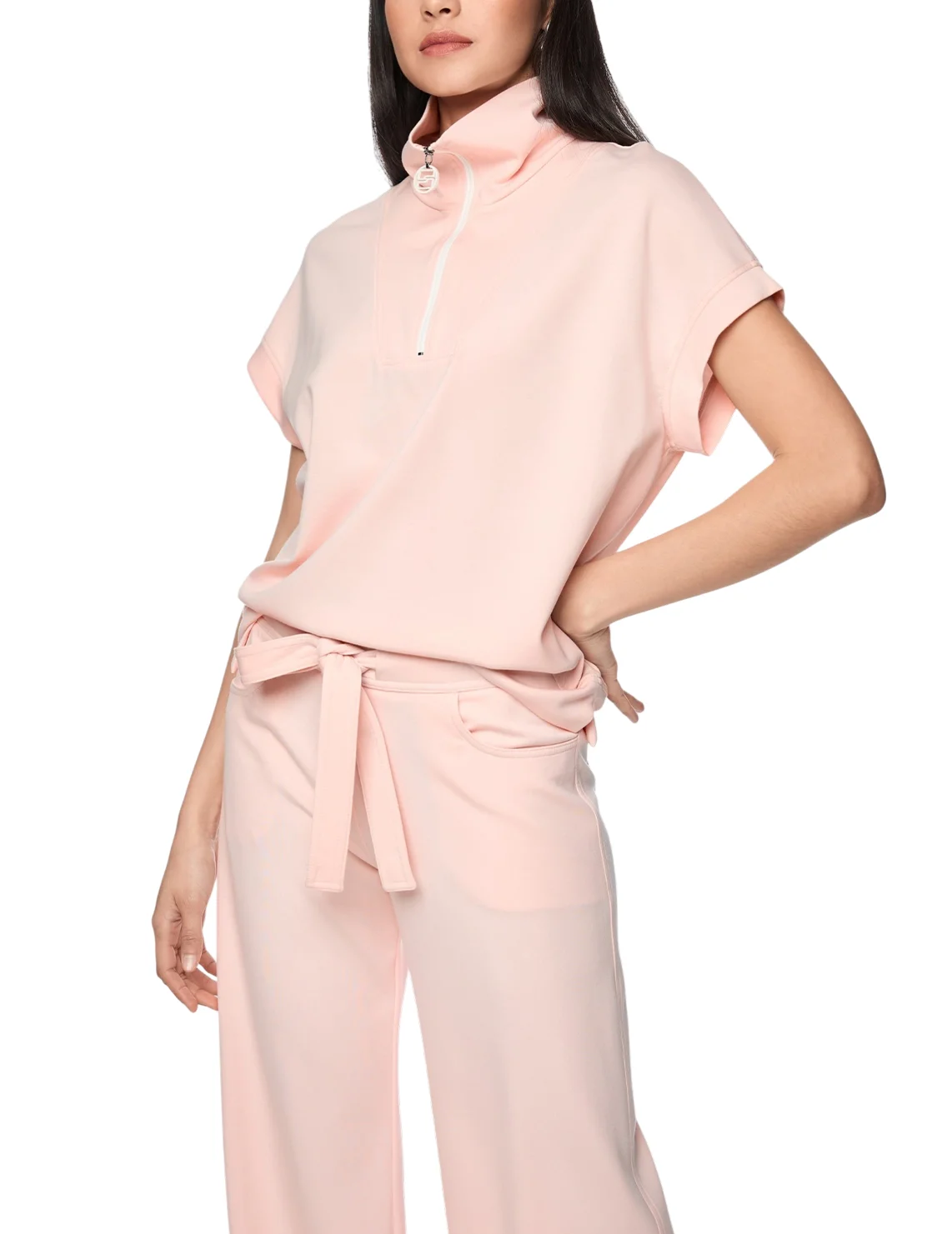 Свитшот изготовлен из полиамида, вискозы и эластана. Модель выполнена в свободном крое. Имеет отложной воротник, застежку на молнии и короткие рукава с манжетами.