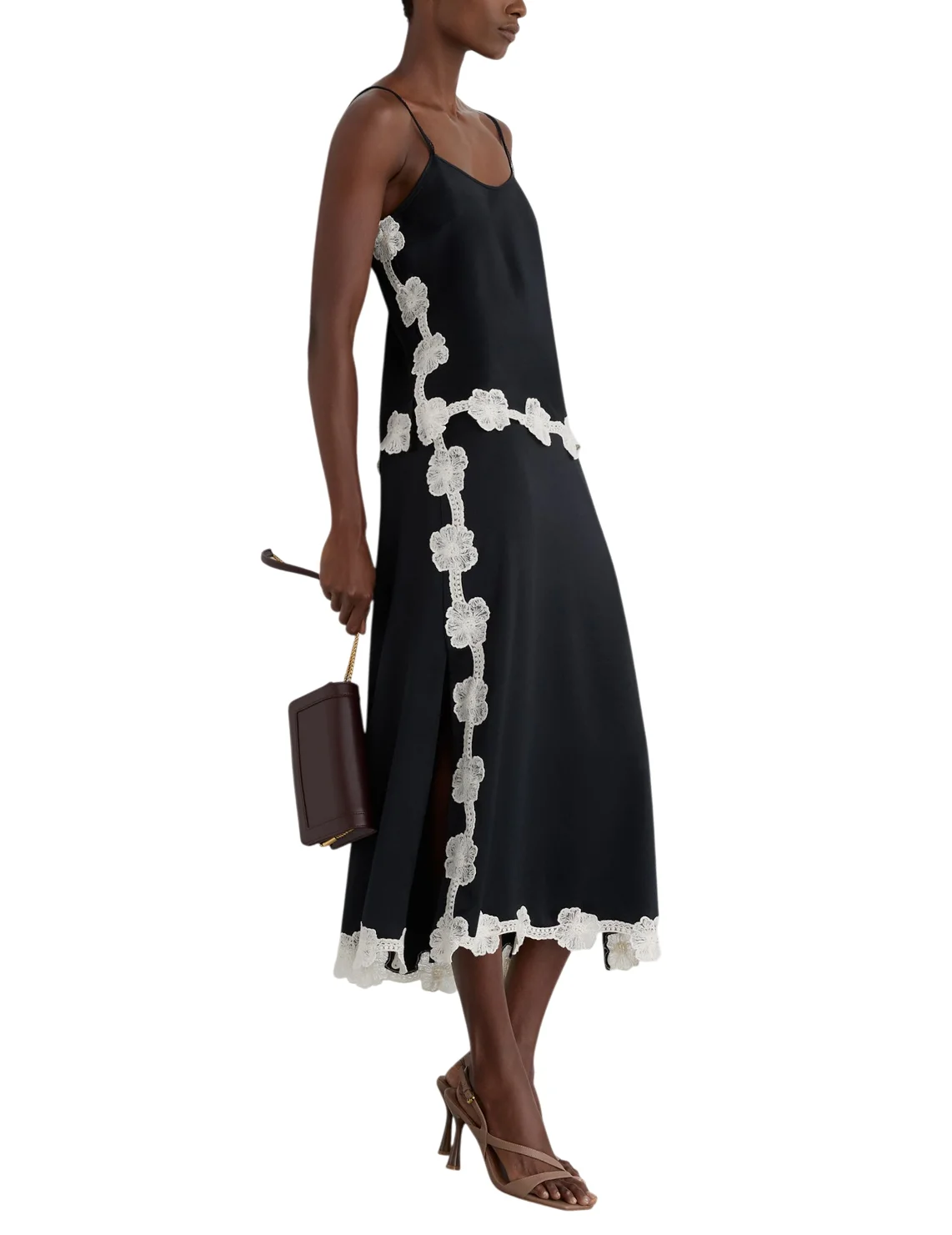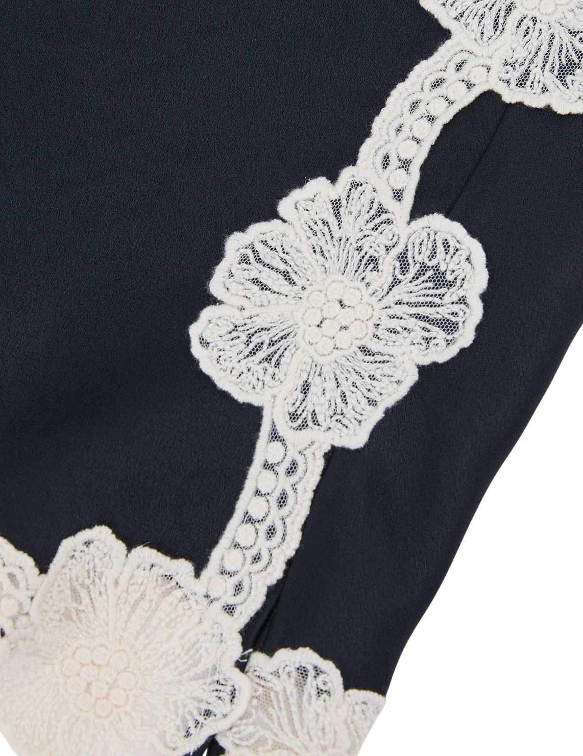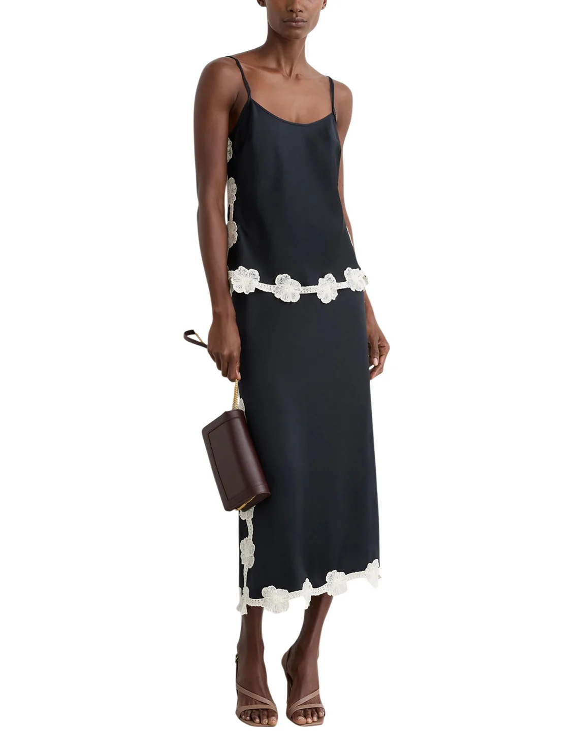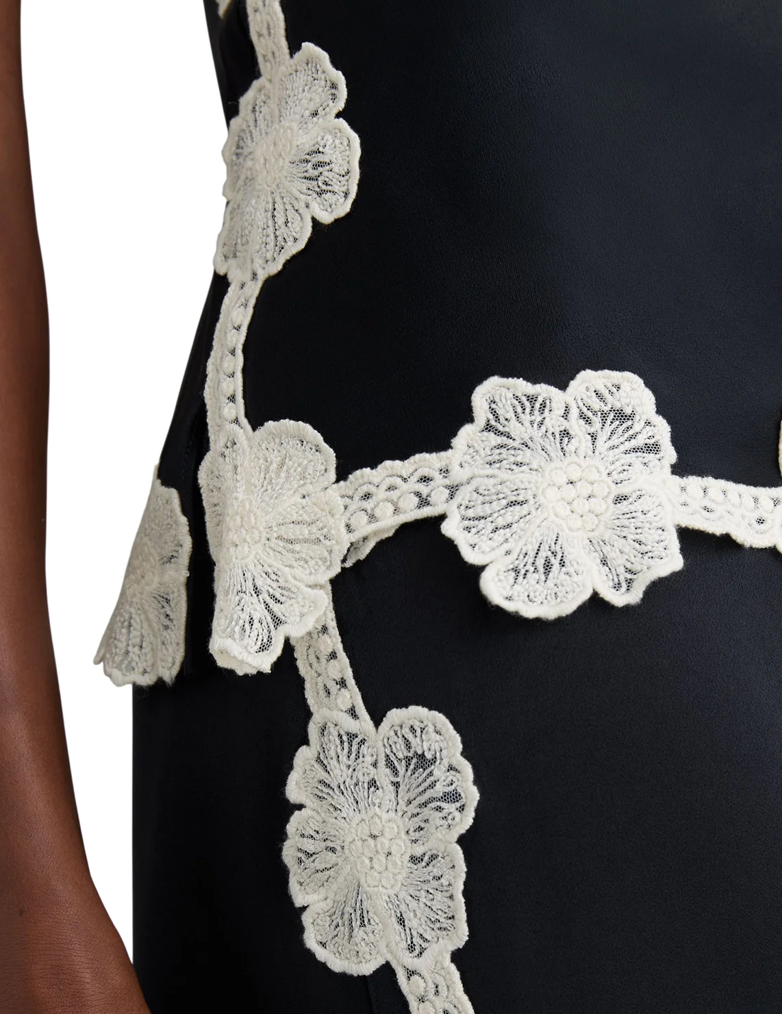 Топ изготовлен из полиэстера, хлопка, акрила и нейлона. Модель выполнена в приталенном крое. Имеет V-образный вырез горловины и тонкие регулируемые бретели. Декорирован кружевом.