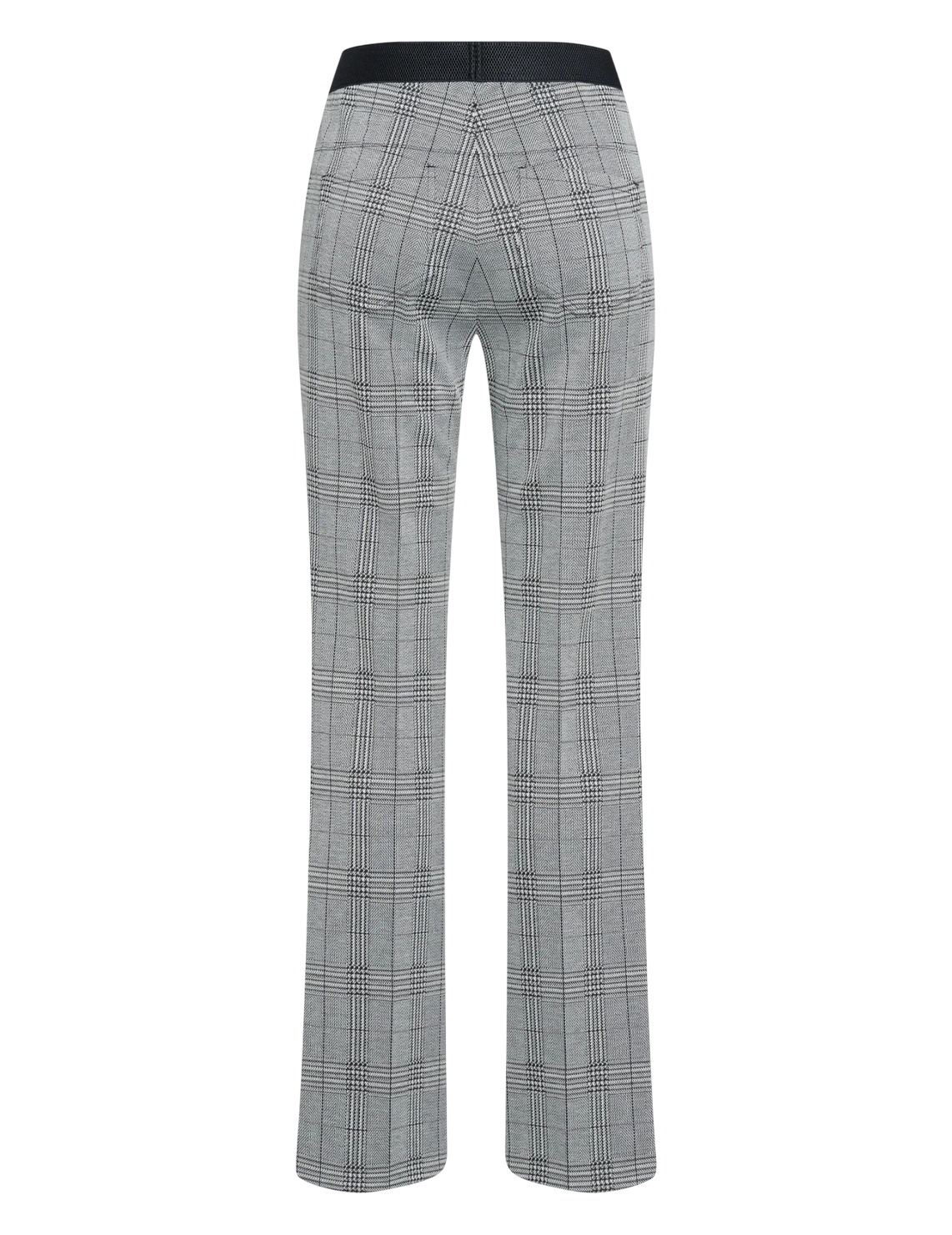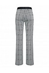 Штани виготовлені з поліестеру, віскози, металізованої нитки та еластану. Модель виконана в розкльошеному крої. Має еластичний пояс, накладні задні кишені та принт у клітинку.