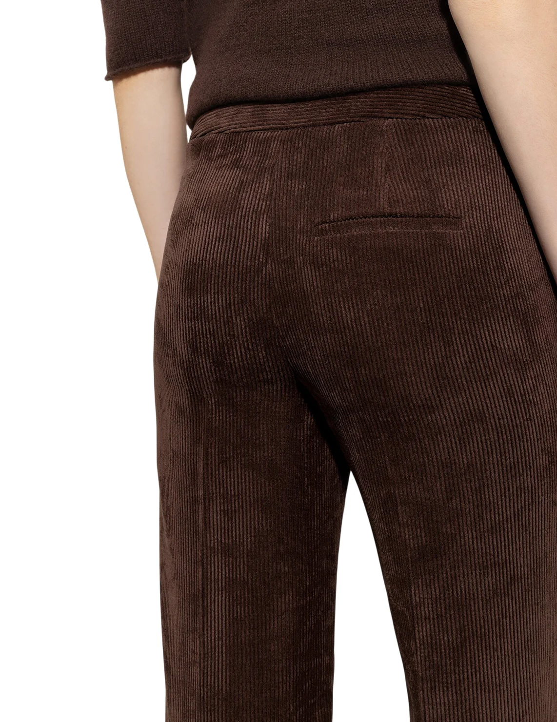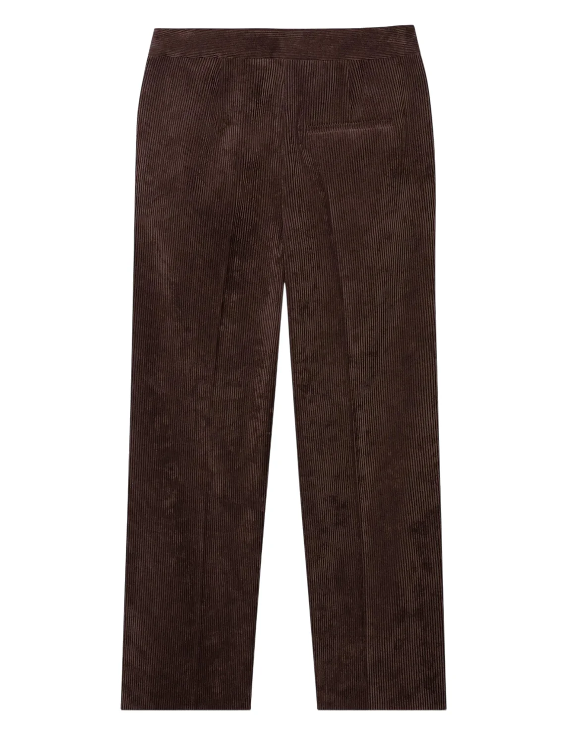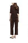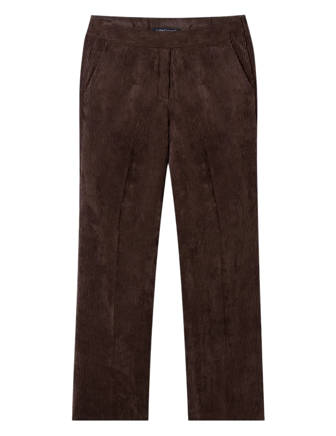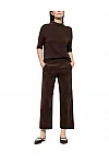 Штани виготовлені з поліестеру, поліаміду та еластану. Модель виконана у вільному крої. Має декоративний гульфик, пресовані стрілки, а також бічні та одну задню прорізну кишеню.