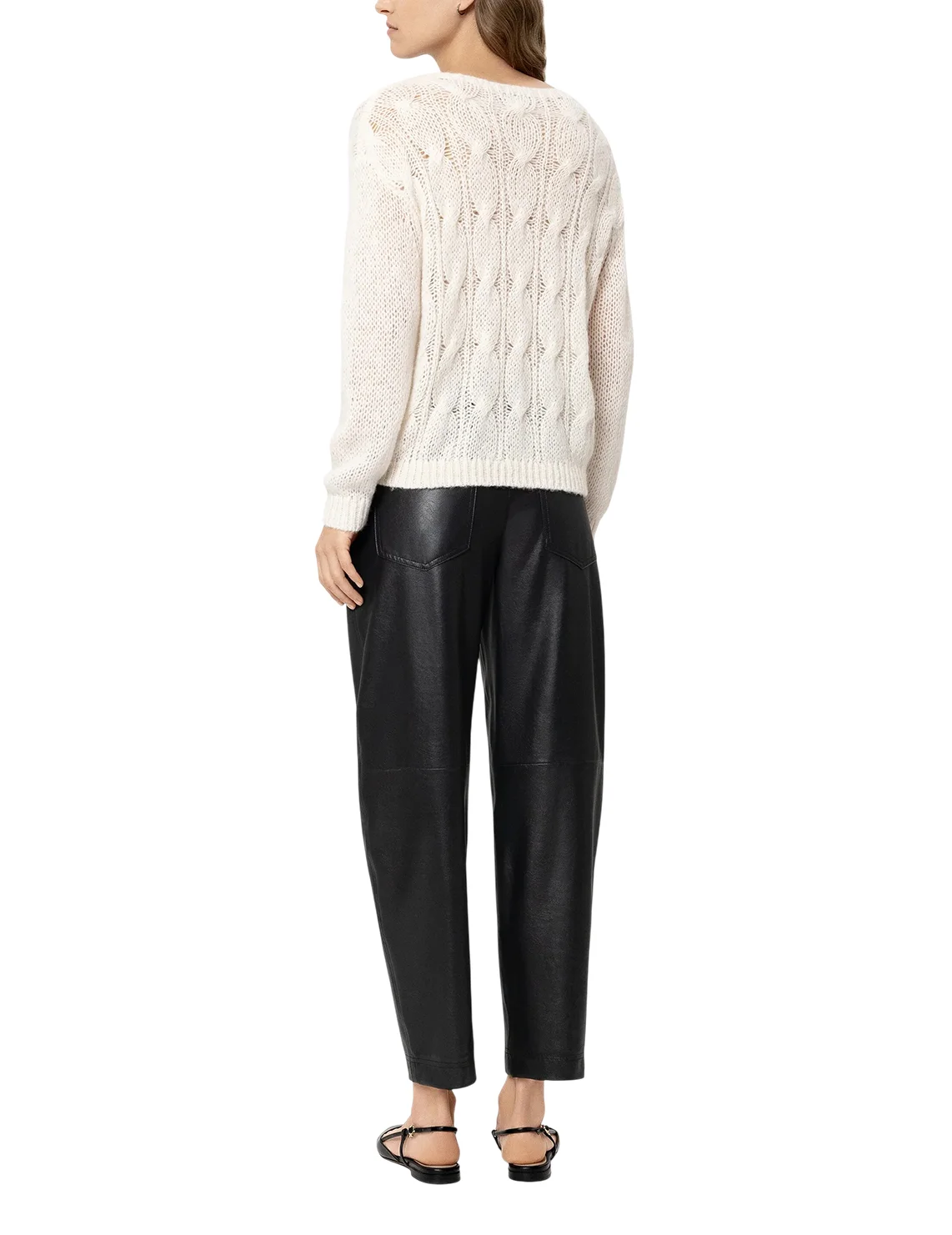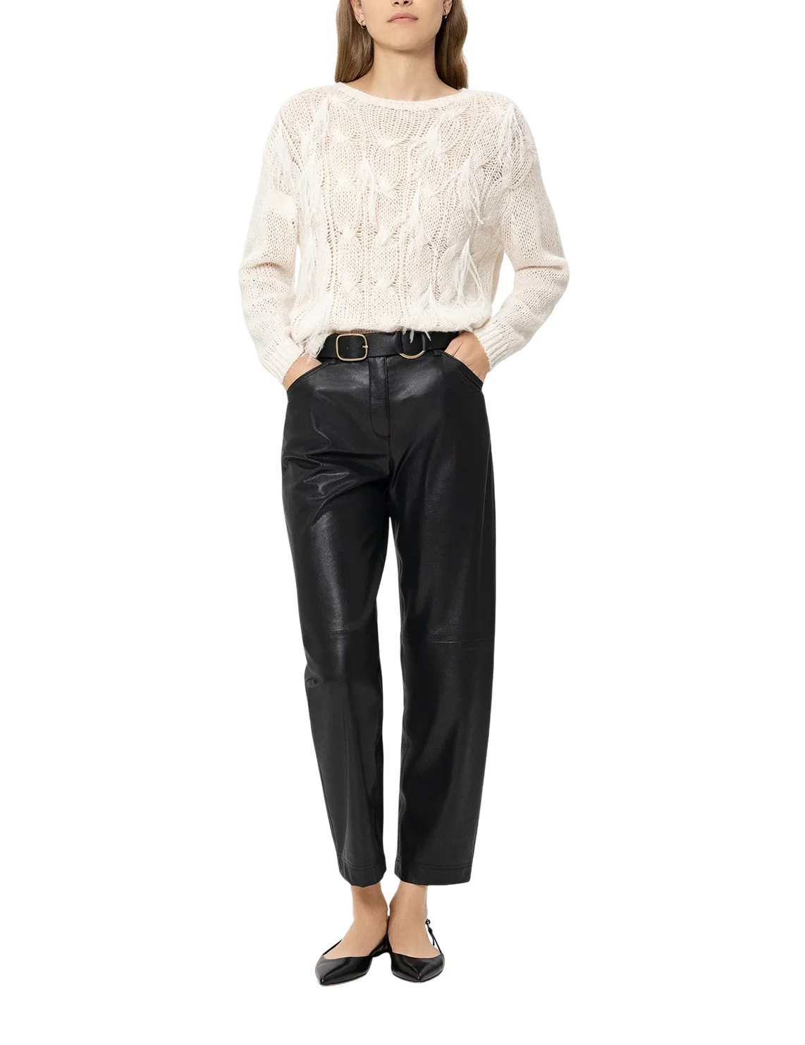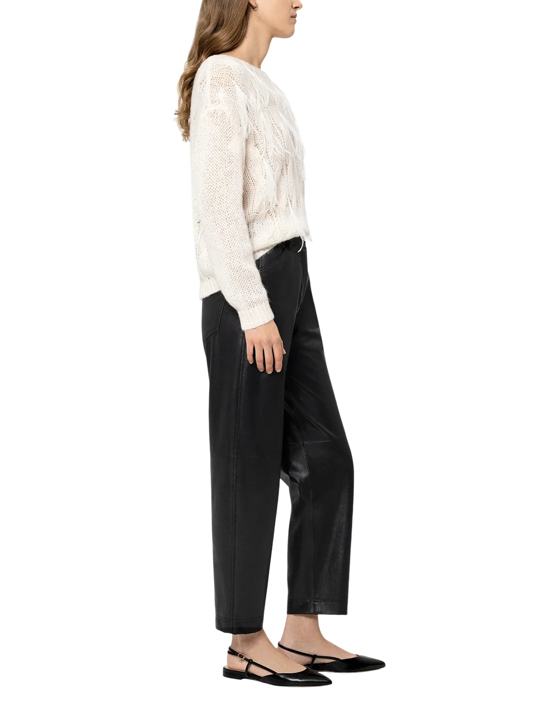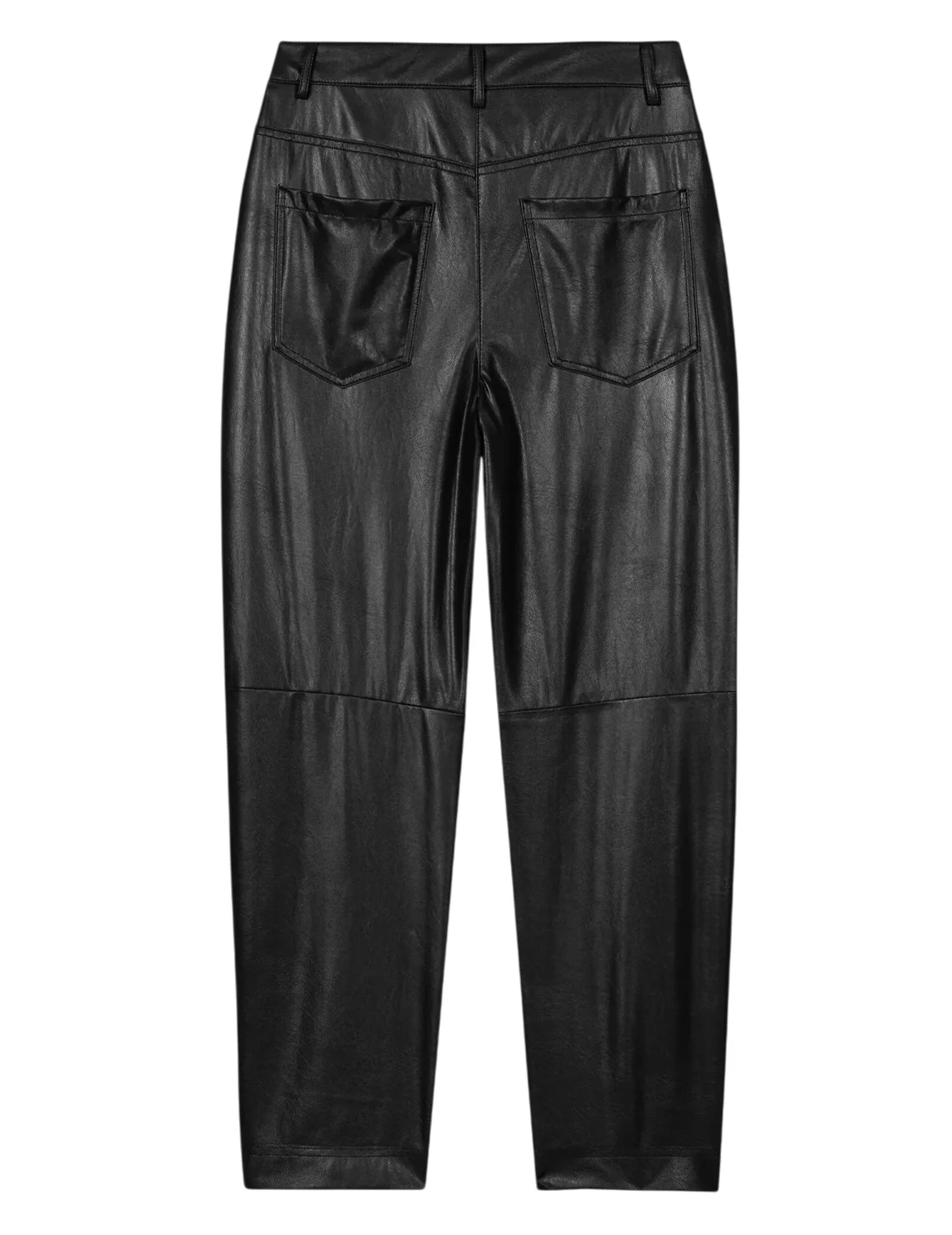 Штани виготовлені з поліестеру та еластану, покриття з поліуретану. Модель виконана у вільному крої. Має петлі для ременя, приховану застібку-блискавку з ґудзиком, а також пару передніх прорізних і пару задніх накладних кишень.