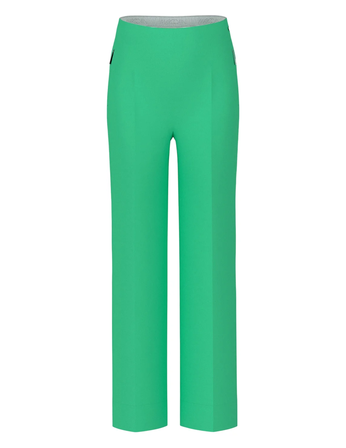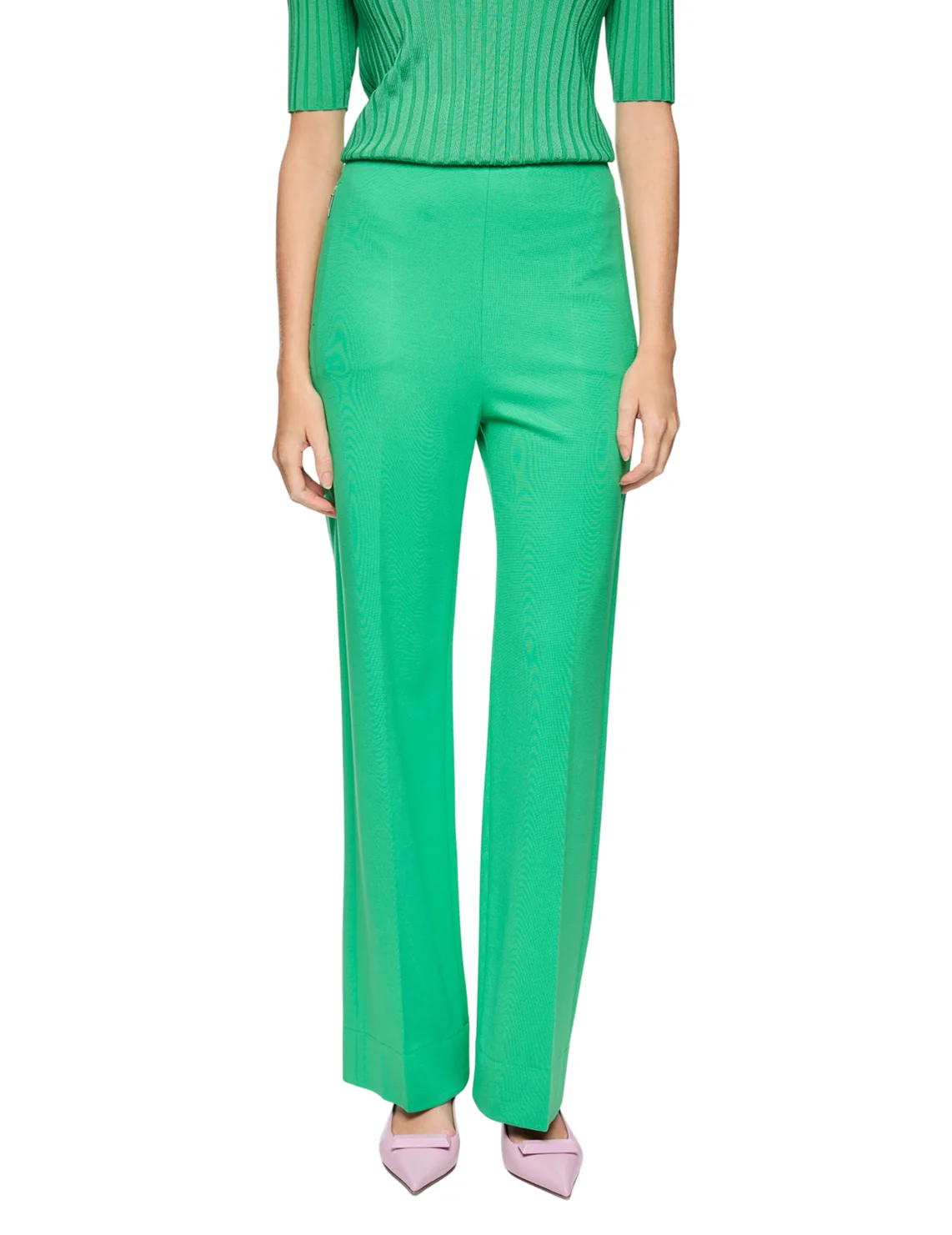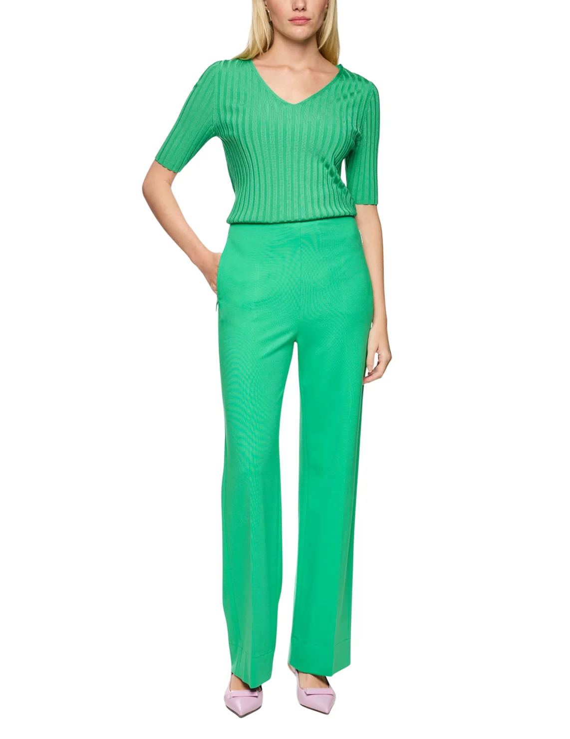 Штани виготовлені з віскози, поліаміду та еластану. Модель виконана у вільному крої. Має еластичний пояс, пресовані стрілки та прорізні кишені на блискавках.