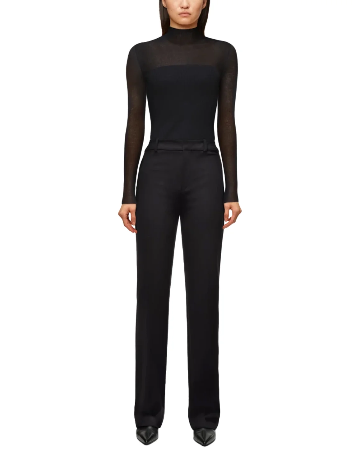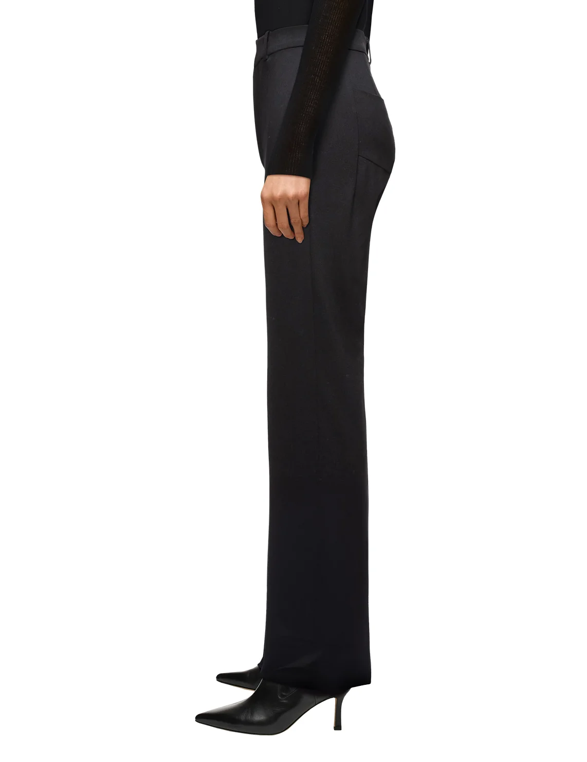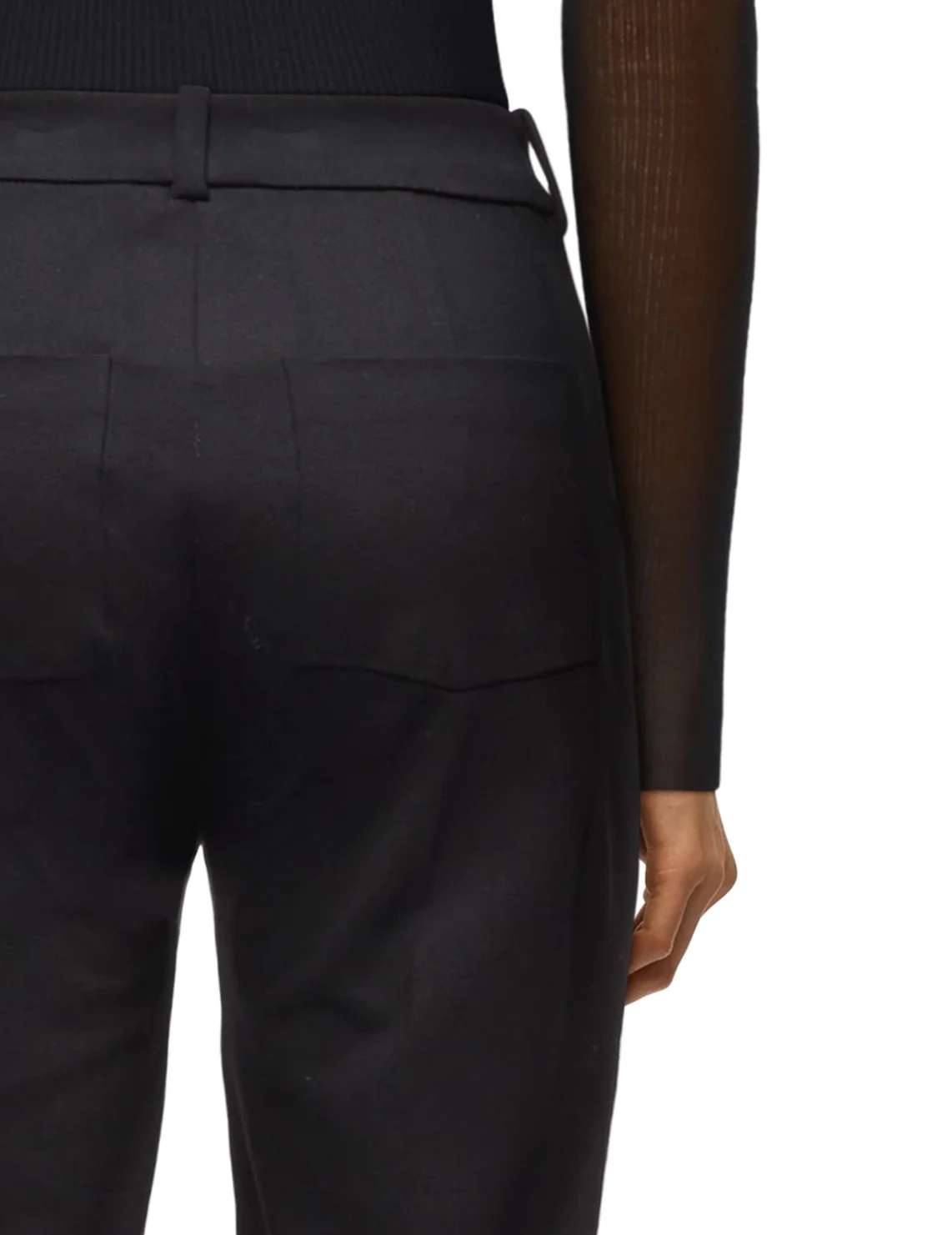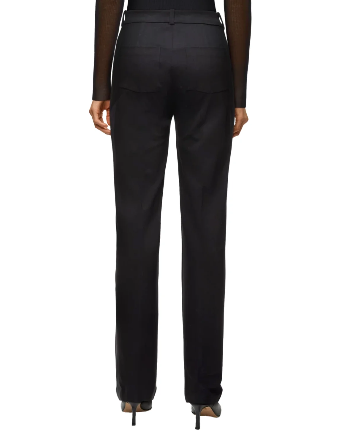 Штани виготовлені з віскози, поліаміду й еластану. Модель виконана в звуженому крої. Має петлі для ременя, потаємну застібку-блискавку з гачком, пресовані стрілки, дві прорізні бічні та дві накладні задні кишені.